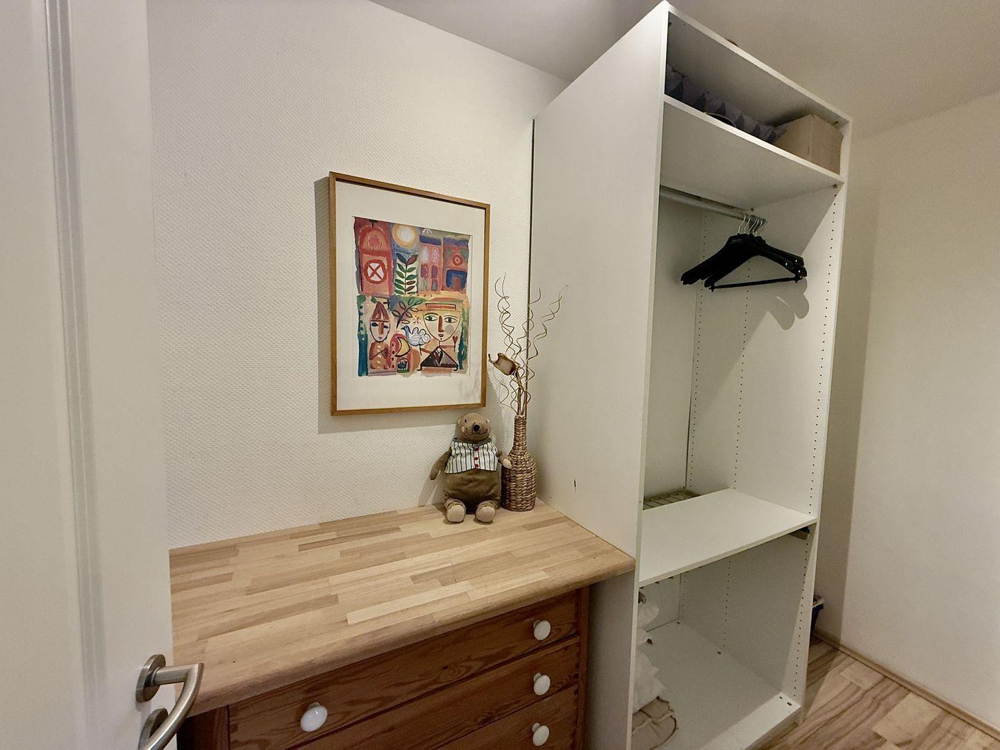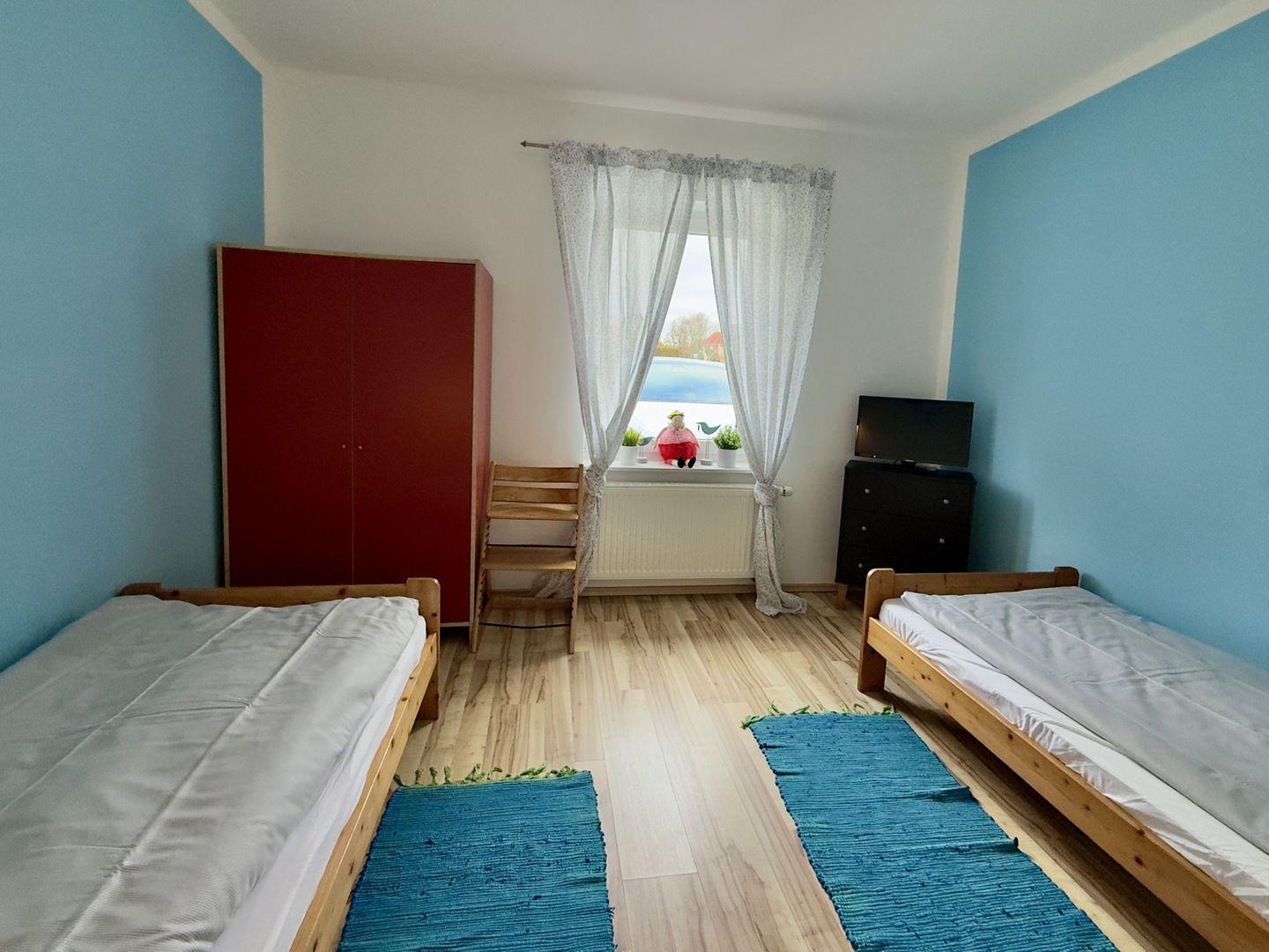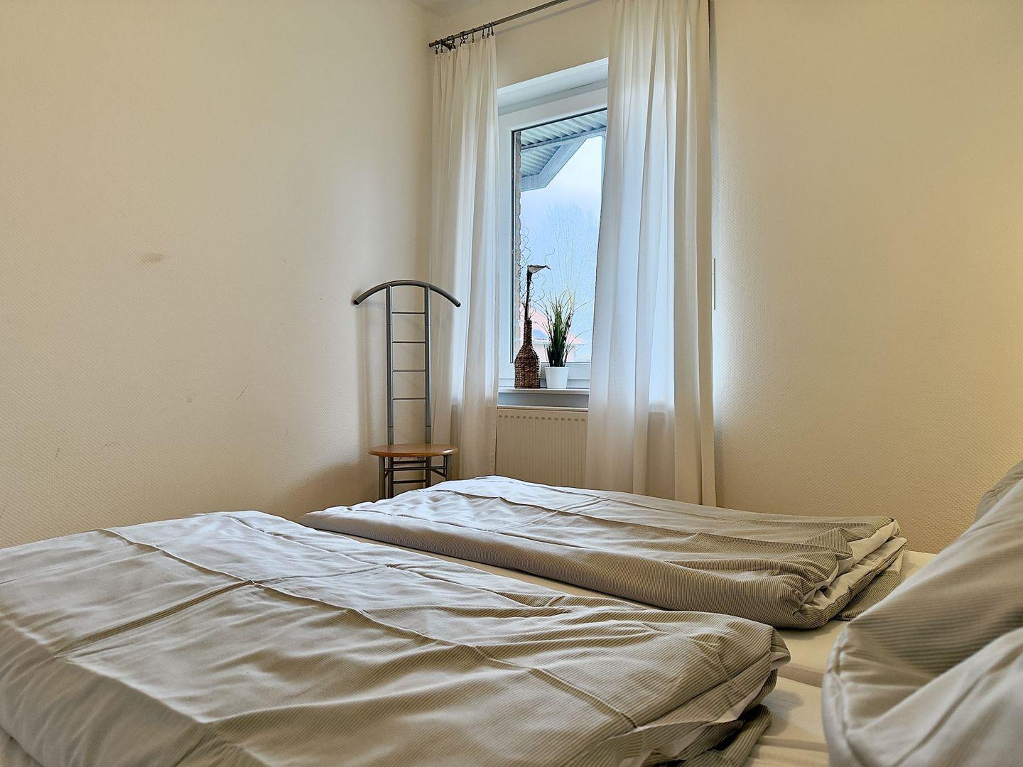 Vom Flur aus gelangen Sie in die beiden behaglichen Schlafzimmer. Das Hauptschlafzimmer verfügt über ein komfortables Doppelbett mit zwei einzelnen Matratzen sowie einen geräumigen Kleiderschrank, der ausreichend Stauraum bietet. Das zweite Schlafzimmer ist mit zwei Einzelbetten und einem eigenen Kleiderschrank ideal für Kinder oder weitere Gäste.