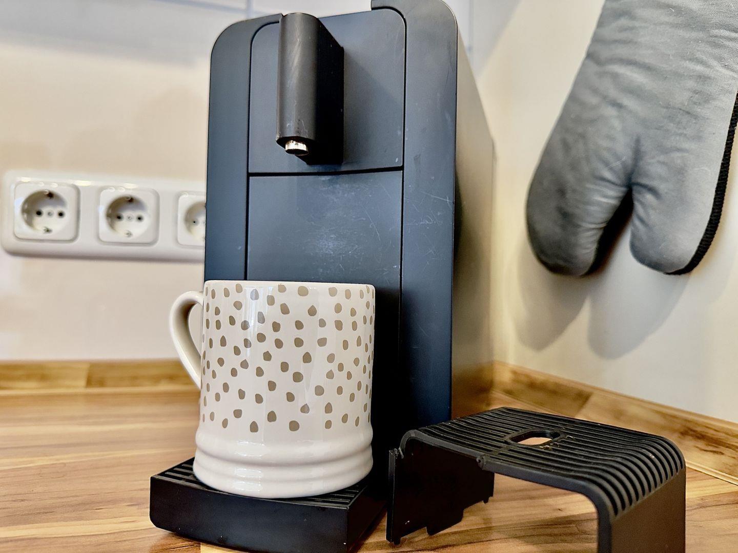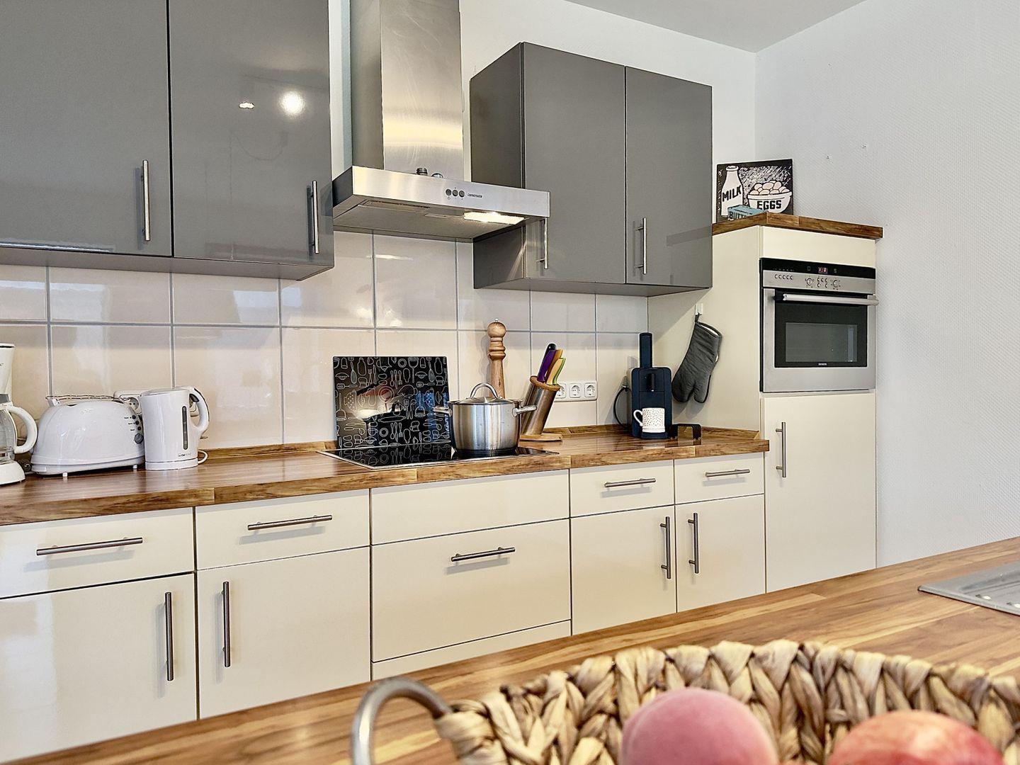 Die in das Wohnzimmer integrierte Küche bietet alles, was Sie für eine bequeme Selbstversorgung benötigen – von modernen Elektrogeräten bis hin zu einer umfassenden Ausstattung für Hobbyköche. Ob ein ausgedehntes Frühstück oder ein selbst gekochtes Abendessen – hier bleiben keine Wünsche offen.