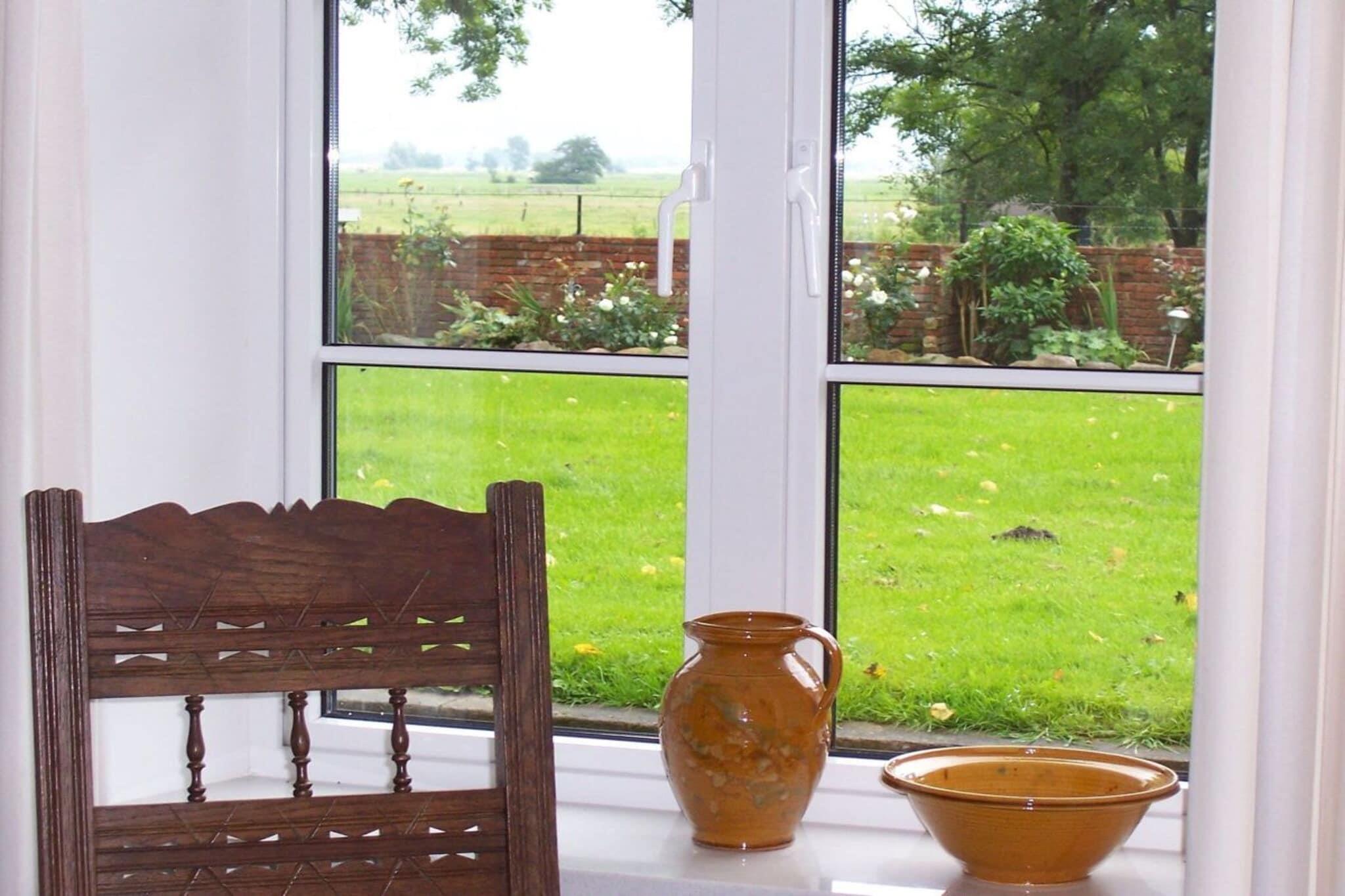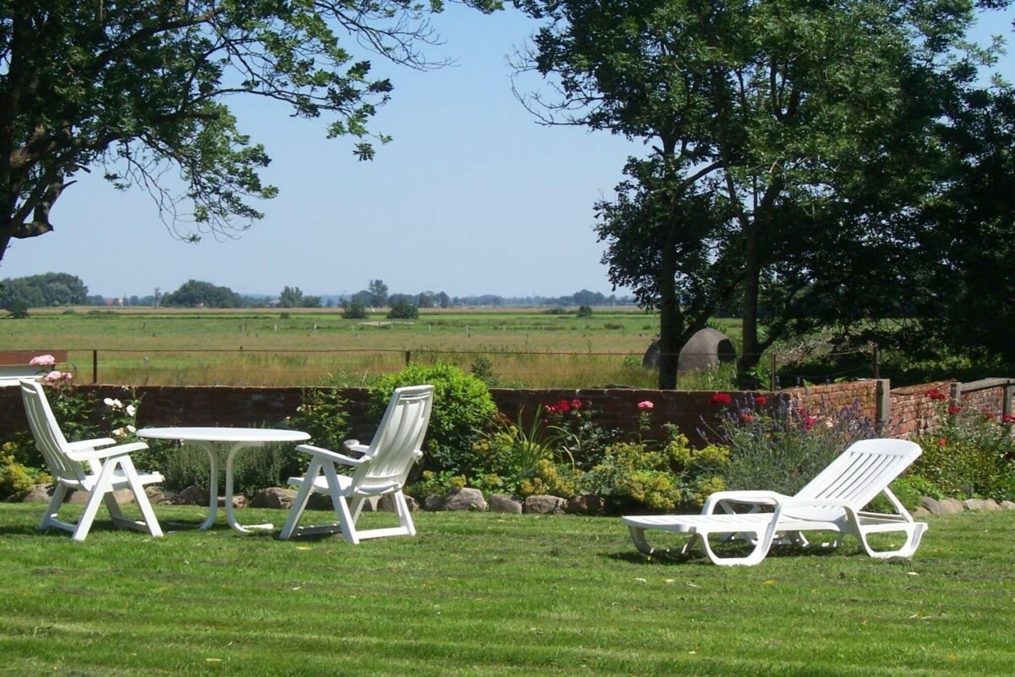 Exklusives , historisches Reetdachhaus in Nordseenähe - idyllisch gelegen auf einer Warft mit Blick über die weite Marsch. Der große Garten mit Friesenwall und altem Baumbestand lädt zum Verweilen ein. Das ebenerdige Haus ist geeignet für 2 - 4 Personen. Zur Ausstattung gehören zwei Schlafzimmer und ein schickes Bad mit zwei Waschtischen. Die separate Küche mit Geschirrspüler bietet allen Komfort. Ein schöner Essbereich und eine Bibliothek - in der großen Wohndiele - laden zum Entspannen ein. Das gemütliche Wohnzimmer verwöhnt mit Weitblick, Sat-TV und einer Radio-CD-Anlage.