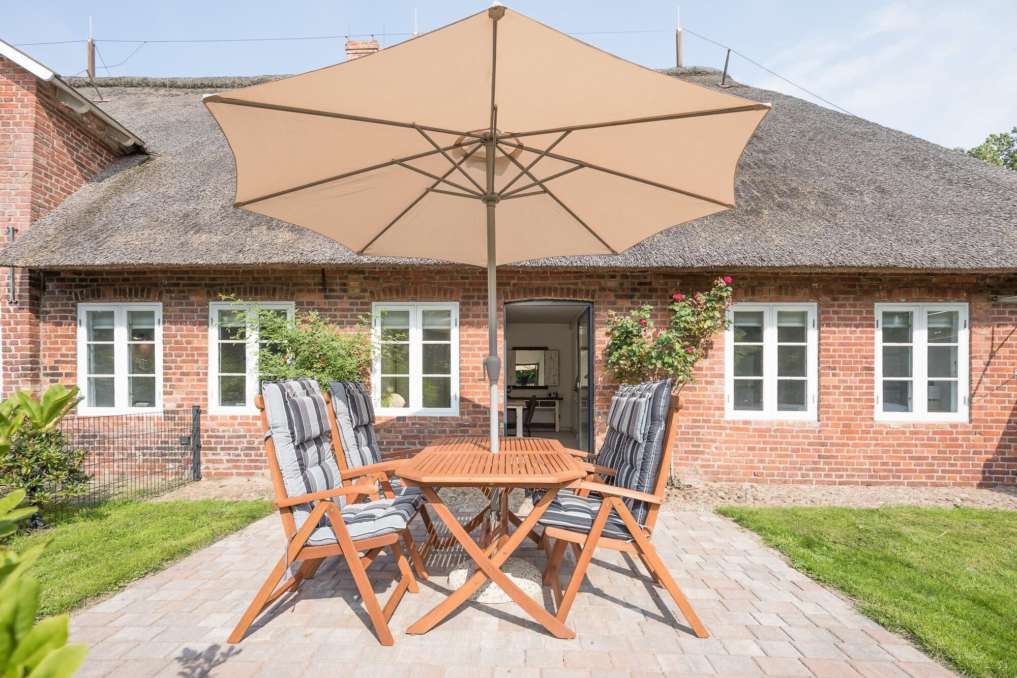 Stilvolle Ferienwohnung mit Reetdach, Biofire-Ofen und eingezäunter Terrasse in idyllischem Wobbenbüll bei Husum.