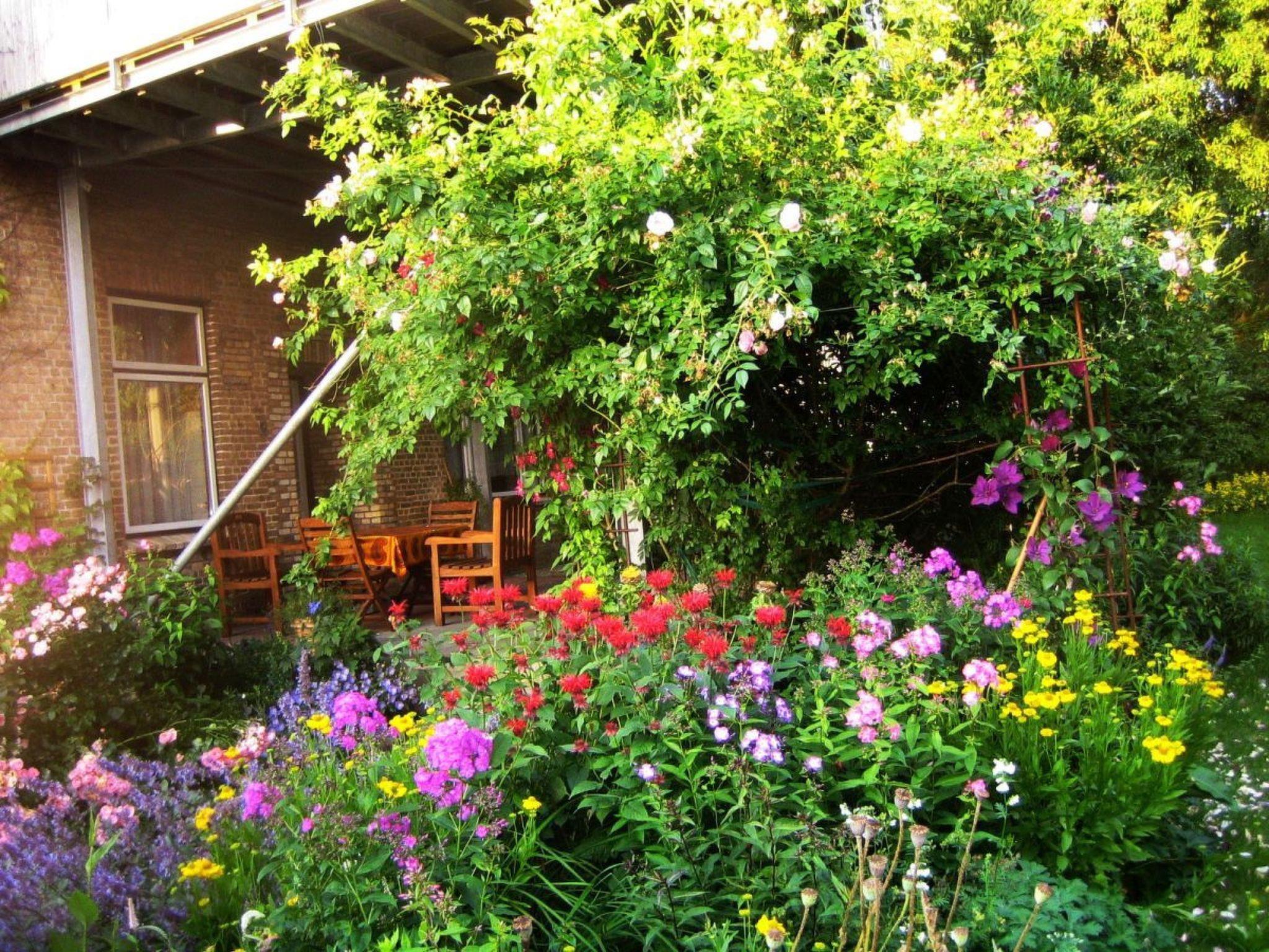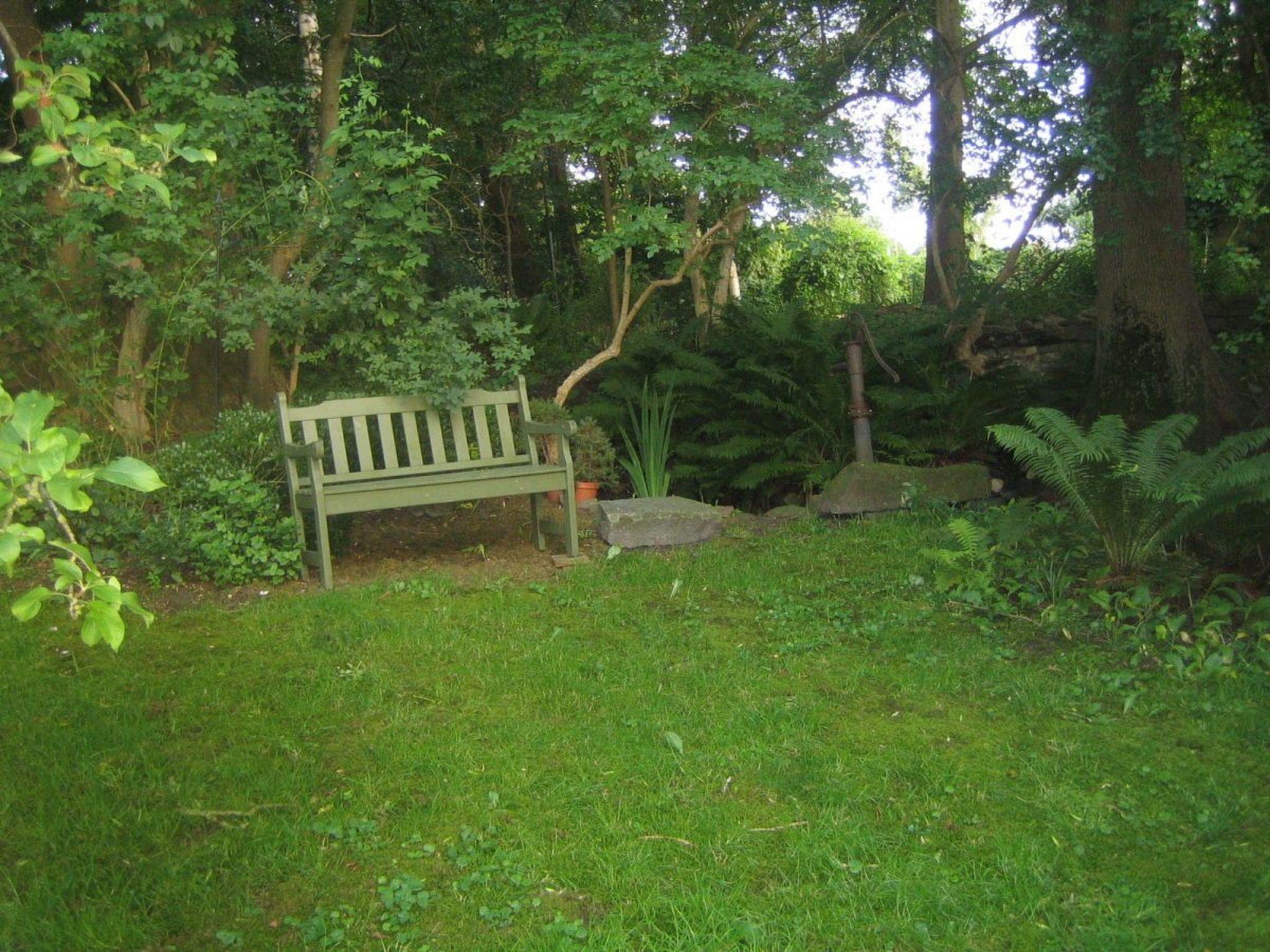 Die Terrasse ist von einem buntblühenden Staudengarten umwachsen, überall befinden sich Sitz-und Liegemöglichkeiten. In der Hängematte lässt sich entspannt ein Buch lesen. Das Grundstück ist 3000m2 groß und bietet auch Kindern und Jugendlichen viele Möglichkeiten. Tischtennisplatte, Badminton-Schäger und gute Fahrräder sind vorhanden. Fahrrad- und Wanderwege und der Fluss mit Bademöglichkeiten und Kanueinsatzstelle befinden sich in unmittelbarer Nähe.