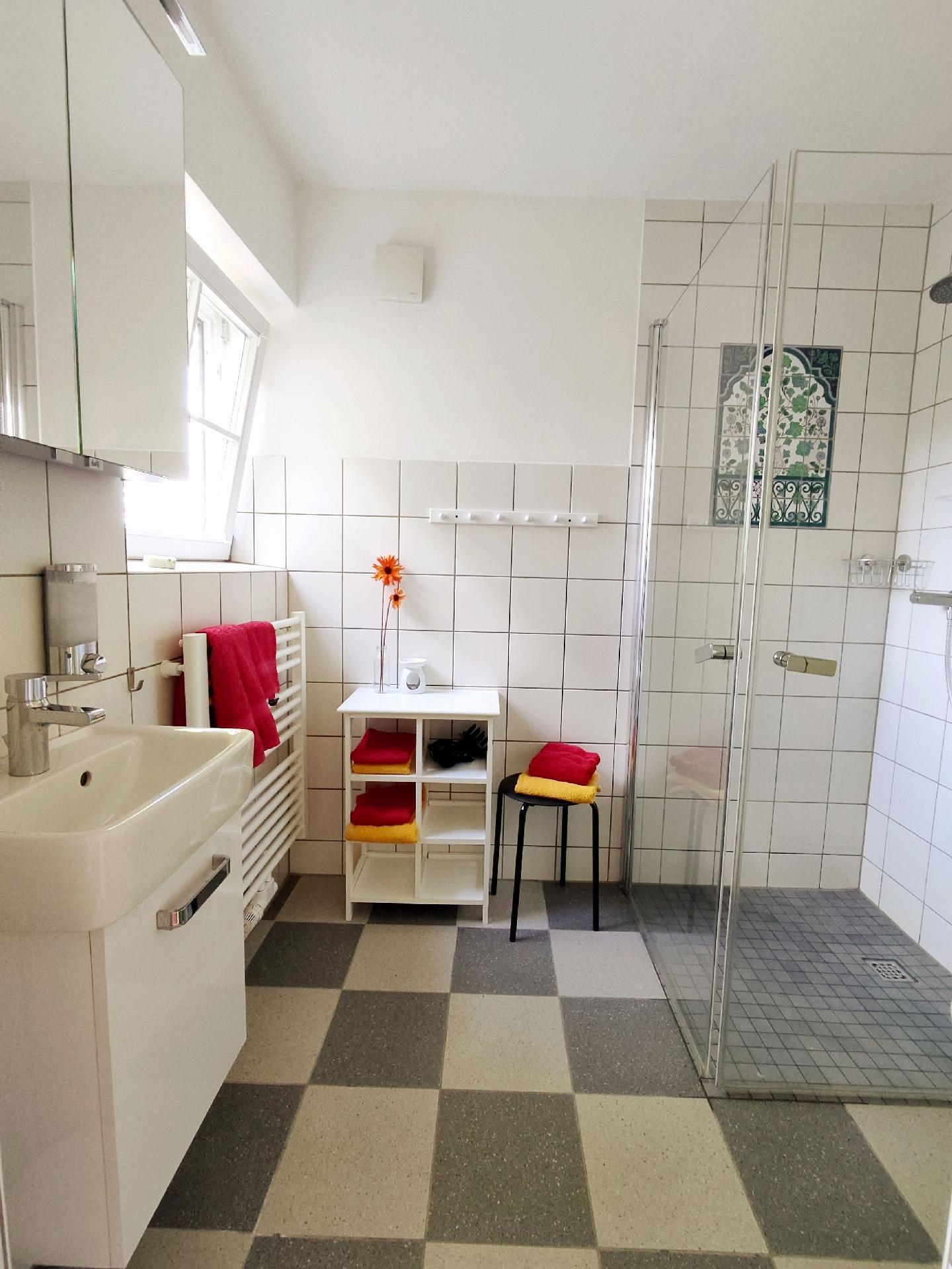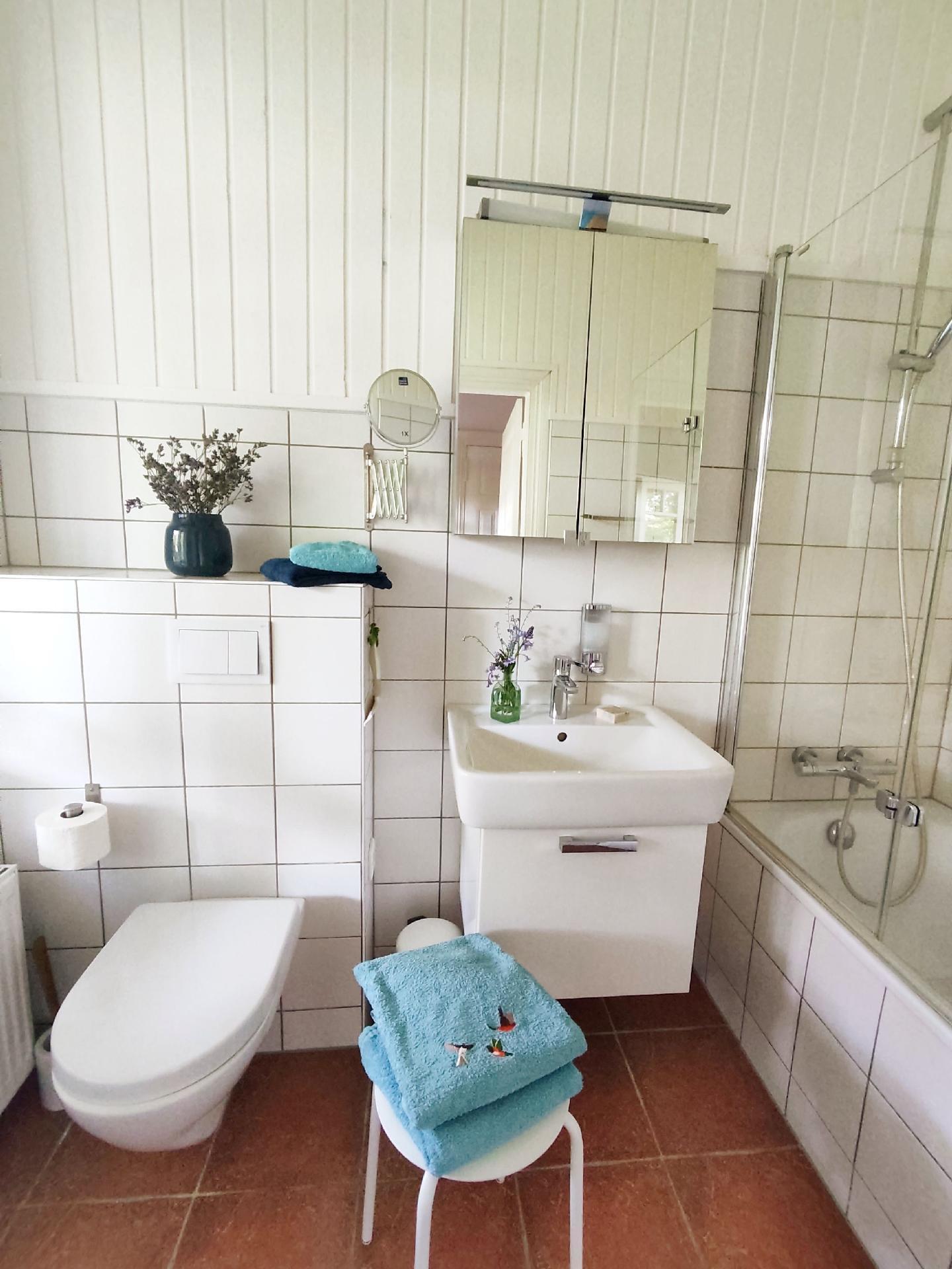Bad/WC: Dusche; Föhn; Toilette; Toilette; Waschbecken; Waschbecken