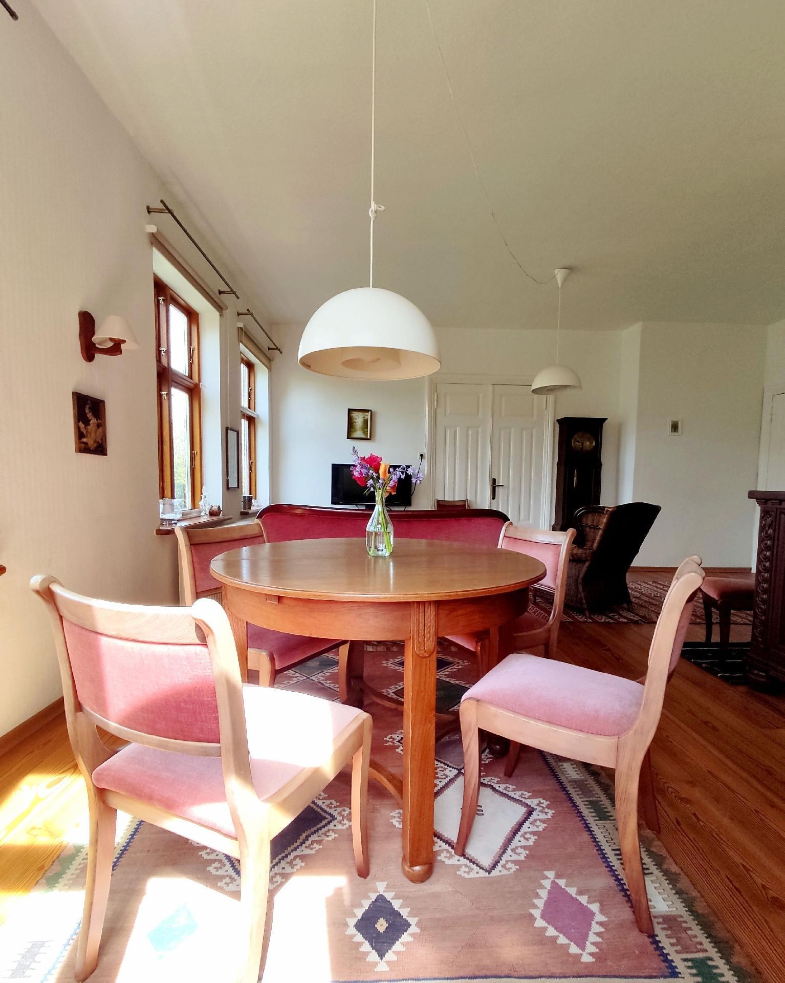 Unsere 200m² Ferienwohnung befindet sich im Erdgeschoss des ehemaligen Bauernhofes der Familie Solterbeck. Die Wohnung wurde im Frühjahr 2015 vollständig renoviert und modernisiert, wobei ihr ursprünglicher Charme erhalten blieb. Sie ist in einem originellen Mix aus alten und modernen Möbeln eingerichtet.