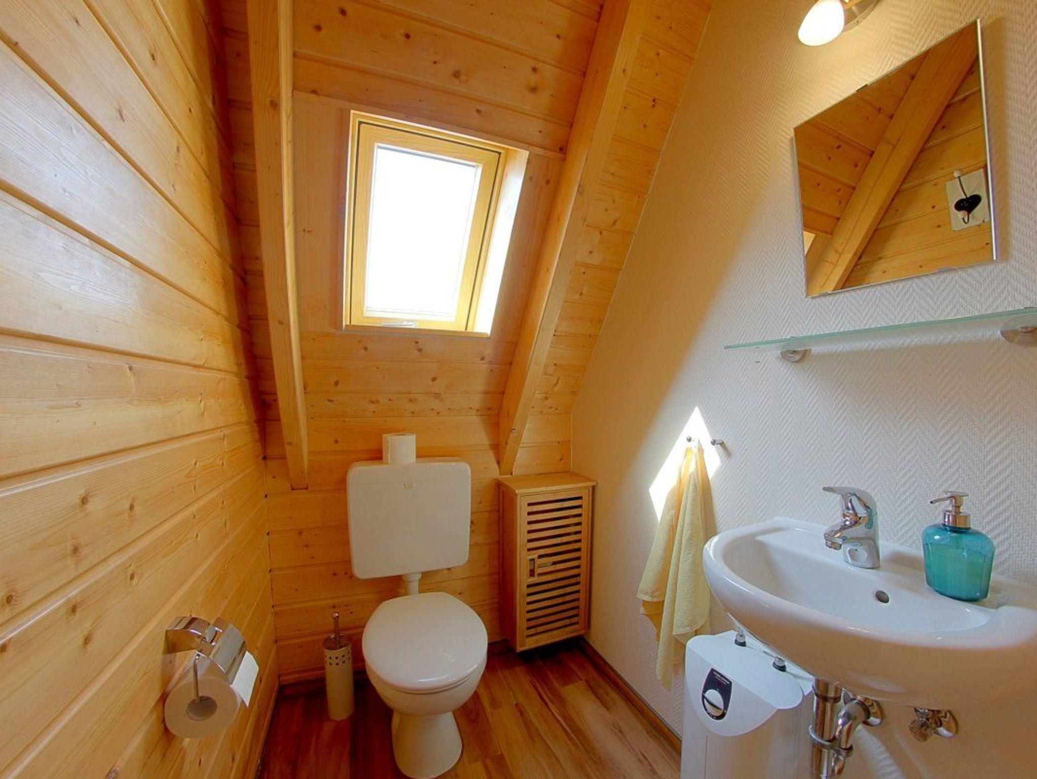 Gästetoilette mit Fenster, WC, Waschbecken, Warmwasser, Ablagen