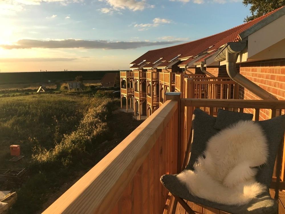 Das Lotsenloft, ein neuwertiges Appartement im Wremer Bogen für vier Personen. Genießen Sie auf dem großzügigen Balkon den freien Blick auf das Meer.