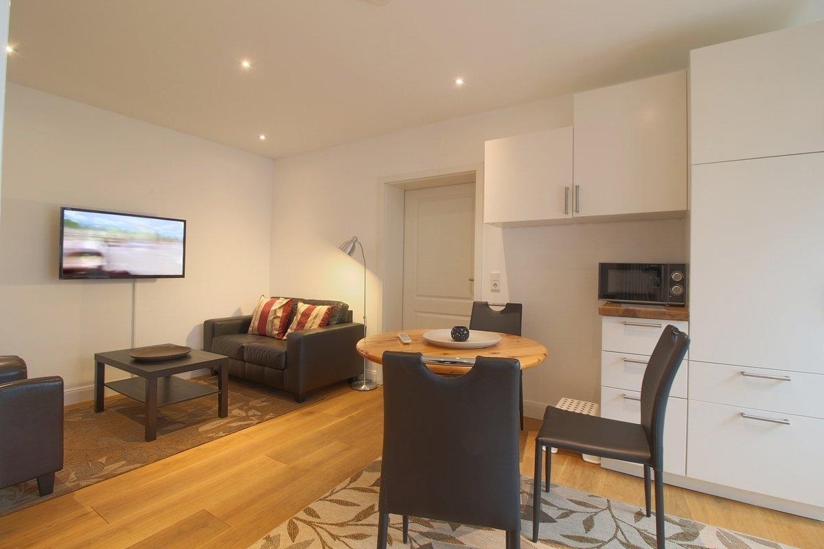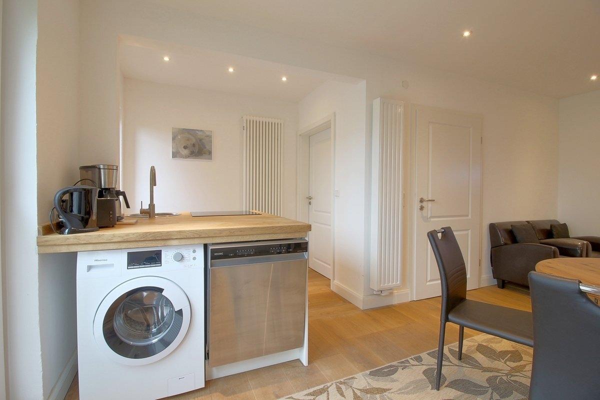 Schicke Küche mit Ceranfeld und Backofen, gemütlicher Wohn- und Essbereich und ein geräumiges Schlafzimmer, sowie ein Kinderzimmer stehen hier zur Verfügung.