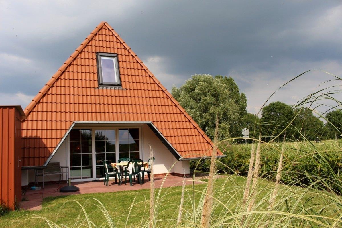 Gemütliches Ferienhaus in Wremen mit Blick auf den Deich und die Wesermündung, ideal für entspannte Tage und Spaziergänge.