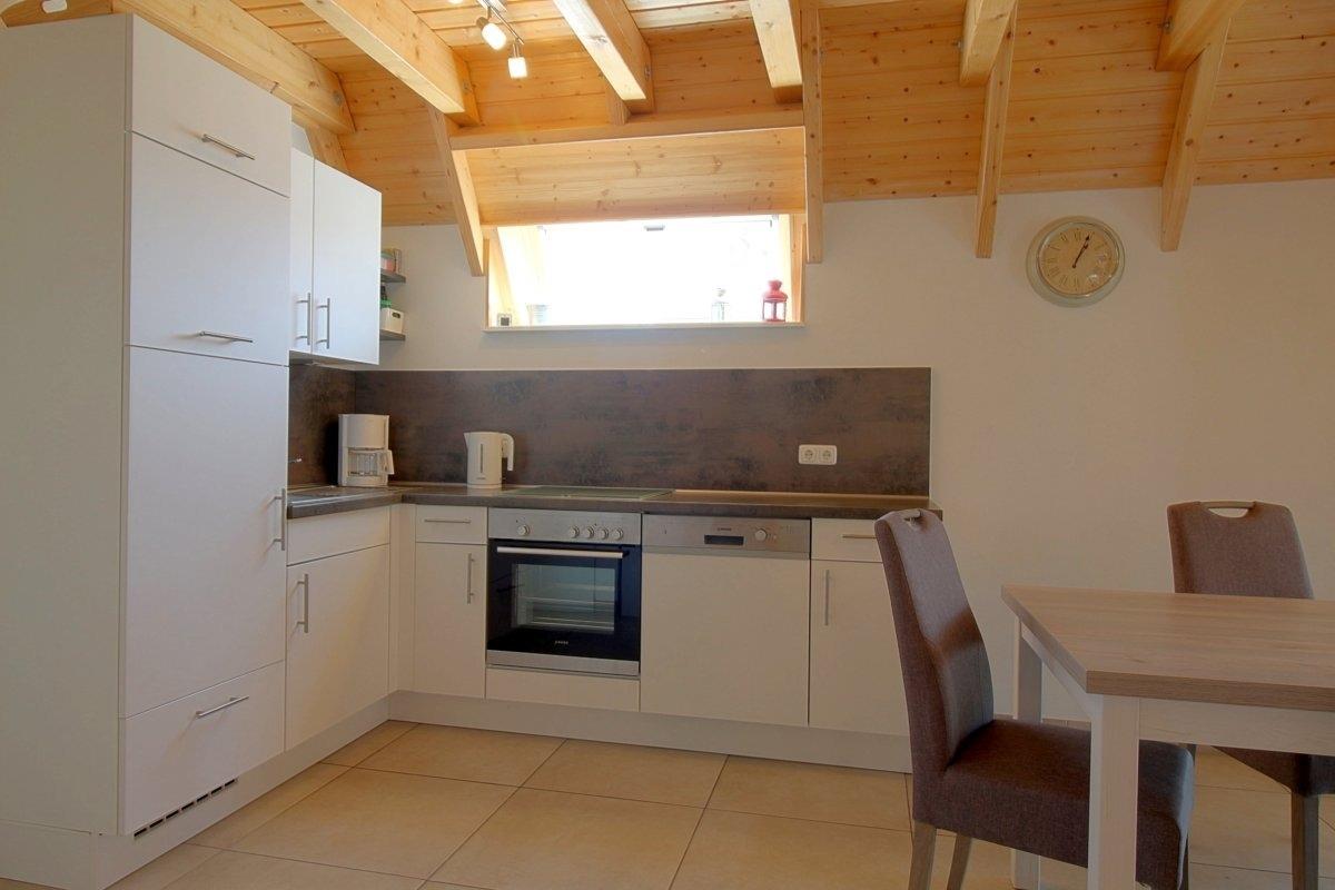 Das gemütliche Wohnzimmer mit Kaminofen schließt an die Küche an. Ein Flachbildschirm-TV Gerät und eine Hi-Fi Anlage stehen für Sie bereit. Die Fußbodenheizung sorgt für angenehme Wärme.