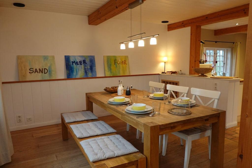 Das Haus Friesengeist in Wrixum für 6 Personen hat seine Besonderheiten. Ursprünglich als 2-Familien-Haus gedacht, vermieten wir nur noch an eine Gästepartie, niemand stört den Anderen. So verfügt das Friesengeist über zwei voll eingerichtete Wohneinheiten, dadurch gibt es für jedes Familienmitglied eine Rückzugsmöglichkeit. Ideal für mehrere Generationen, die gemeinsam Urlaub machen, aber auch gern einmal eine Tür hinter sich schließen möchten. Ein gemütliches, altes Friesenhaus in der Stille Wrixums - herrlich !