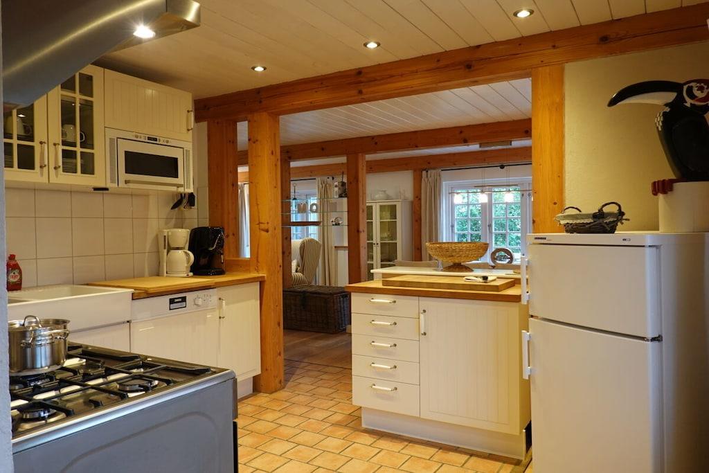 Parterre: (Eingangshalle(, ), Eingangshalle(, ), Küche(, Kochnische, Herd, Wasserkocher, Toaster, Kaffeemaschine, Backofen, Mikrowelle, Spülmaschine, Kühlschrank, Tiefkühlschrank), Wohn/Esszimmer(, , TV, Esstisch, Kaminofen), Schlafzimmer(, , Doppelbett, TV), Kinderzimmer(, Etagenbett, TV), Badezimmer(, Toilette, Badewanne, Dusche, Waschbecken), guest toilet(, Toilette, Waschbecken)) In der 1. Etage: (Eingangshalle, Wohnzimmer(, , , TV), Wohnzimmer(TV), Küche(, , Kochnische, Esstisch, Kochplatte, Wasserkocher, Toaster, Kochherd, Kaffeemaschine, Backofen, Mikrowelle, Spülmaschine, Kühlschrank, Tiefkühlschrank), Küche(Kochplatte, Backofen, Spülmaschine, Kühlschrank), Schlafzimmer(, , Doppelbett), Schlafzimmer(, , Doppelbett), Badezimmer(, Toilette, Dusche, Waschbecken), Badezimmer(, Toilette, Dusche, Waschbecken), guest toilet(, Toilette, Waschbecken), guest toilet(, Toilette, Waschbecken)) In der 2. Etage: (Gartenlounge) , , Internet, Internet, Trockner, Waschmaschine, Heizung, Terrasse(, Gartenmöbel), Terrasse(Gartenmöbel), Garten(Gartenmöbel), Parkplatz, Bügelbrett, Trockenschrank