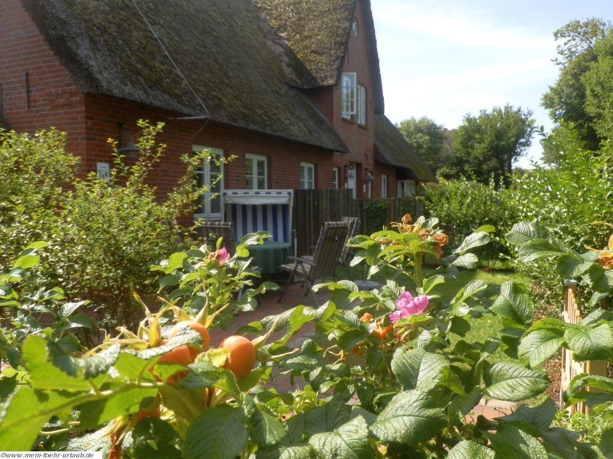Gemütliche Ferienwohnung im Pastoratshof Wrixum mit Kamin und Gartenblick für erholsame Urlaubstage auf Föhr.