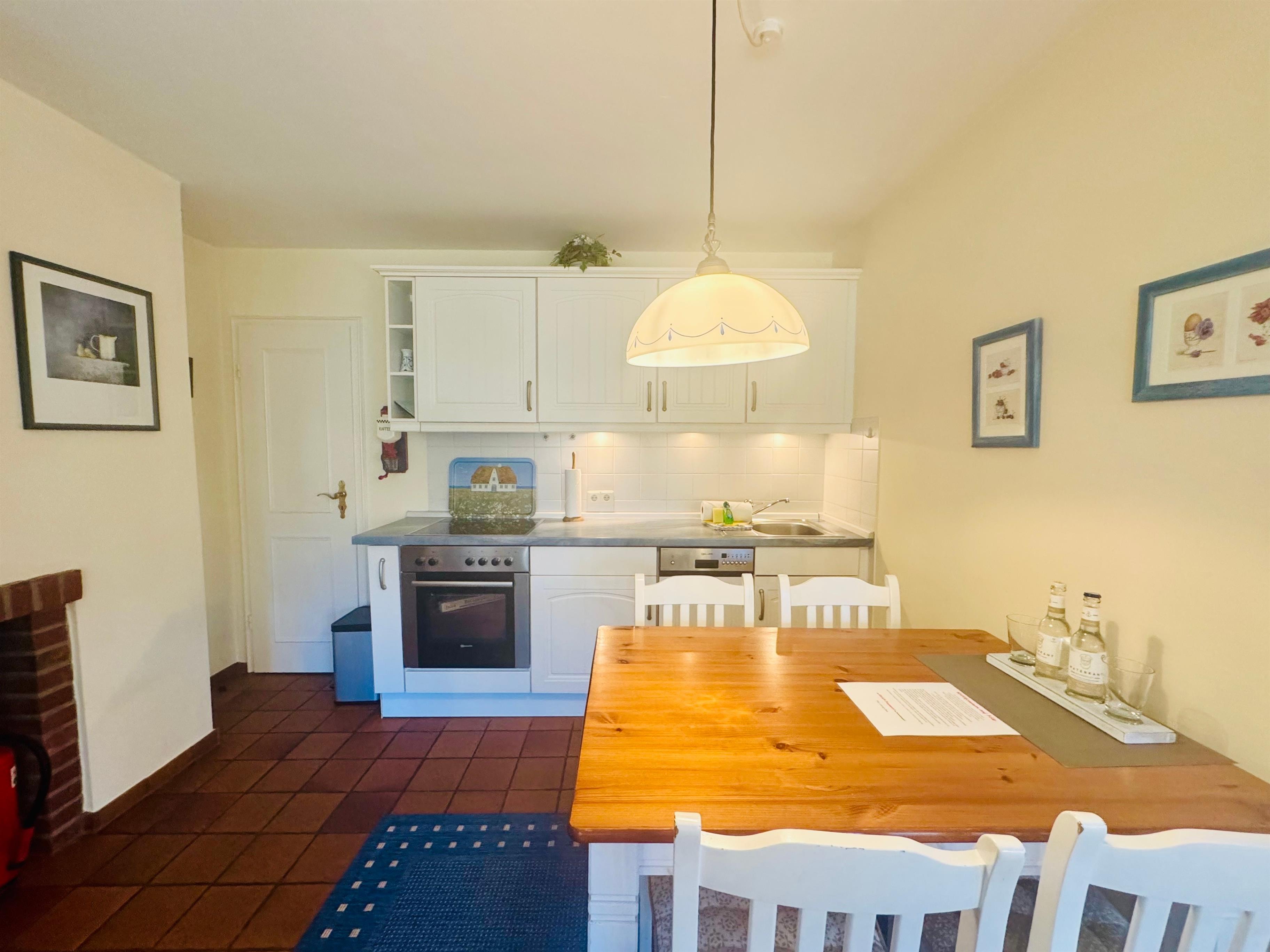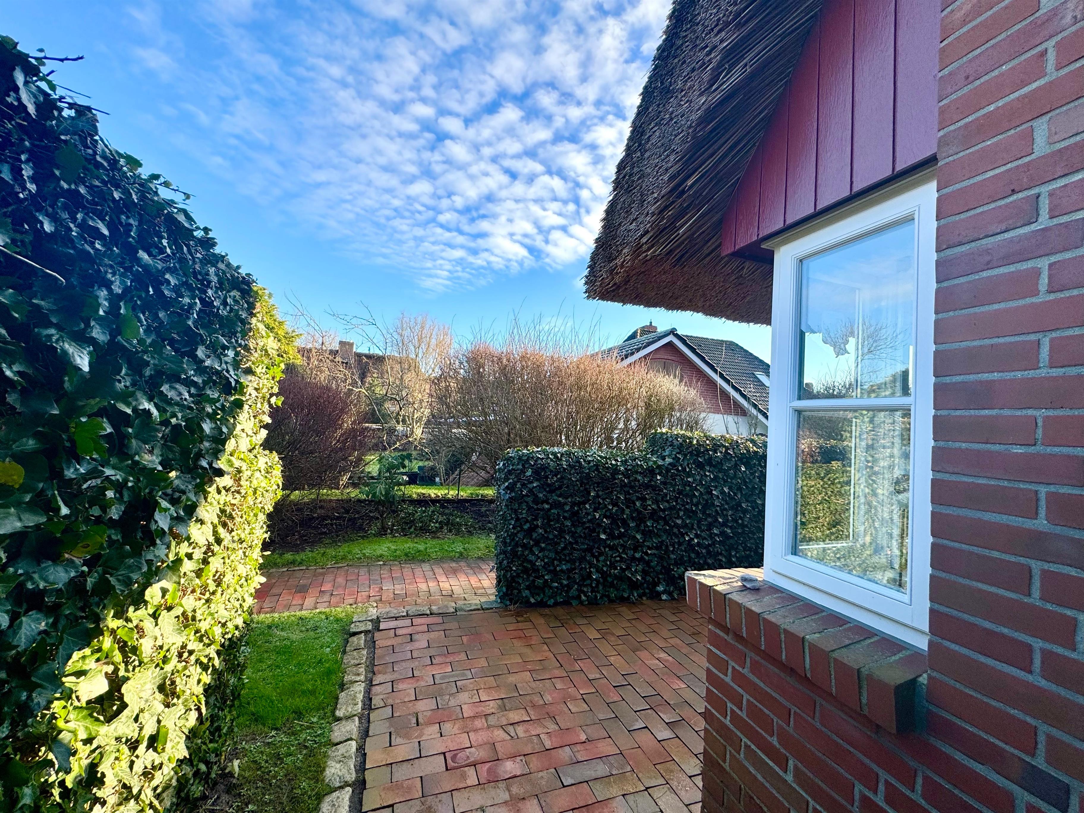 Gemütliche Ferienwohnung in Wrixum auf Föhr mit Kamin, Terrasse und kostenfreiem WLAN für erholsamen Urlaub in ruhiger Lage.