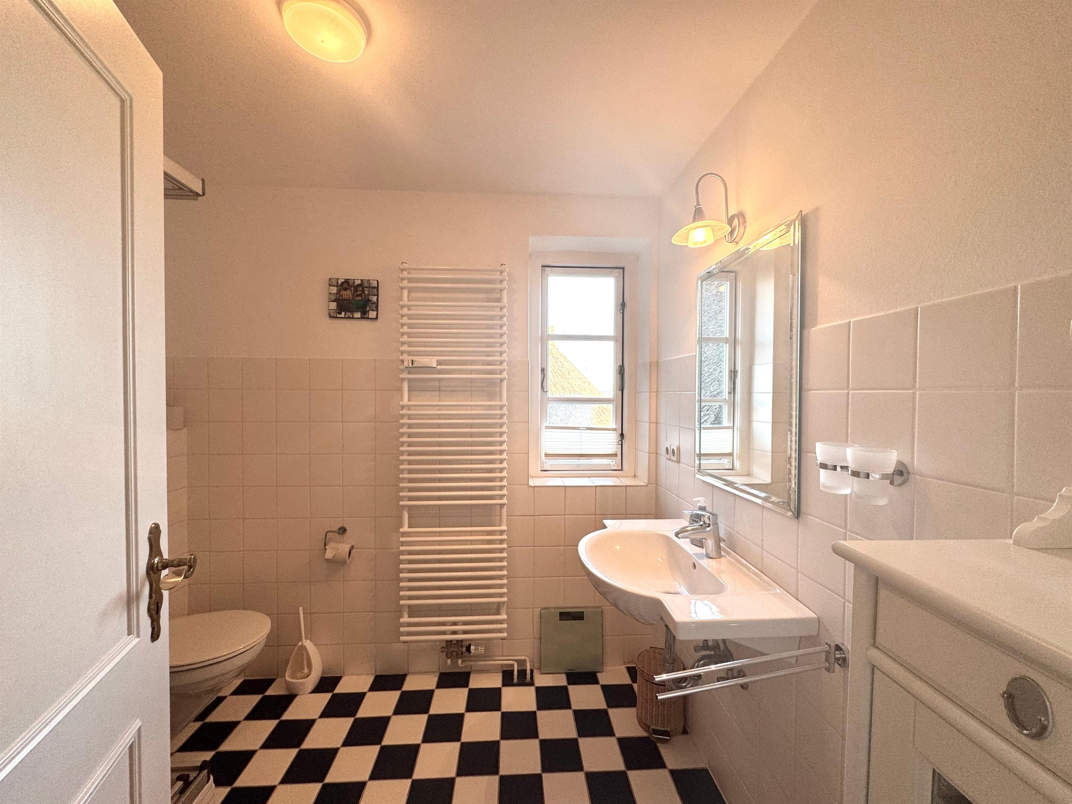 Ebenso in Erdgeschoss befindet sich ein Duschbad (Fön vorhanden), bevor Sie über einen Treppenaufgang in das Obergeschoss gelangen. Hier steht Ihnen ein weiteres, geräumiges Badezimmer und ein Schlafzimmer mit Doppelbett und neuem Flachbild-TV zur Verfügung.