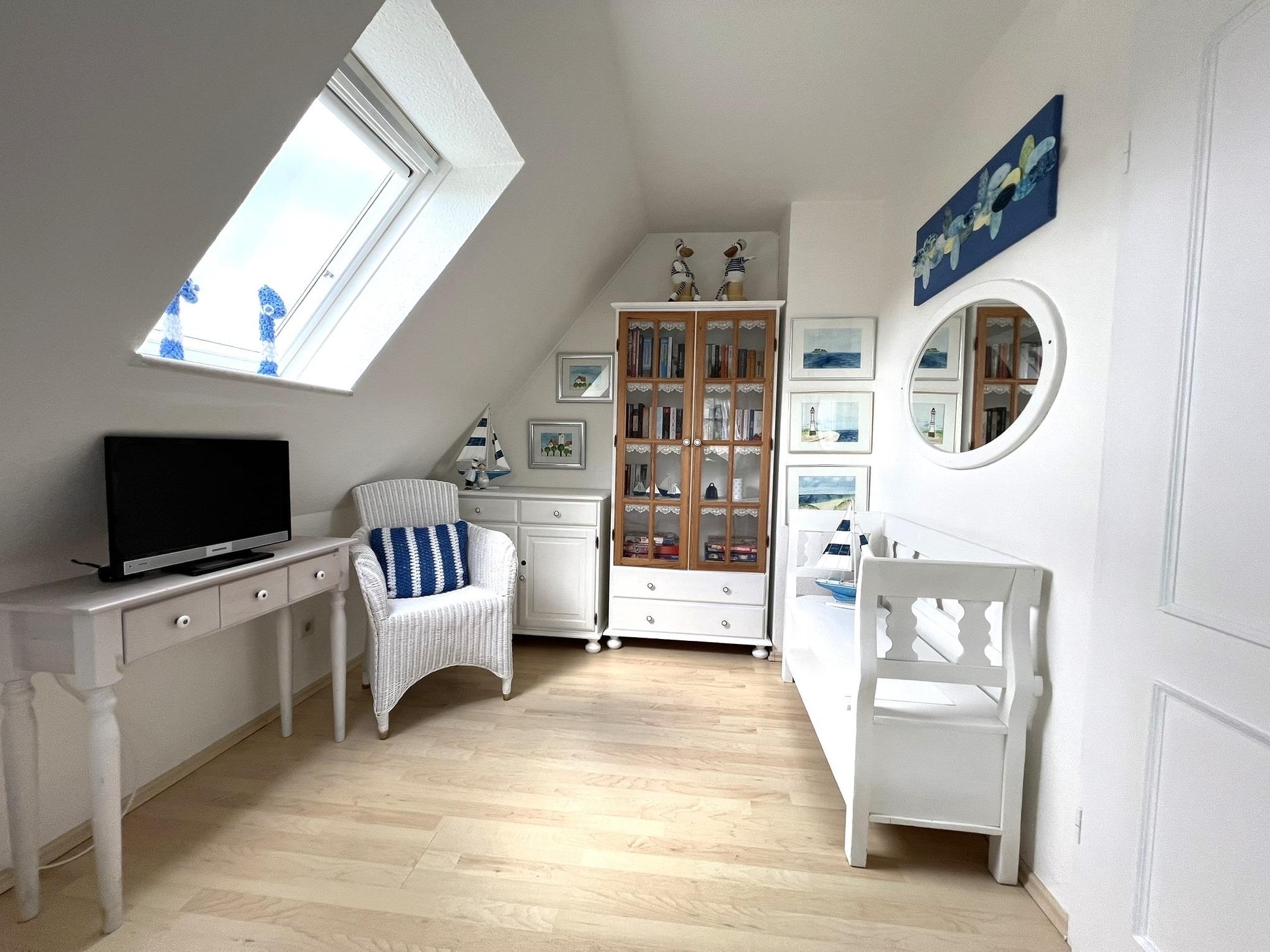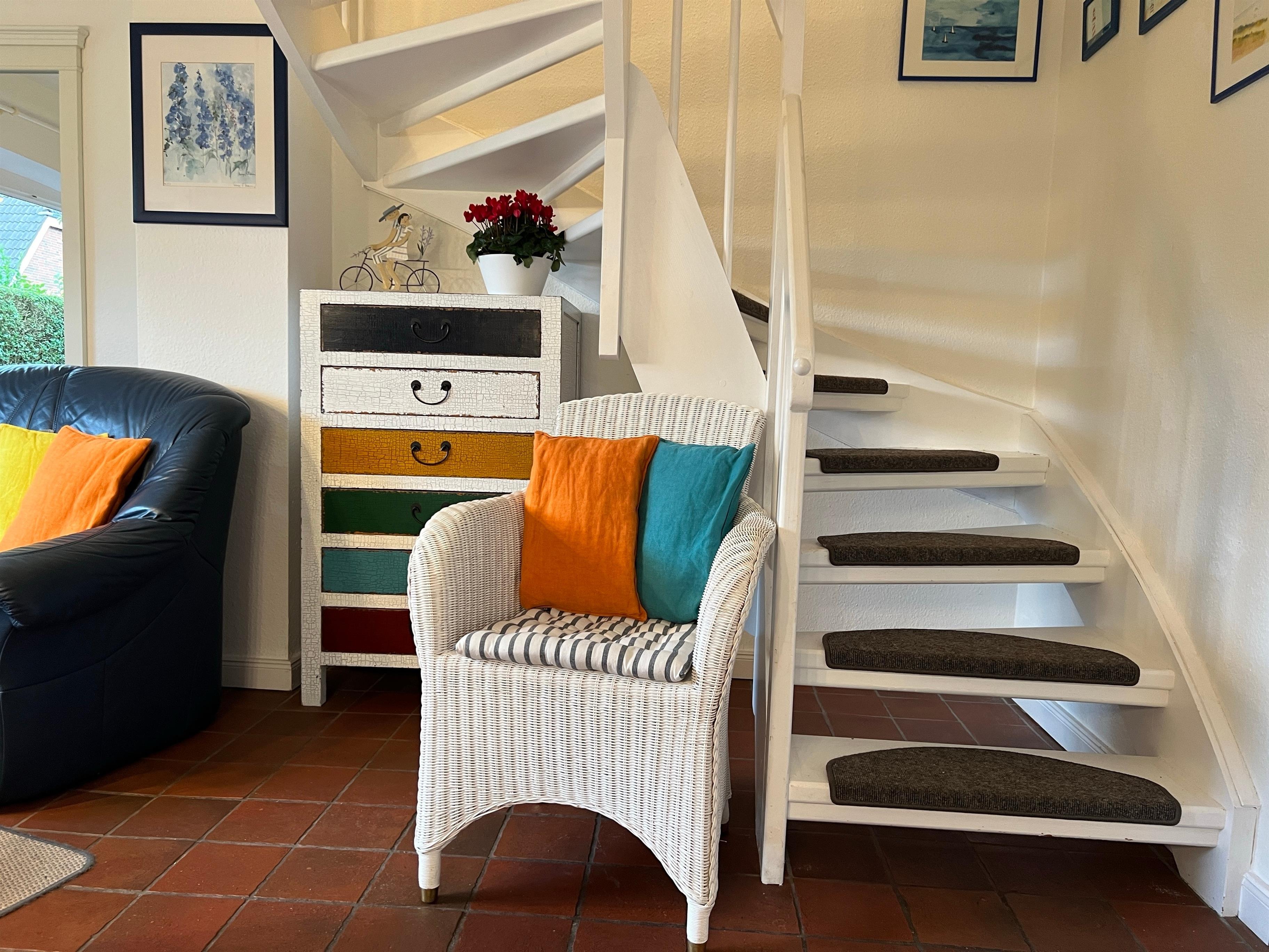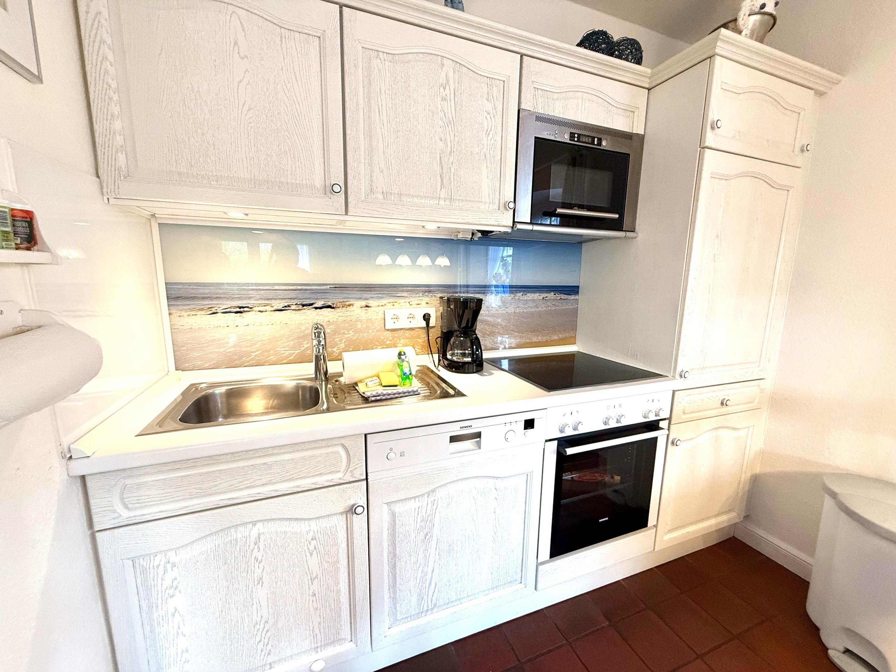 Die Haushälfte ist individuell mit vielen schönen Details ausgestattet und schafft eine behagliche und wohnliche Atmosphäre. Der Garten mit Strandkorb und Sonnenliegen lädt zum Entspannen ein. Und sollte das Wetter mal nicht so schön sein, steht im Wohnzimmer ein Smart-TV mit über 250 Kanälen, eine Stereoanlage mit Bluetooth und ein DVD-/blu ray-Player zur Verfügung. Apps wie Netflix, Amazon Prime, Disney+ und Co. sind auf dem Fernseher vorinstalliert und bieten die Möglichkeit, mit dem eigenen Account die Lieblingsserie weiterzuschauen.