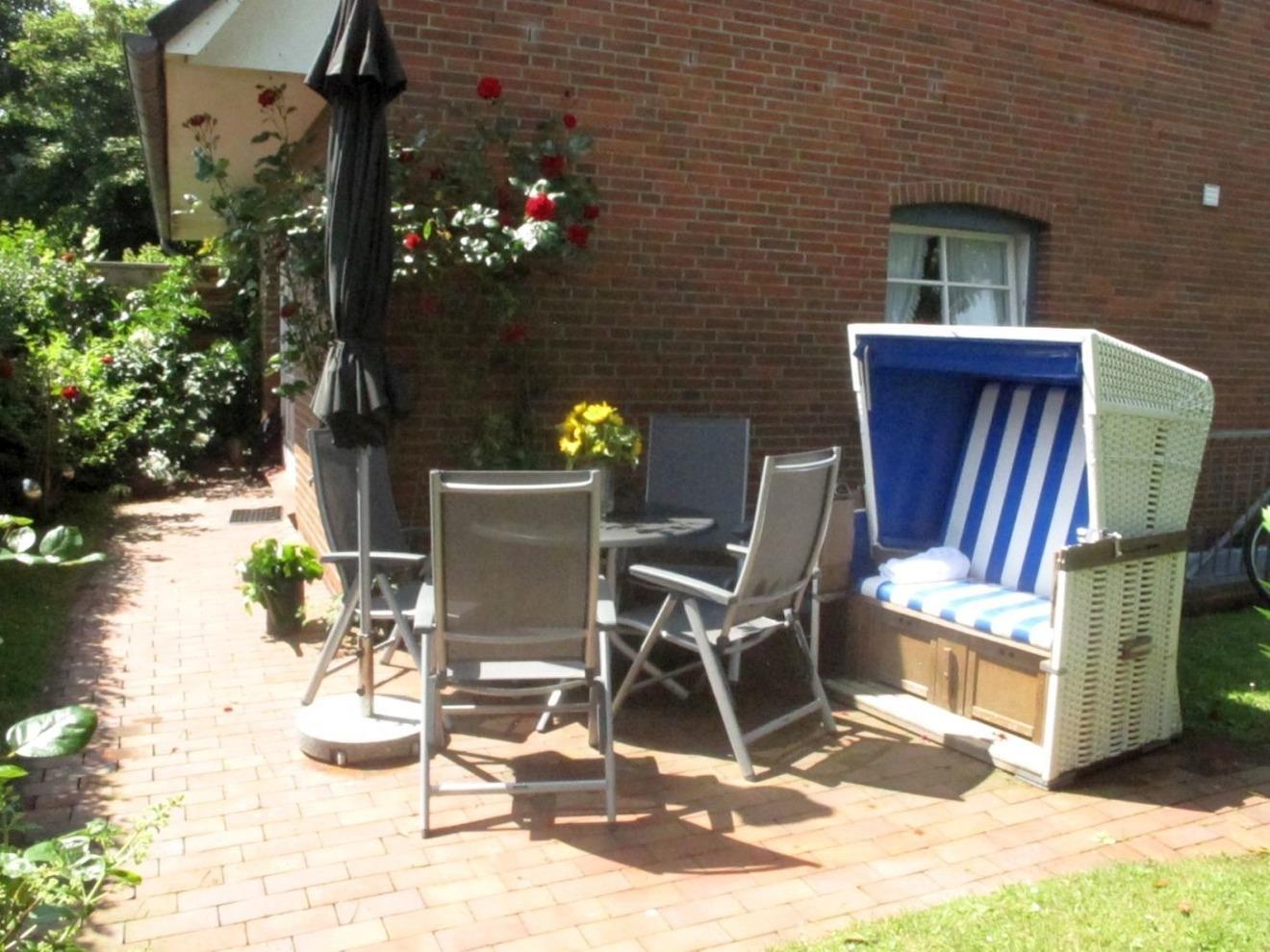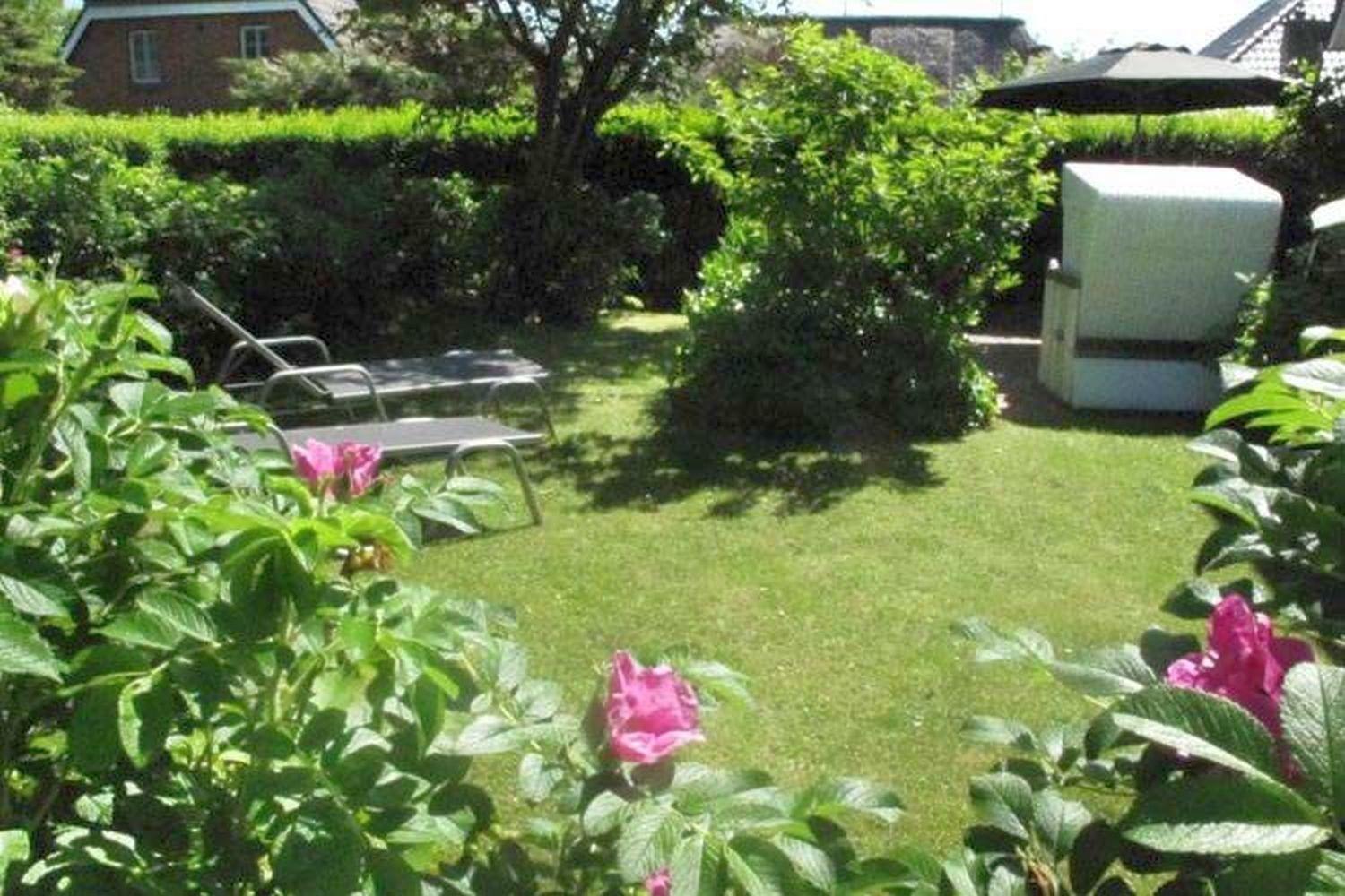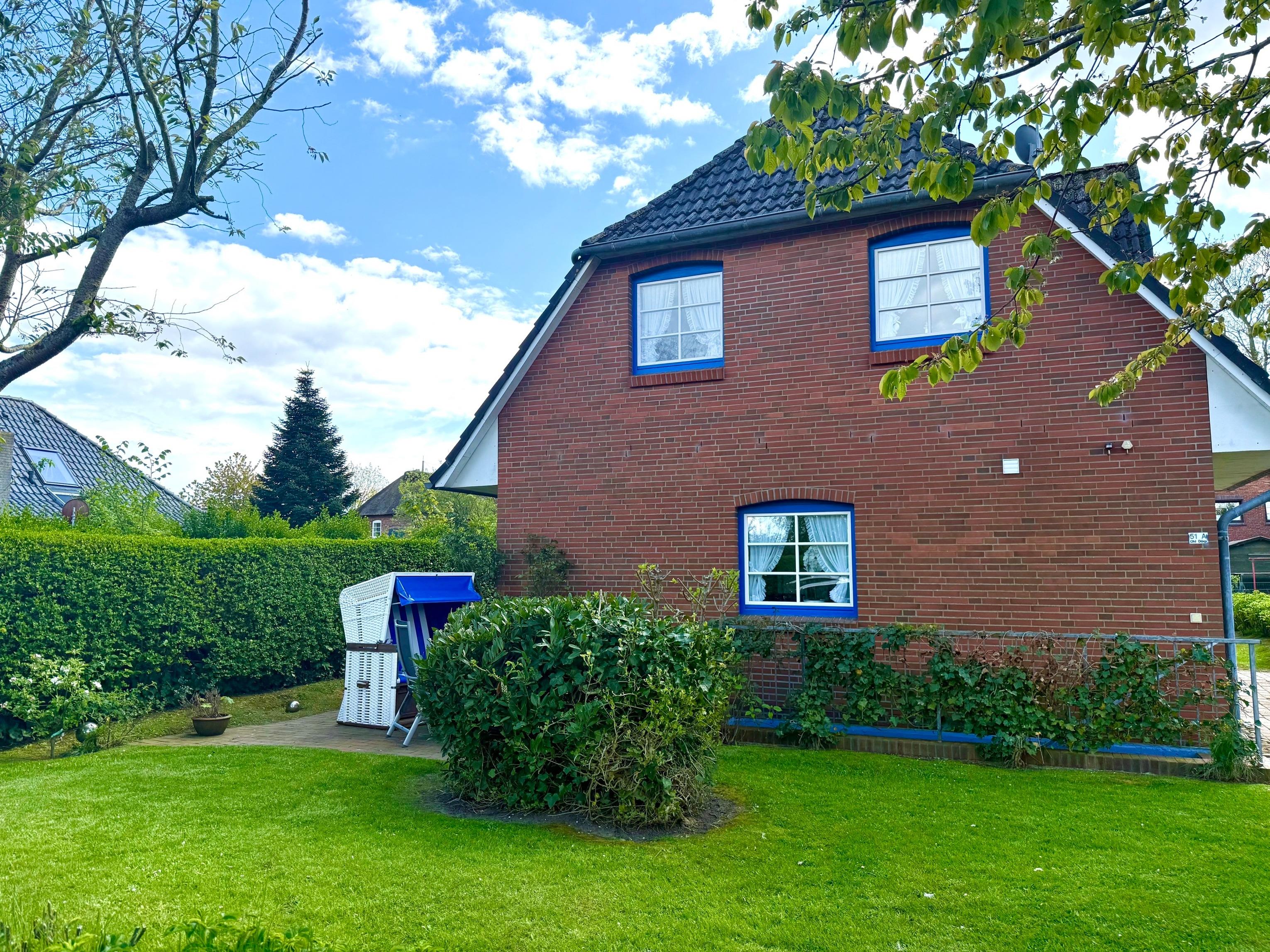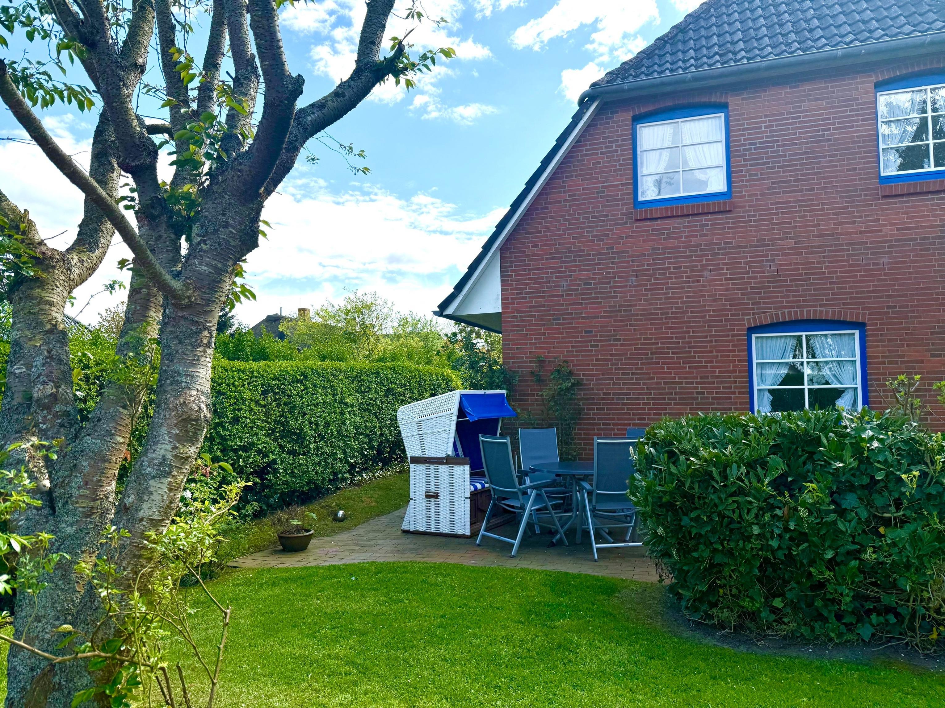 Gemütliches Doppelhaus mit Garten und Strandkorb nahe Wyk auf Föhr, ideal für erholsame Tage in ruhiger Lage.