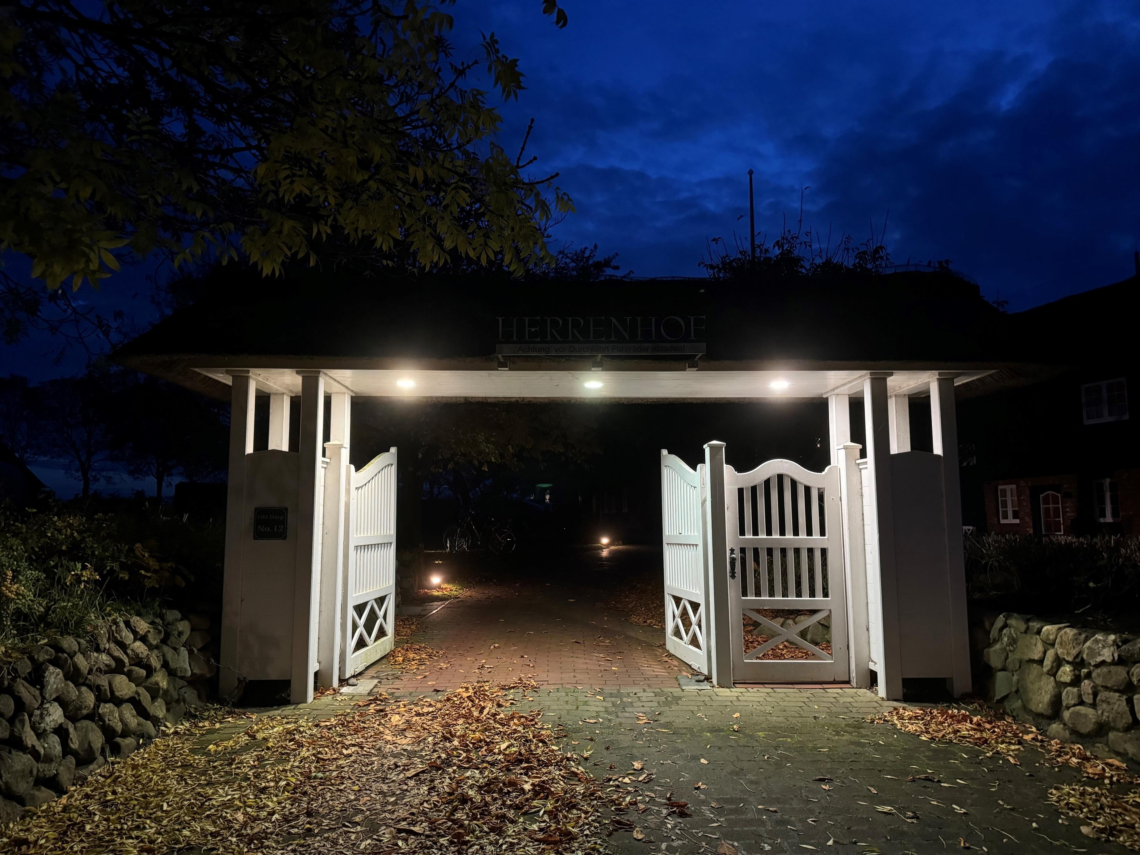 Der Herrenhof ist ein historischer Reetdachgutshof mit seinen Ursprüngen im Jahre 1722. Das Gebäudeensemble liegt auf einem gepflegten, parkähnlichen, 12.000 qm großen Grundstück am Ortsrand von Wrixum, in Umgebung anderer Reetdachanwesen, direkt an der Marsch. Wyk mit allen Sehenswürdigkeiten wie Hafen, Promenade mit vielen kleinen Geschäften und dem Sandstrand ist mit dem Rad schnell in 5 Minuten zu erreichen. In Wrixum befindet sich ein Bäcker, zwei Restaurants sowie ein Fahrradverleih.