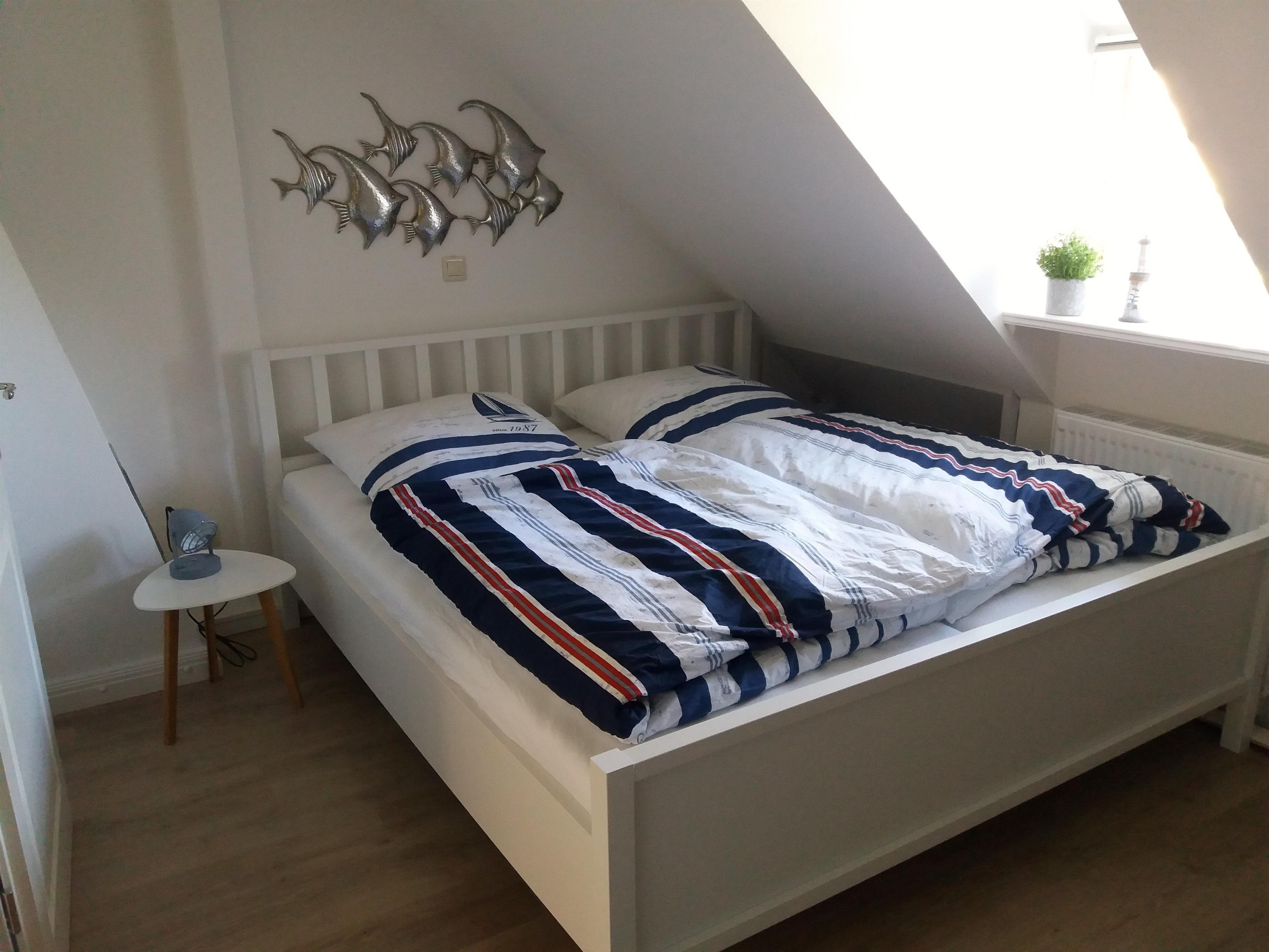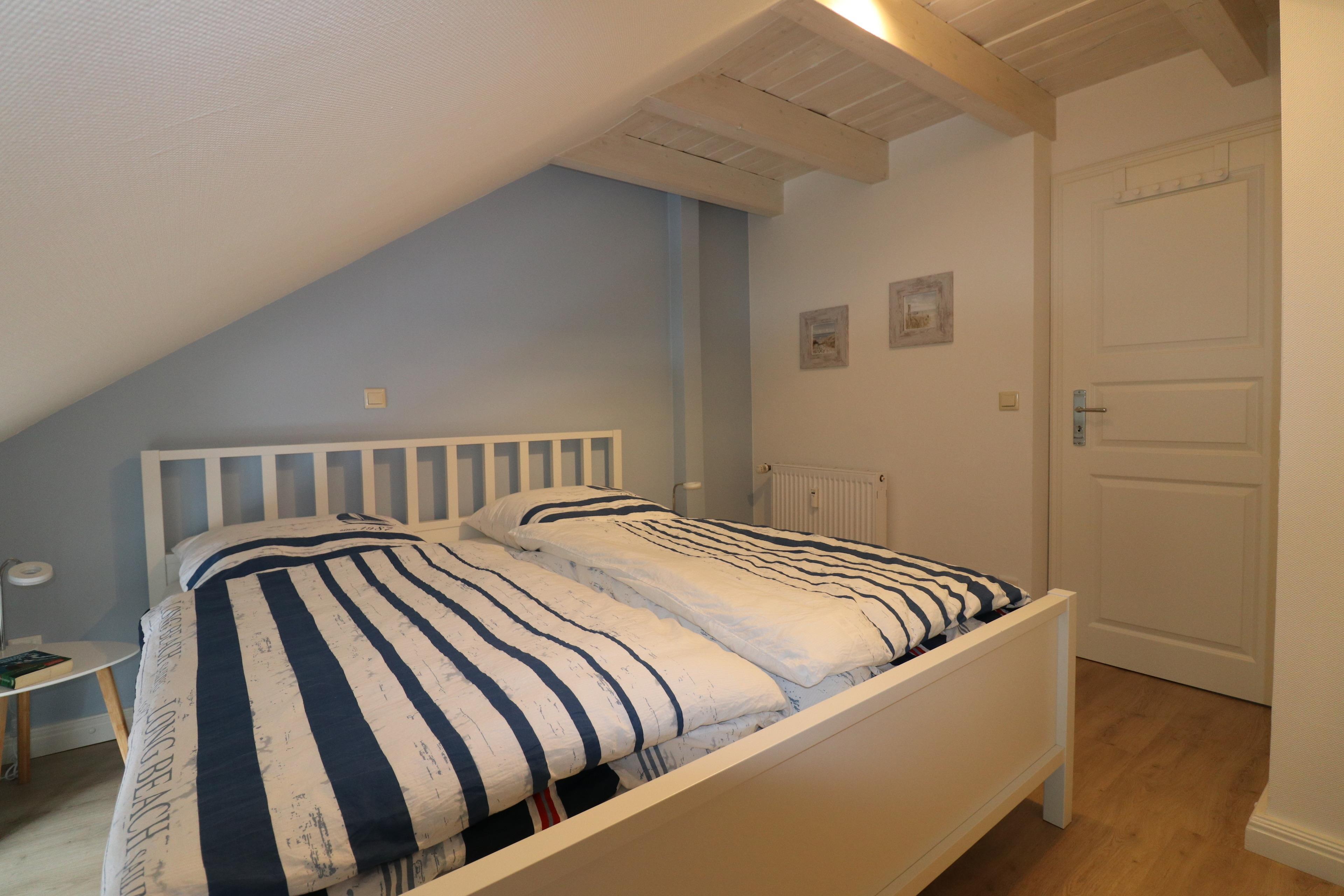 Im Erdgeschoss befindet sich das Wohnzimmer, die neue moderne und voll ausgestattete Küche sowie ein Duschbad. Vom Wohnzimmer aus kommen Sie direkt auf die sonnige Terrasse mit hellen Gartenmöbeln und einem eigenen Strandkorb. Im Obergeschoß befinden sich die zwei Schlafzimmer mit Doppelbetten und ein weiteres Badezimmer.