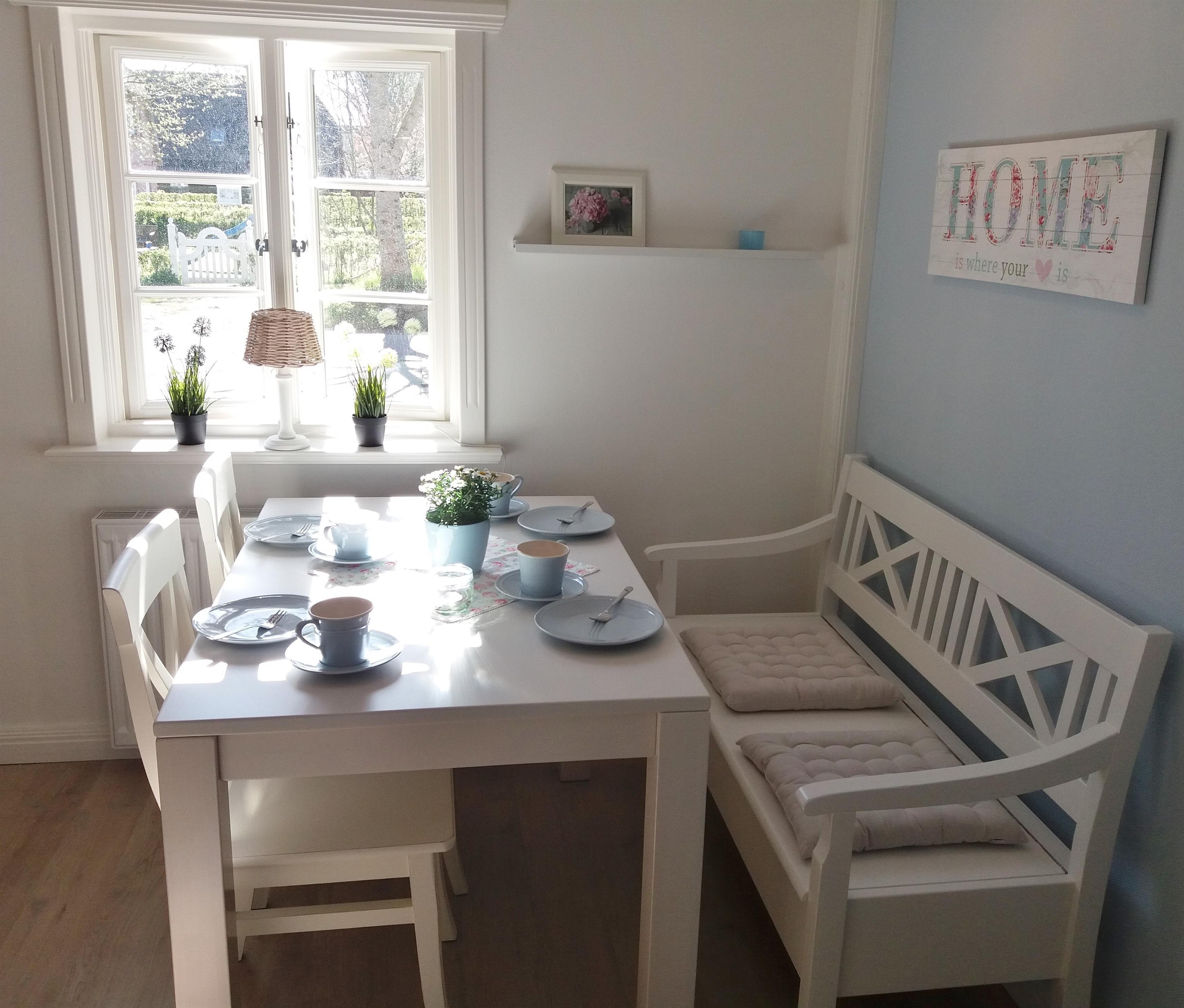 Erleben Sie nordischen Charme in der liebevoll eingerichteten Ferienwohnung Smillas Hus auf Föhr mit Terrasse und Garten.