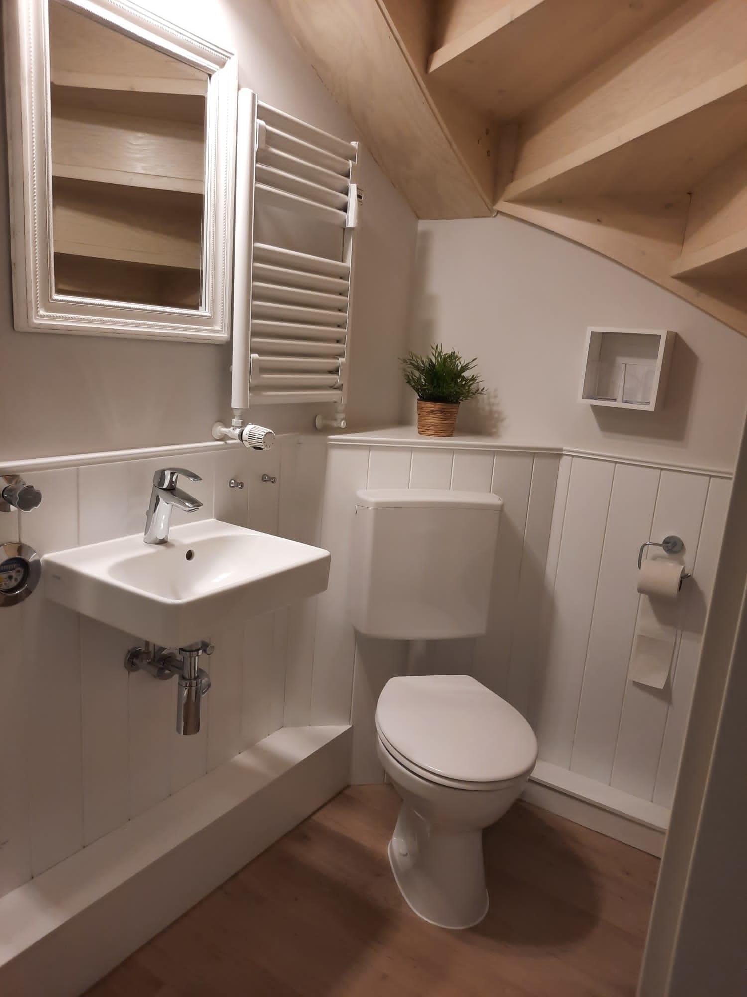 Die Ferienwohnung ist ein Hausteil in einem restaurierten Bauernhof unter Reet und streckt sich über 2 Ebenen. Die 60 qm große Ferienwohnung wurde im Frühjahr 2018 umfassend renoviert und zeichnet sich durch ihre helle, liebevolle Einrichtung im nordischen Stil aus.