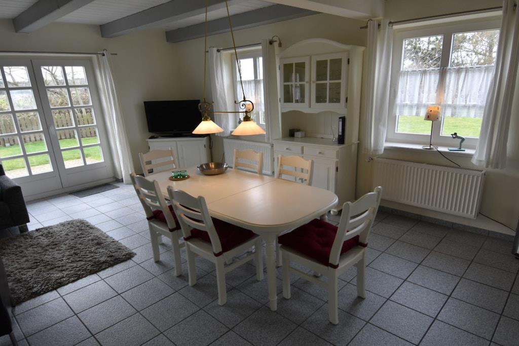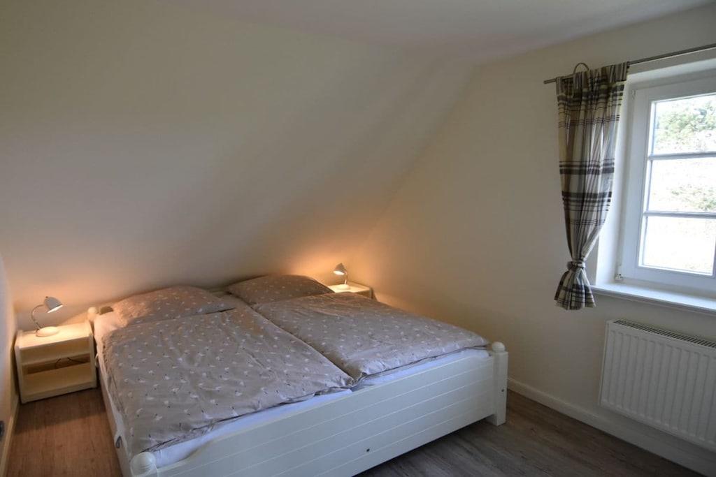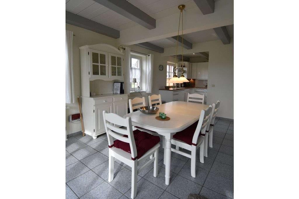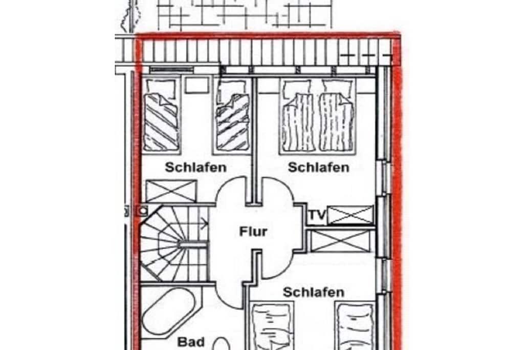 Im Keller mit separatem seitl. Außenzugang befinden sich zur gemeinschaftlichen Nutzung ein Hauswirtschaftsraum mit Waschmaschine und Trockner (gegen Gebühr). Ein kleiner Kinderspielplatz steht auf dem Grundstück ebenfalls zur Verfügung. Aufteilung: Erdgeschoss: Flur mit Garderobe, Duschbad/WC, großzügiges und helles Wohn- und Esszimmer mit Flat-TV, und Ausgang auf die sonnige Südterrasse, die Ausstattung der integrierten Küche lässt keine Wünsche offen, Treppenaufgang in das Dachgeschoss. Dachgeschoss: Schlafzimmer mit Doppelbett, zwei Schlafzimmer mit jeweils zwei Einzelbetten, Wannenbad/WC.