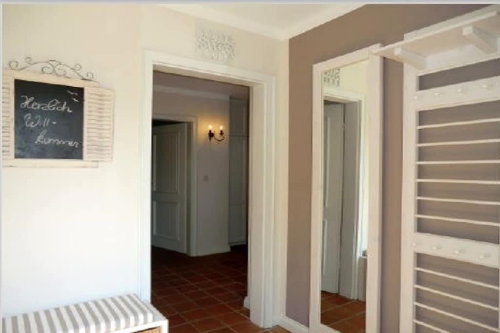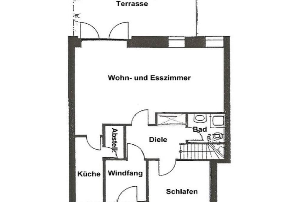 Erdgeschoss: Windfang mit Garderobe, Flur mit Einbauschrank und Treppenaufgang, großzügiges Wohn- und Esszimmer mit Ausgang auf die Terrasse in Westausrichtung, Küche mit sep. Vorratsraum, Duschbad/WC, Schlafzimmer mit Doppelbett. Dachgeschoss: mit großzügigem Flur, Duschbad/WC mit Waschmaschine, Schlafzimmer mit Doppelbett, Schlafzimmer mit zwei Einzelbetten.