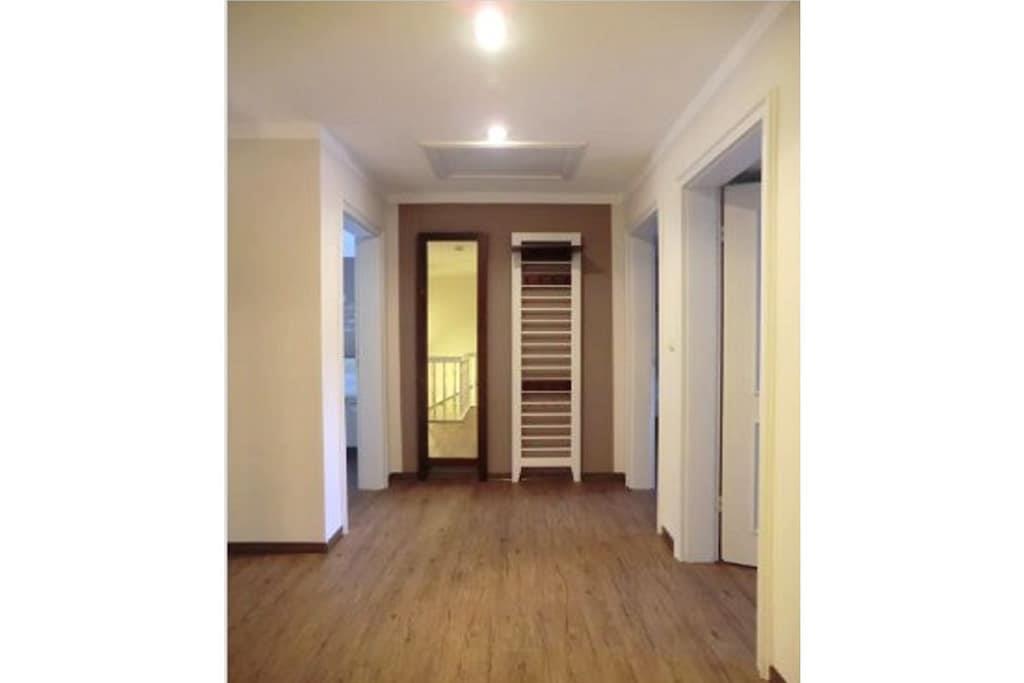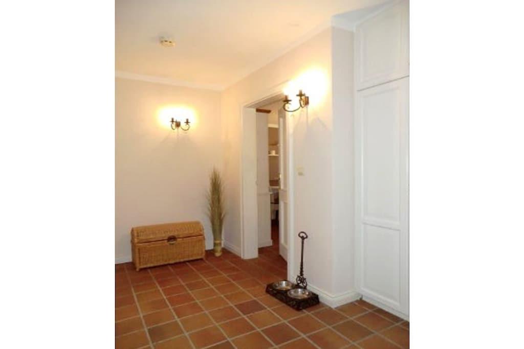 Parterre: (Schlafzimmer(, Doppelbett)) In der 1. Etage: (Schlafzimmer(, Doppelbett), Schlafzimmer(, Einzelbett, Einzelbett)) , , Eingangshalle(, ), Küche(Kochplatte, Wasserkocher, Toaster, Backofen, Spülmaschine), Wohn/Esszimmer(, , TV, Esstisch), Badezimmer(, Toilette, Dusche, Waschbecken), Badezimmer(, Toilette, Dusche, Waschbecken), Internet, Waschmaschine, Heizung, Terrasse(Strand, Gartenmöbel), Parkplatz, Bügelbrett, Bügeleisen, Trockenschrank