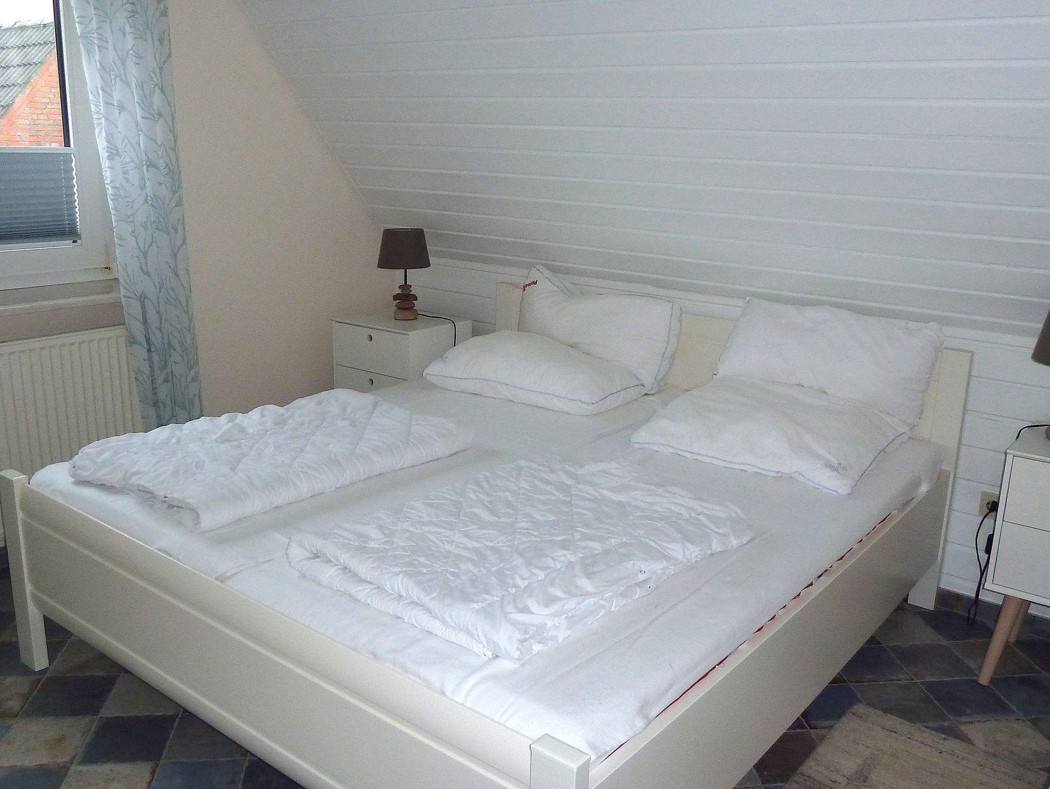 Die gemütliche und maritim, geschmackvoll eingerichtete 50 m² große Obergeschoßwohnung befindet sich in einem Mehrfamilienhaus in Wrixum und bietet Platz für zwei bis vier Personen. Das Objekt verfügt über zwei separate Schlafzimmer - das eine Schlafzimmer ist mit einem Doppelbett ausgestattet und das zweite Schlafzimmer hat eine sehr stabile Doppelchlafcouch. Dazu erwartet Sie ein kleines helles Wohnzimmer, eine sperate Küche und das Duschbad darf natürlich nicht fehlen.