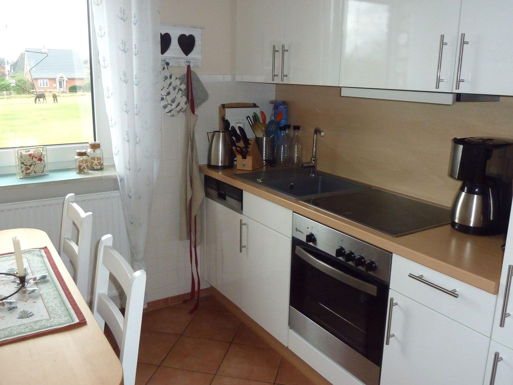 Küche / Haushalt: Backofen mit Ceranfeld, Filterkaffeemaschine, Geschirrspüler, Wasserkocher, Toaster.