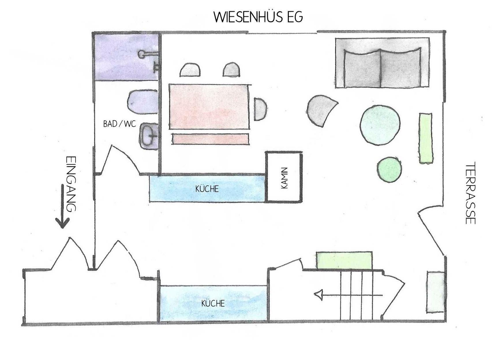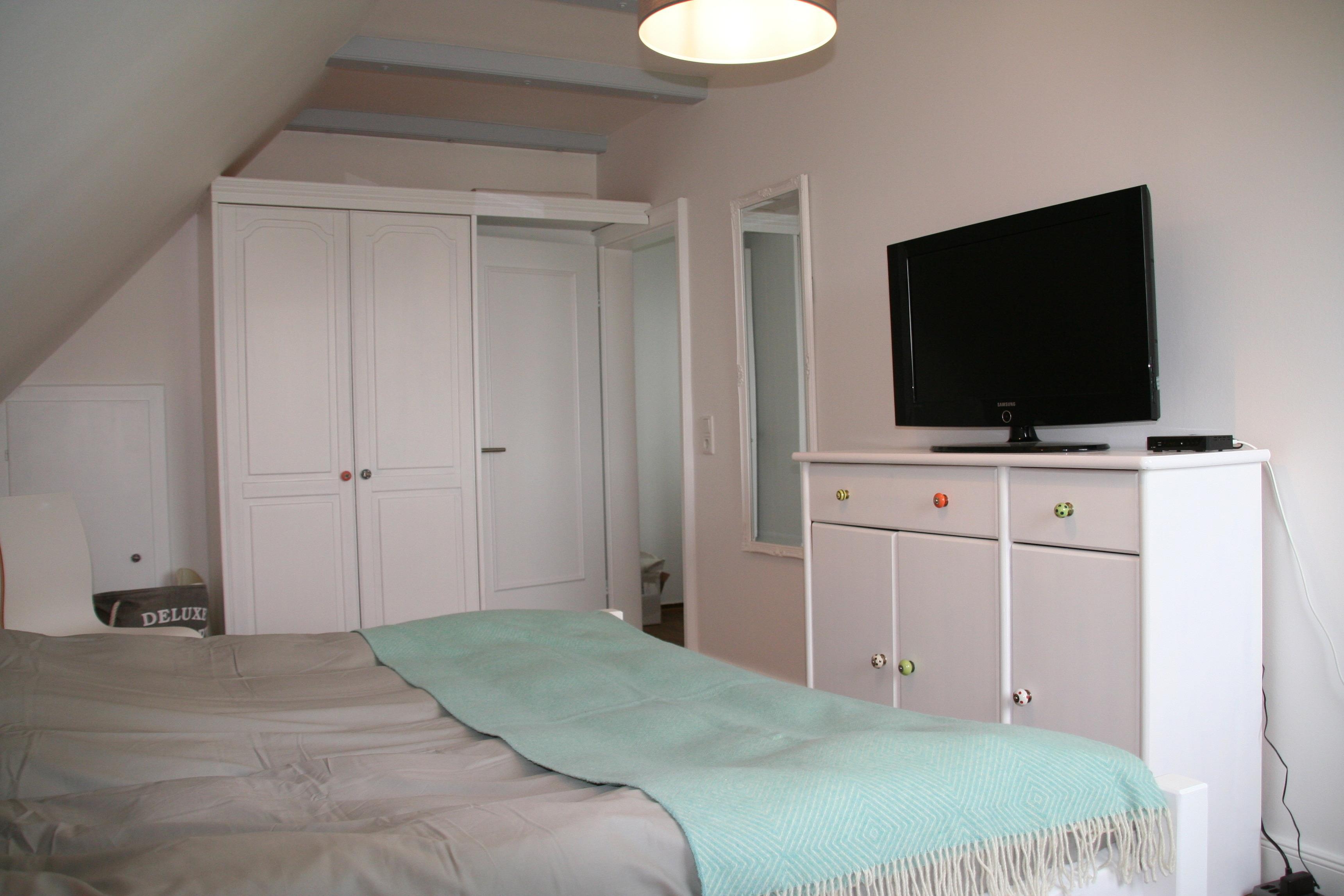 Das ruhig gelegene und von Feldern umgebene Wiesenhüs ist eine DHH, die im Jahr 2020 vollständig renoviert wurde. Das Haus erstreckt sich über zwei Etagen und bietet ausreichend Platz für bis zu vier Personen zuzüglich einer Kinderaufbettung. Im Erdgeschoss befindet sich die offene Küche. Von ihr aus gelangt man einerseits ins Duschbad, andererseits in den großzügigen Wohnbereich mit Ess- und Sitzecke. Dort befindet sich ein Flat-TV, ein Blue-ray-Player und eine Multimediaanlage. An das Wohnzimmer schließt eine Terrasse an, die bis zum späten Mittag Sonne bietet. Für den Genuss der Nachmittags- und Abendsonne steht auf der anderen Hausseite eine zweite Terrasse mit Strandkorb und Blick auf die Wrixumer Mühle zur Verfügung. Im Obergeschoss befinden sich ein weiteres WC, ein Schlafzimmer mit Doppelbett, Einbauschrank und TV sowie ein zweites Schlafzimmer mit Alkovenbetten im friesischen Stil. Hier lässt sich ein zusätzliches Bett als fünfte Schlafgelegenheit herausziehen. Ein privater PKW-Stellplatz befindet sich am Haus. Das gemütliche Wiesenhüs liegt ruhig und ist geschmackvoll, hochwertig-nordisch eingerichtet. Mit gut ausgestatteter Küche, Kaminofen, zwei Terrassen, Grillgelegenheit, eigenem Strandkorb und weitem Blick über die umliegenden Felder bietet es alles, was Sie zum Entspannen brauchen. Das Wiesenhüs liegt perfekt für alle, die einerseits die Ruhe und Idylle eines ursprünglichen friesischen Dorfes suchen, andererseits aber auf das pulsierende Strand- und Stadtleben der angrenzenden Stadt Wyk nicht verzichten möchten. Sowohl die Weiten des Marschlandes mit seinem riesigen Vogelschutzgebiet als auch die Fußgängerzone, zahlreiche Einkaufsmöglichkeiten und der Badestrand sind in wenigen Minuten erreichbar.