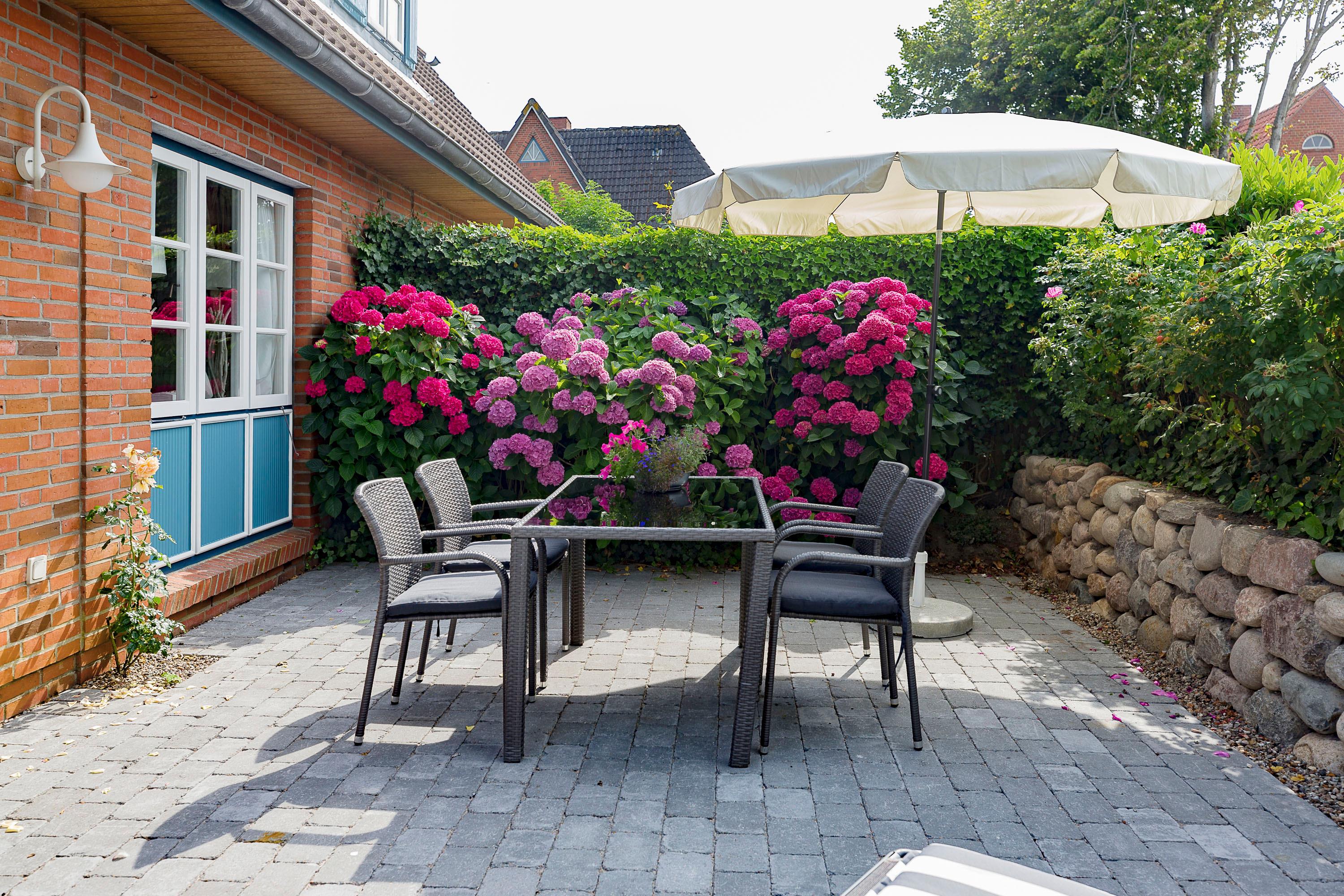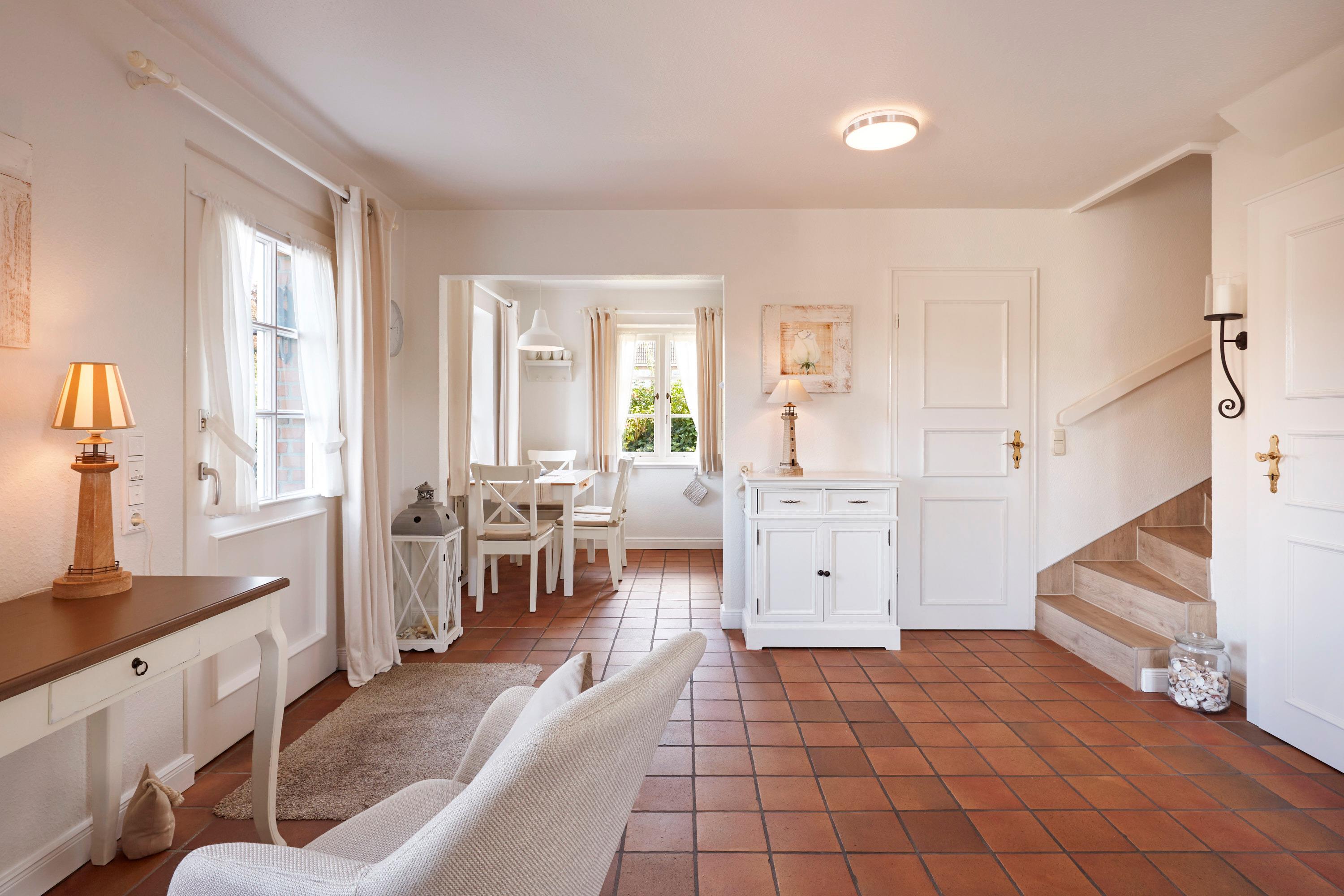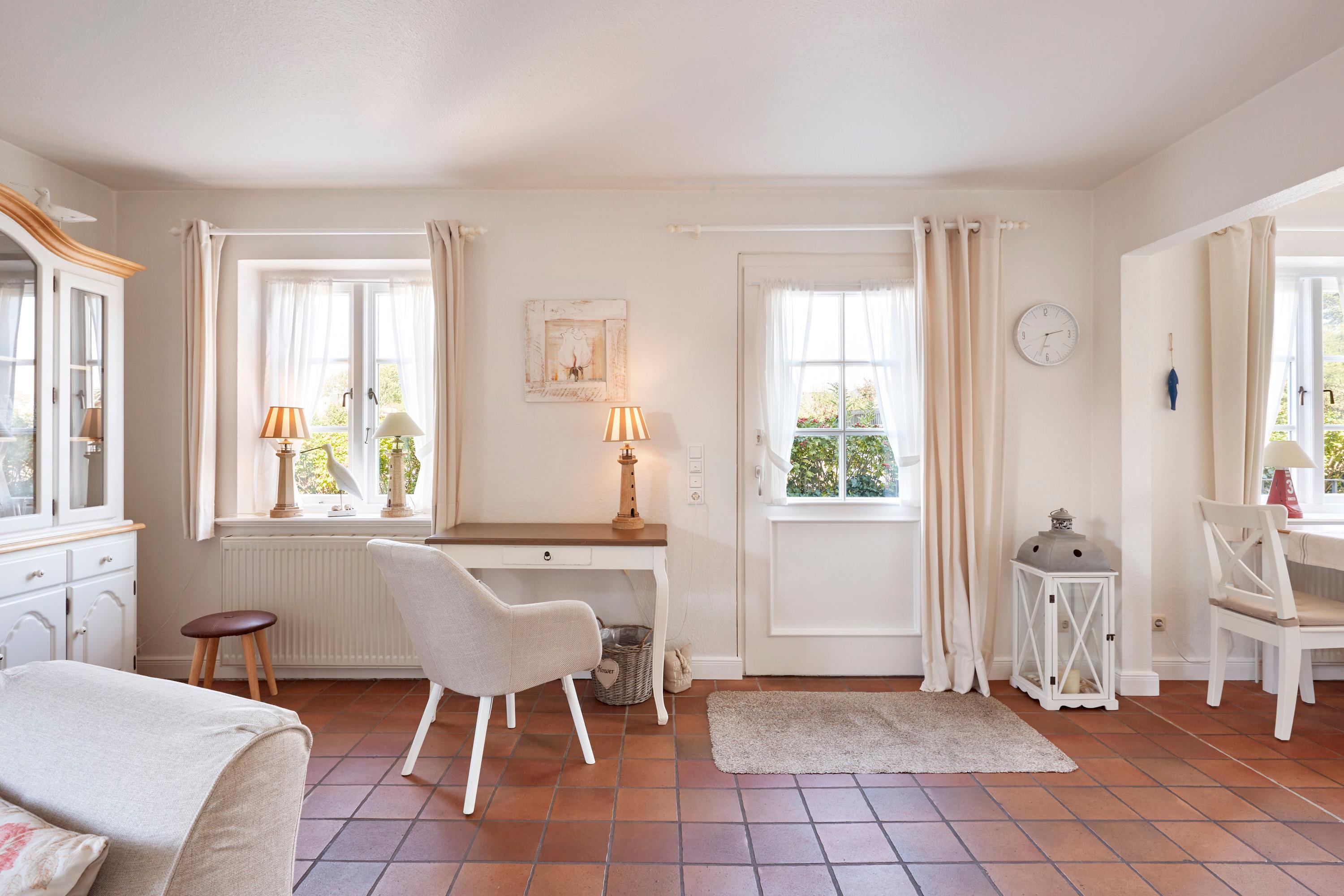 Willkommen im Rosen Huus 2. Der Duft alter friesischer Rosensorten empfängt Sie schon vor dem Haus und unterstreicht den unvergleichbaren Charme dieser Doppelhaushälfte. Die Lage in Wrixum, dem romantischen Dorf mit der Windmühle, ist ideal für Erholungsuchende. Trotzdem sind das lebhafte Städtchen Wyk, der Strand, Surfen, Tennis, Reiten und der traumhafte Golfplatz ganz in der Nähe. Diese Lage macht das Wohnen in ländlicher Umgebung so reizvoll. Sie werden sich in dieses Haus verlieben.