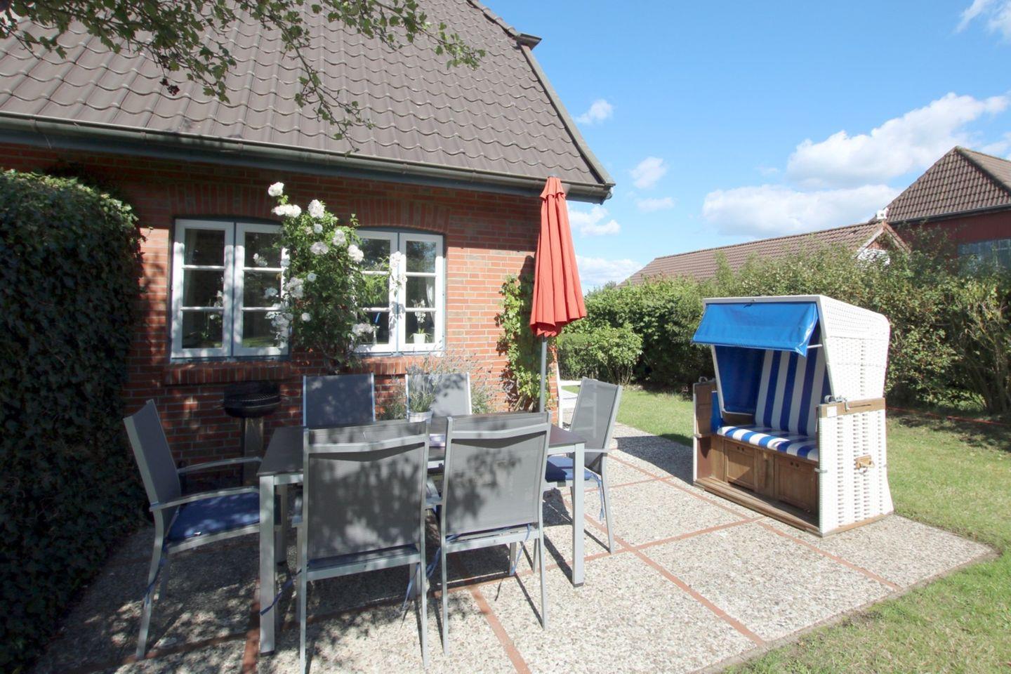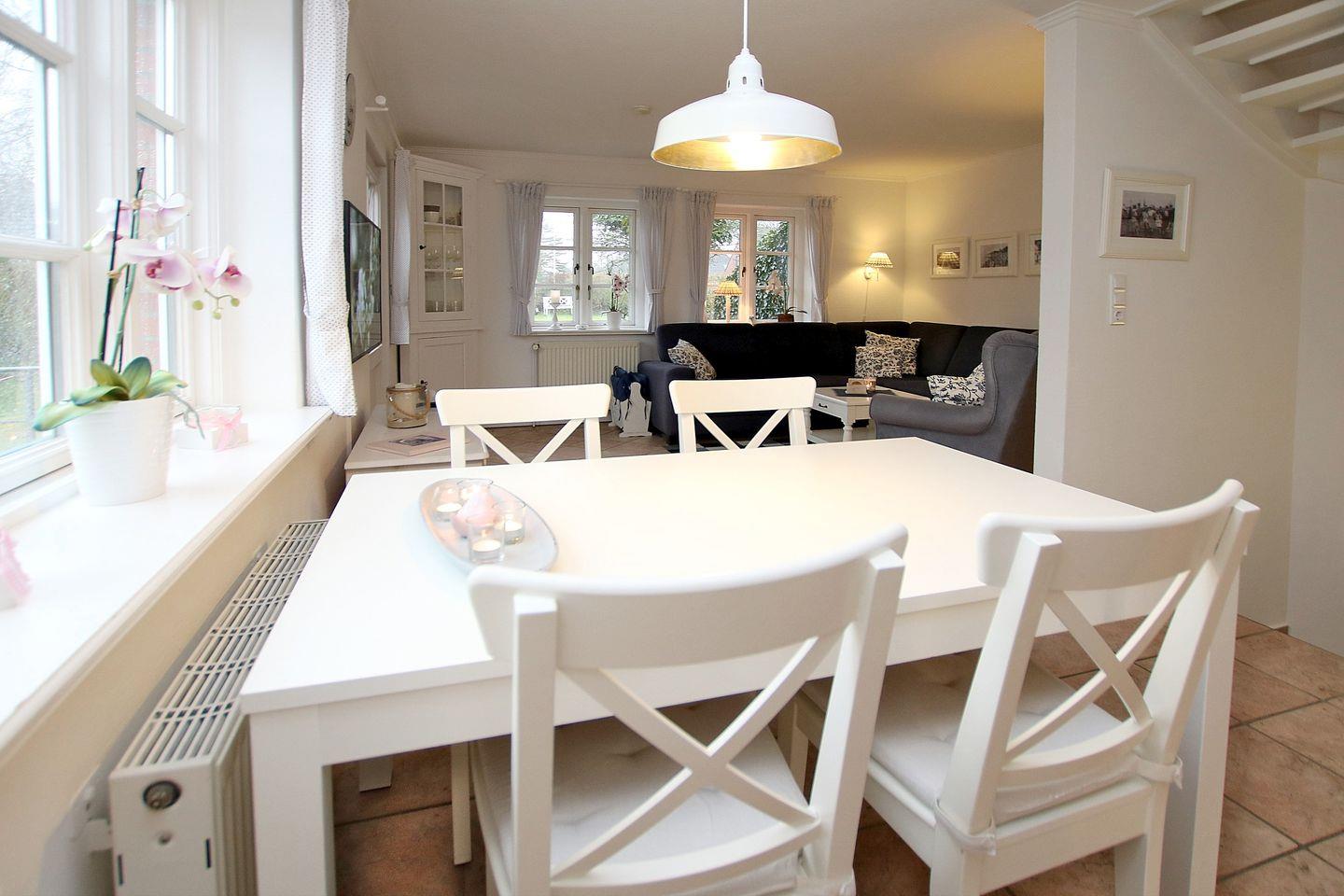 Gemütliche 3-Zimmer-Reihenhausscheibe in Wrixum mit Kamin, Sauna und Garten, ideal für entspannte Ferien auf Föhr.