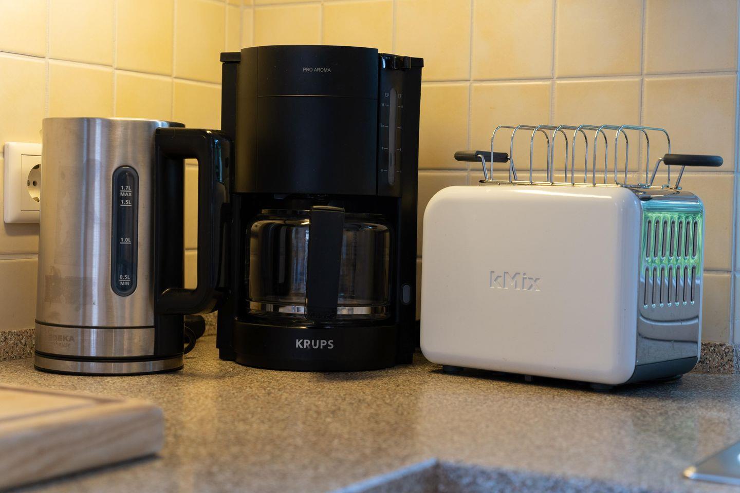 Im Erdgeschoss befinden sich der großzügige Wohn- und Essbereich mit offener Küche mit großen Kühlschrank und Gefriermöglichkeiten, ein Duschbad sowie ein Hauswirtschaftsraum mit Waschmaschine und Trockner und zusätzlich noch eine Kühl- und Gefriermöglichkeit. Über den Wohnbereich gelangen Sie auf die eigene Terrasse und in den Garten. Der Kaminofen im Wohnbereich sorgt an kühleren Tagen für eine angenehme Atmosphäre.