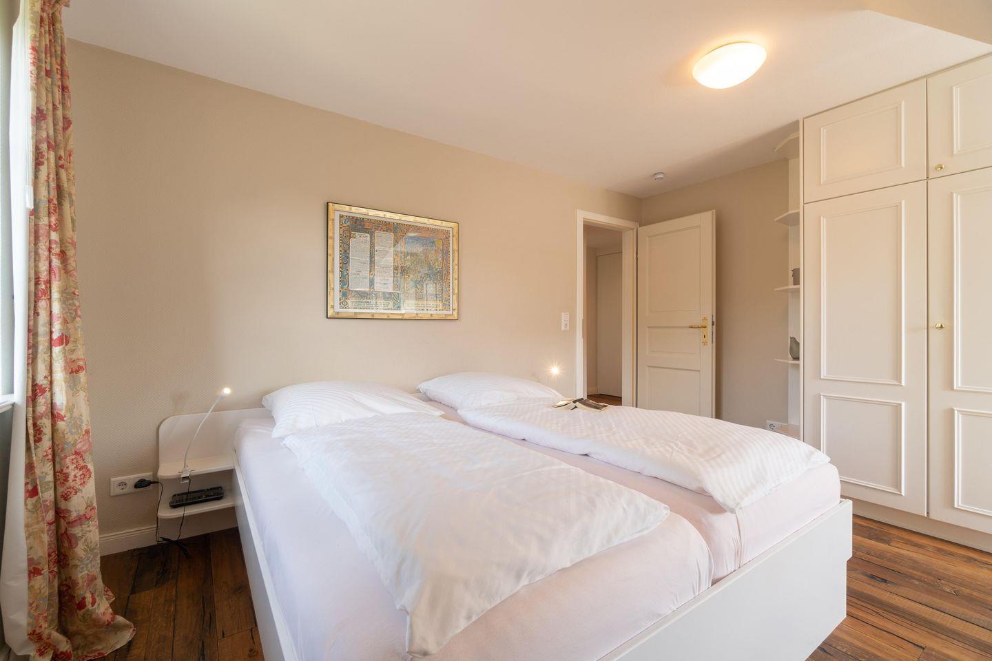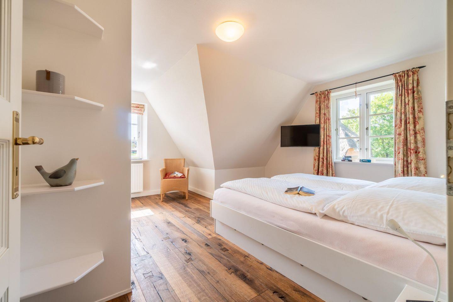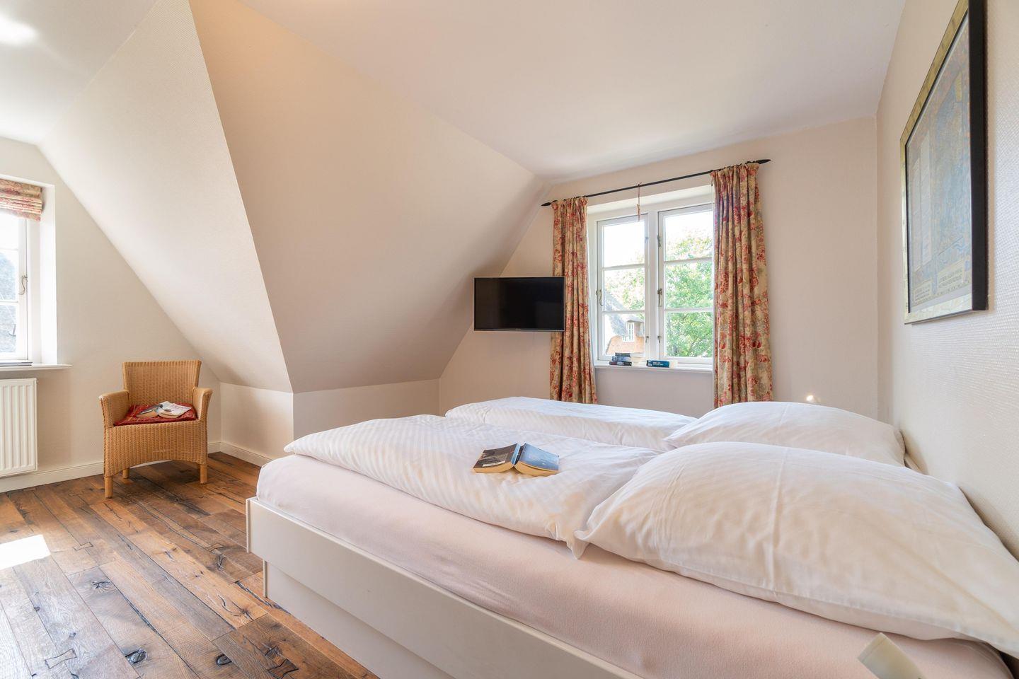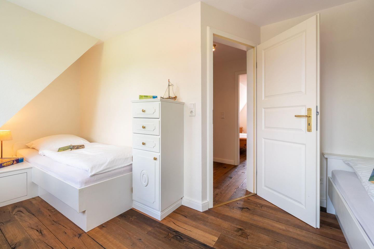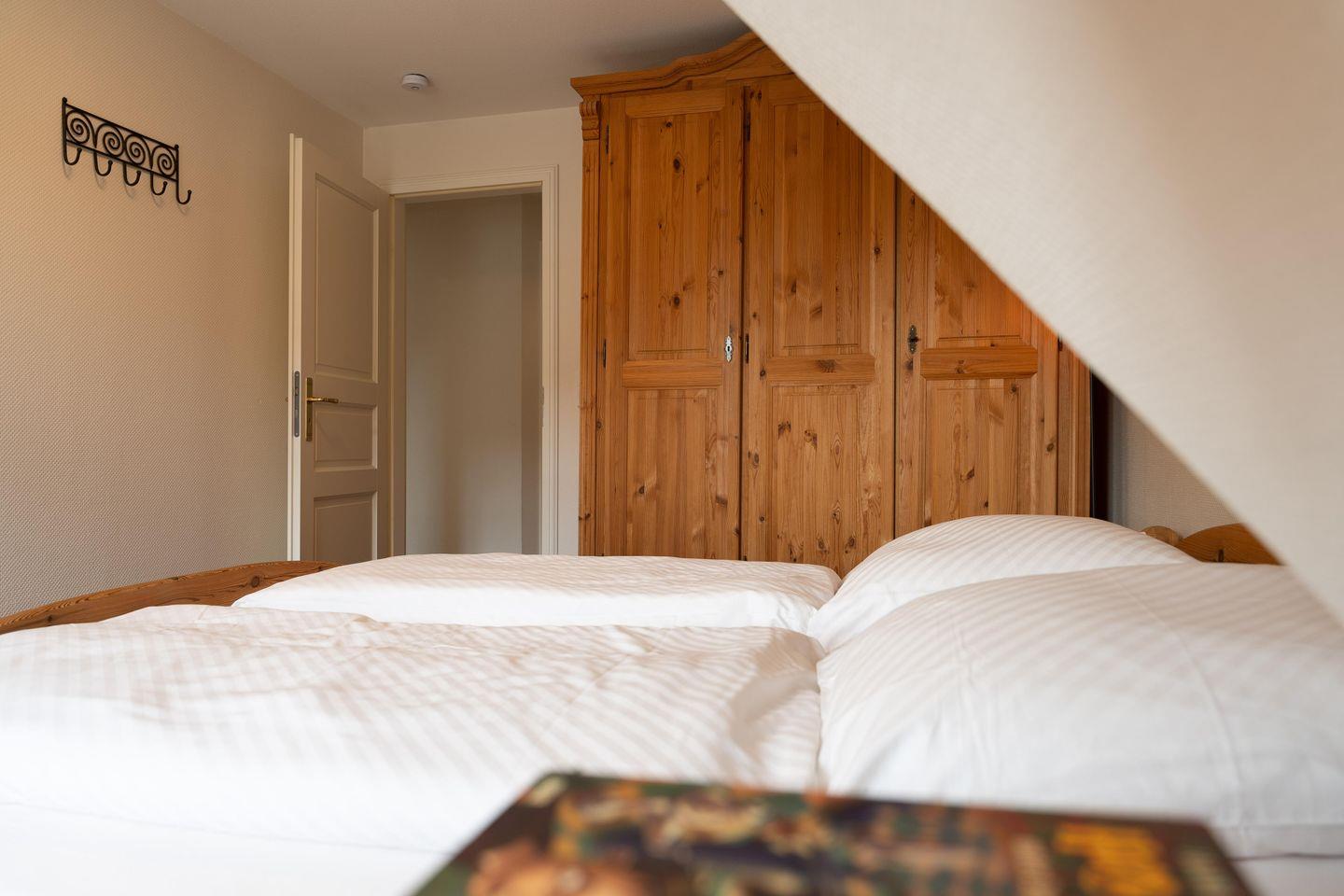 Im Obergeschoss sind die drei Schlafzimmer sowie ein Vollbad mit Wanne und Dusche gelegen. Zwei Schlafzimmer verfügen über je ein Doppelbett, da dritte Schlafzimmer über zwei Einzelbetten.