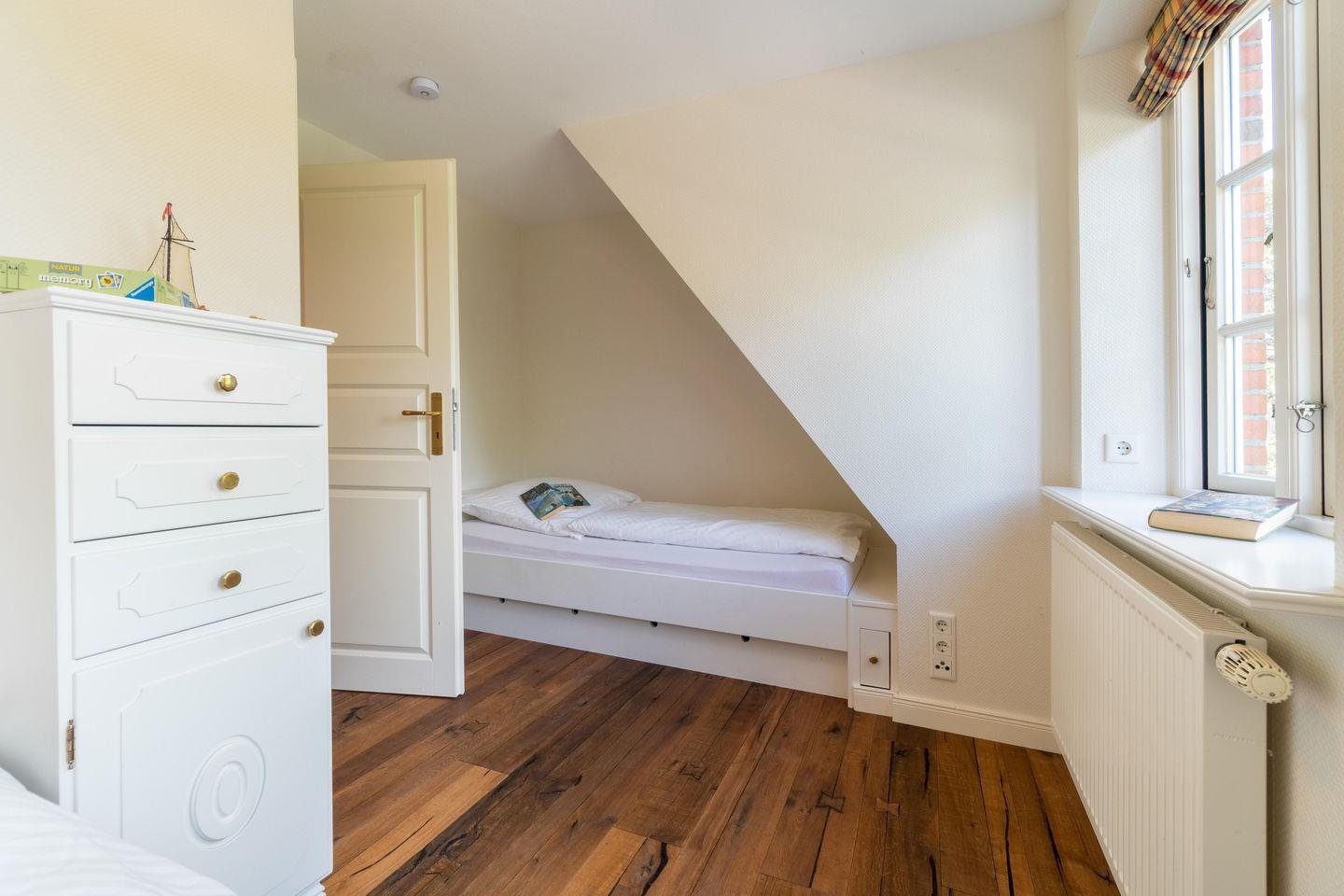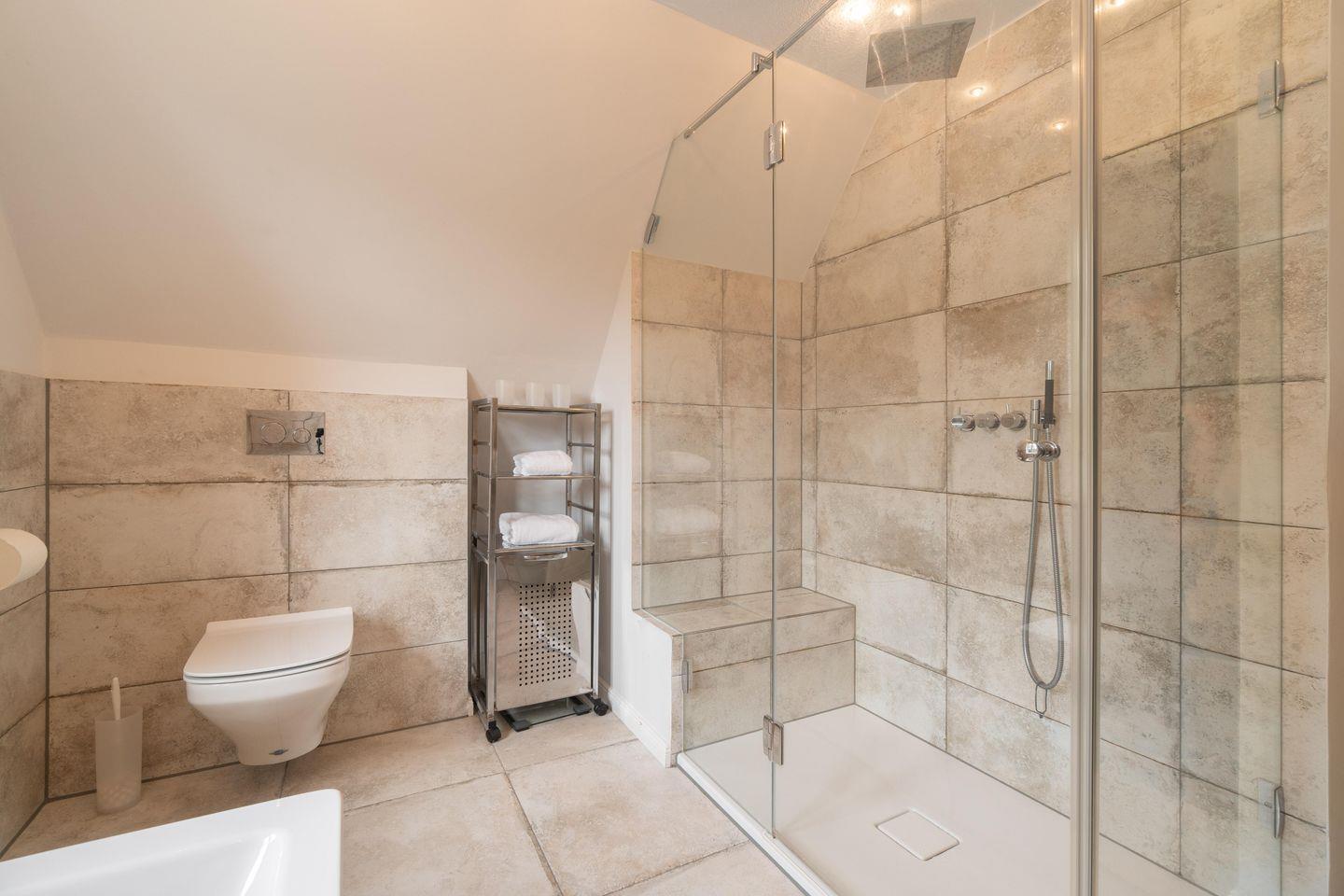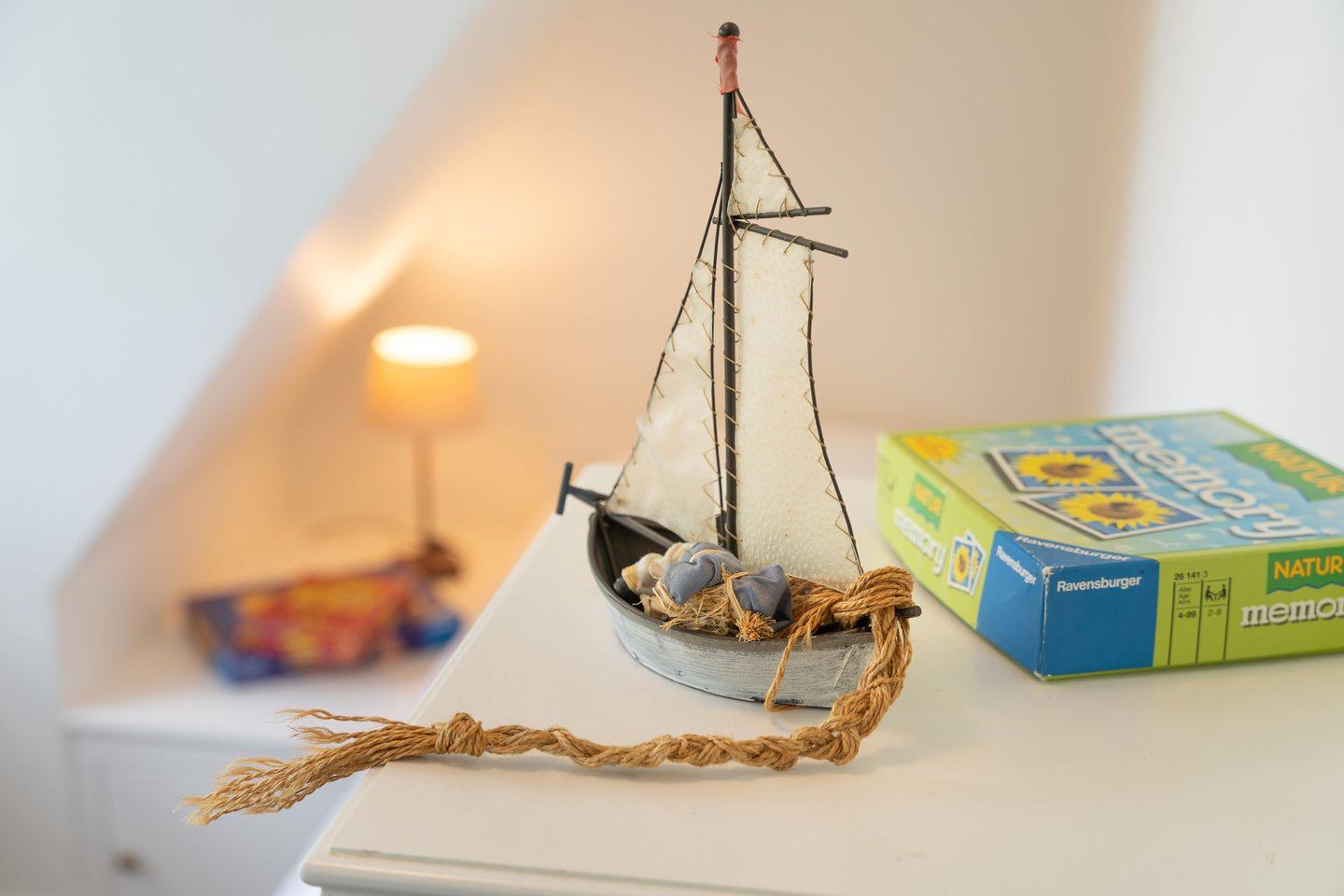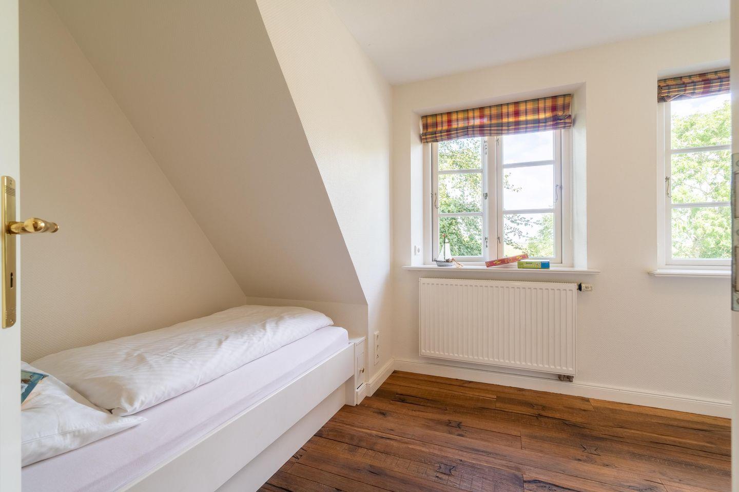Im Obergeschoss sind die drei Schlafzimmer sowie ein Vollbad mit Wanne und Dusche gelegen. Zwei Schlafzimmer verfügen über je ein Doppelbett, da dritte Schlafzimmer über zwei Einzelbetten.