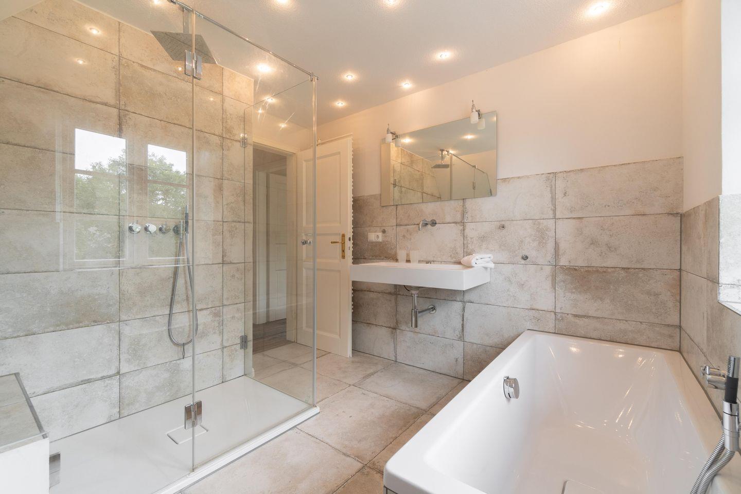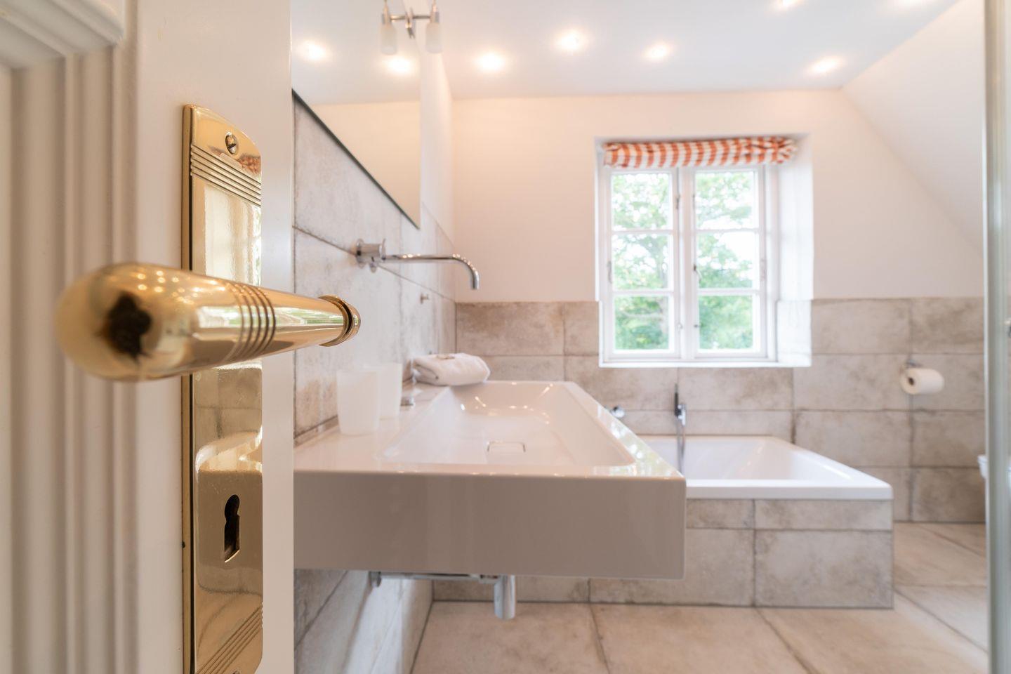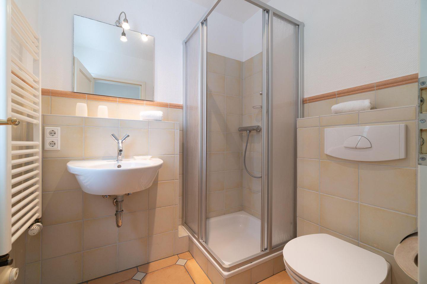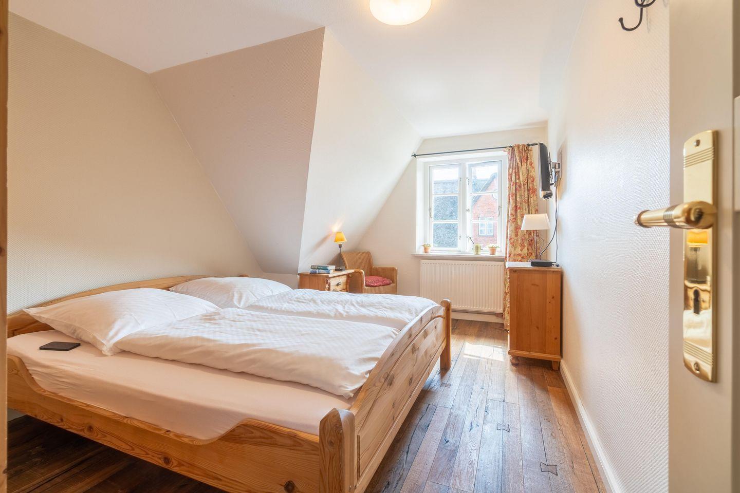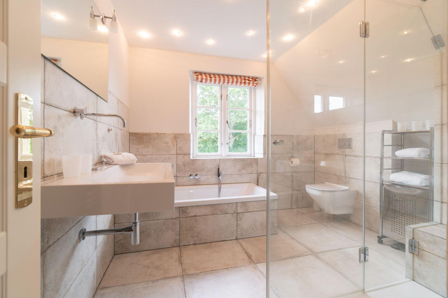 Im Obergeschoss sind die drei Schlafzimmer sowie ein Vollbad mit Wanne und Dusche gelegen. Zwei Schlafzimmer verfügen über je ein Doppelbett, da dritte Schlafzimmer über zwei Einzelbetten.