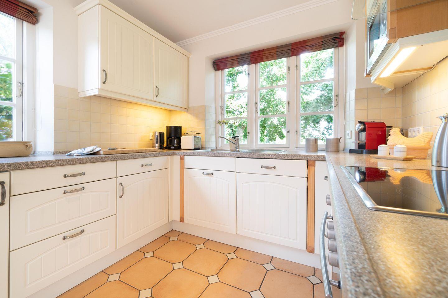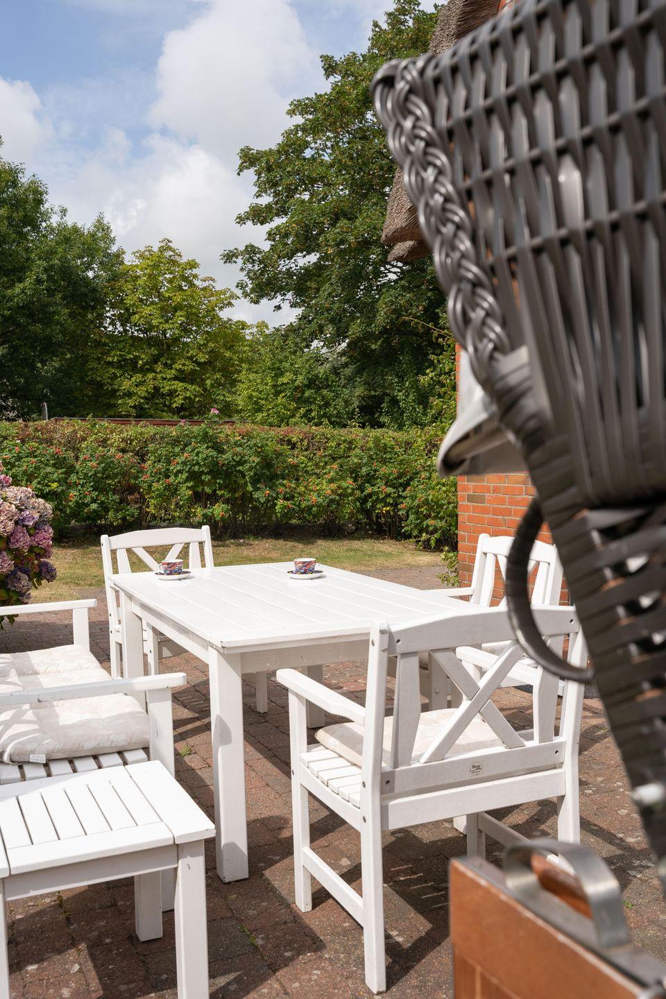 Doppelhaushälfte unter Reet mit Kaminofen sowie Terrasse mit Strandkorb im eigenen Garten.