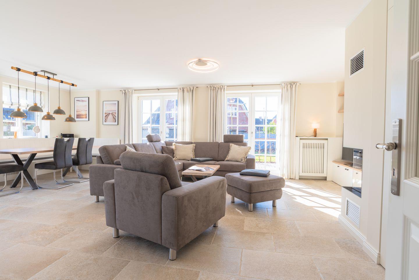 Komfortable, reetgedeckte Ferienhaushälfte mit Sauna, Kamin und Terrasse in Wrixum für erholsame Tage.