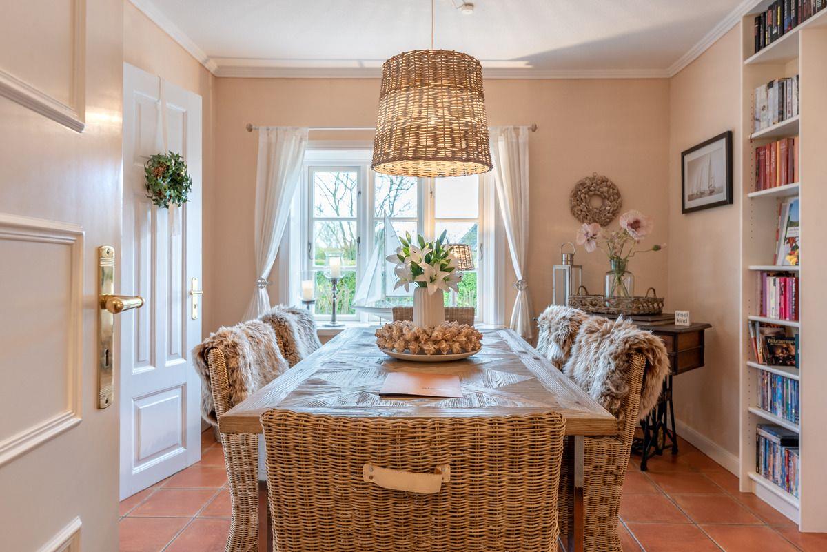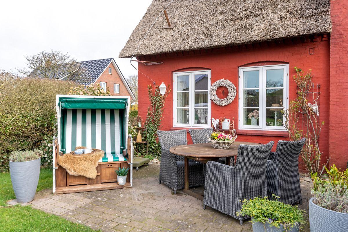 Genießen Sie einen exklusiven Urlaub unter Reet, der zahlreiche kostenlose Annehmlichkeiten bietet, darunter: eine voll ausgestattete Küche, einen Strandkorb direkt am Objekt und einem Strandkorb am Hundestrand in Wyk.