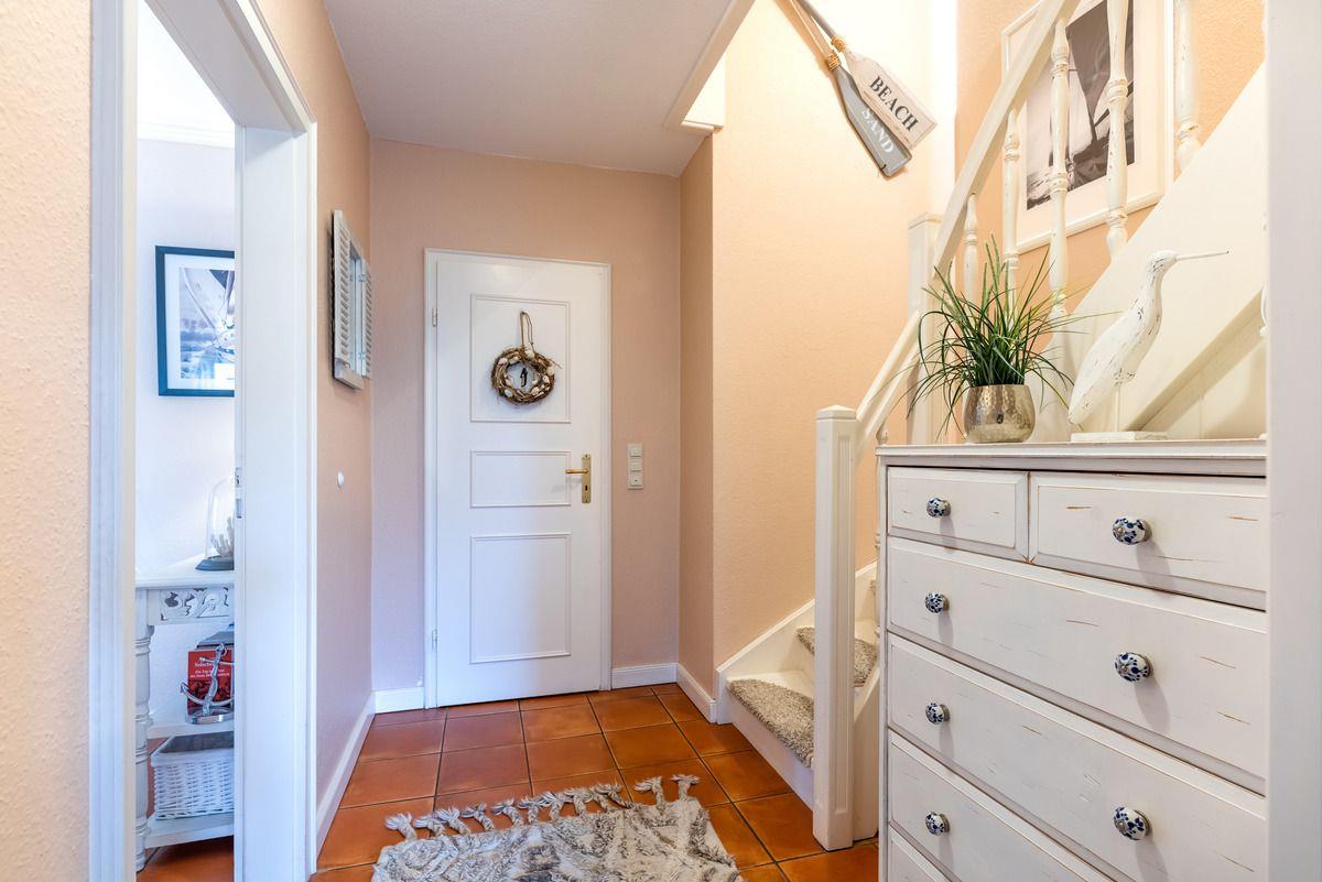 Drei liebevoll gestaltete Schlafzimmer im Obergeschoss sorgen für erholsamen Schlaf. Sie sind mit Verdunklungsplissees ausgestattet. Das Duschbad verfügt über eine Dusch-Badewanne.