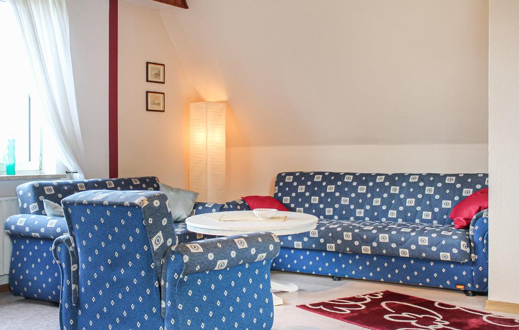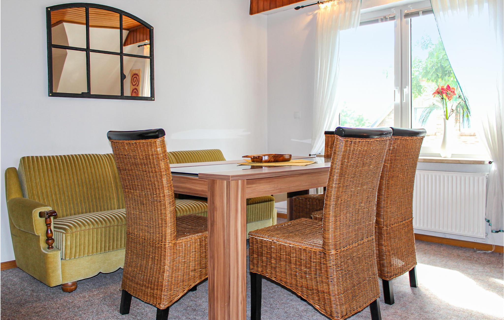 Die Ferienwohnung befindet sich im Obergeschoss eines Zweifamilienhauses. Sie erwarten zwei Schlafzimmer mit je einem Doppelbett sowie ein Duschbad. Auf dem Flur finden Sie eine Sitzgelegenheit. Die große, gut ausgestattete Küche mit Essplatz lädt zum entspannten Kochen ein. Darüber hinaus gibt es ein geräumiges Wohnzimmer, an dem Sie einen großen Esstisch finden und eine Sofaecke.