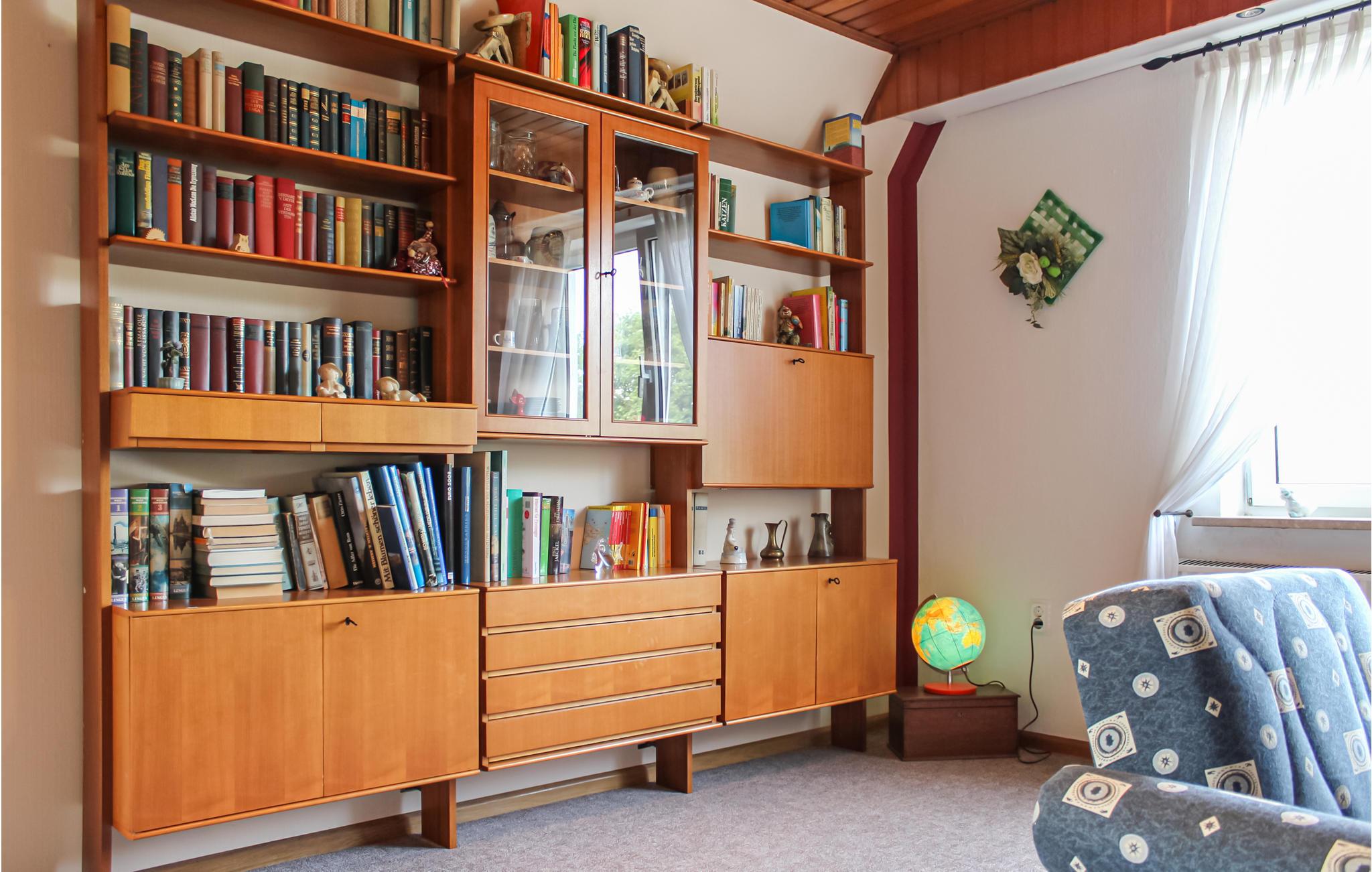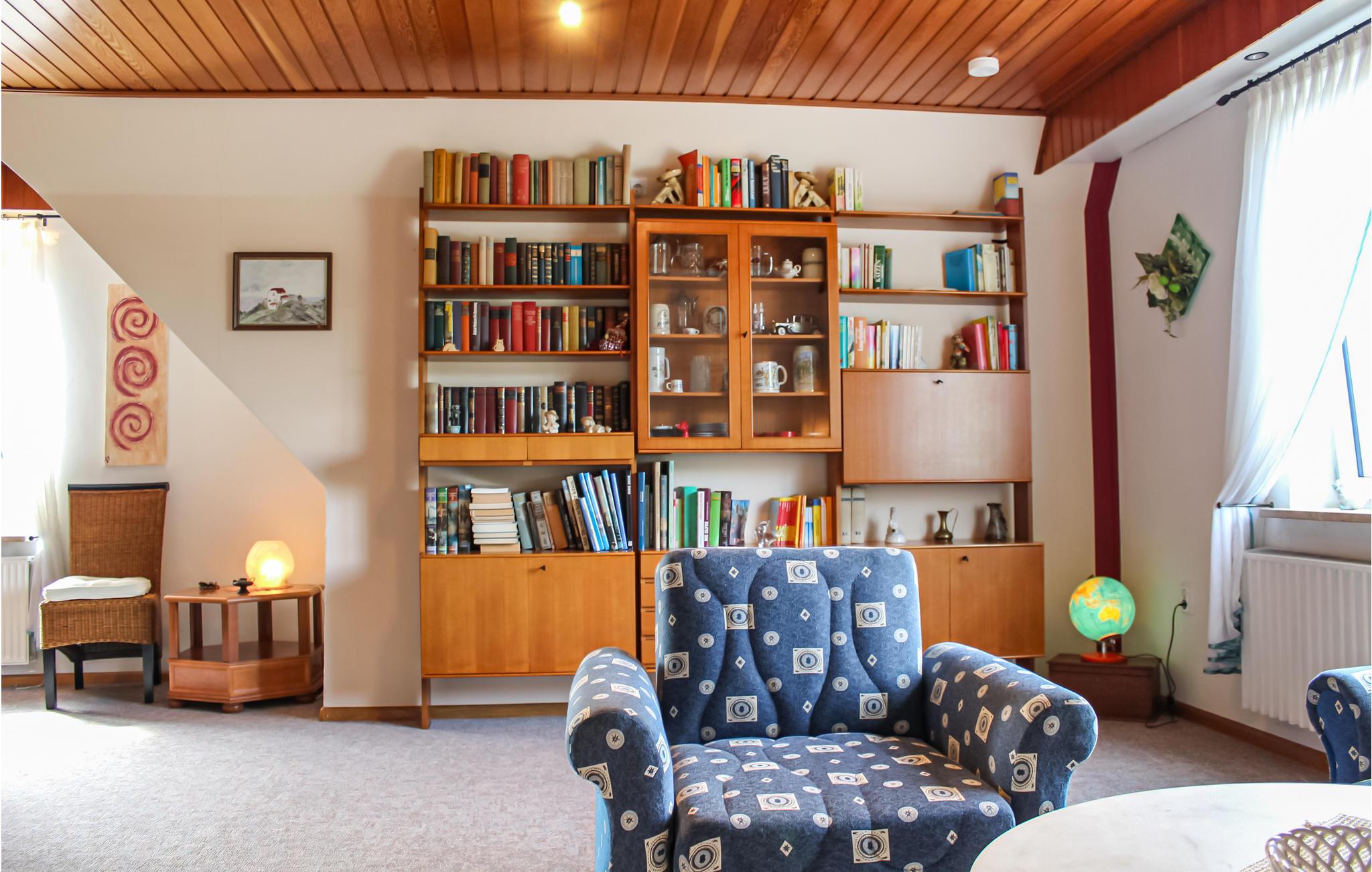 In der Wohnung gibt es viele liebevolle Details – die Bilder an der Wand sind zum Beispiel alle von der Eigentümerin, die im Erdgeschoss wohnt, selbst gemalt. Leseratten finden hier auch eine große Auswahl an Büchern vor, die zum Schmökern einladen.