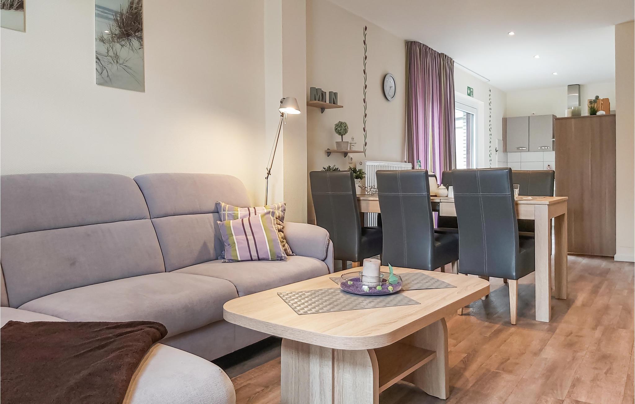 Im Obergeschoss befinden sich drei weitere Schlafzimmer und ein Duschbad mit Wickeltisch. Das Herz des Hauses ist das gemütliche Wohnzimmer mit Sofa, Essbereich und der angrenzenden Küche, wo Sie zusammen entspannte Abende vor dem Fernseher oder bei einem leckeren Abendessen verbringen können. Auf der überdachten Terrasse mit Gartenmöbeln und Grill lässt es sich bei jedem Wetter gut aushalten und die frische Luft genießen.