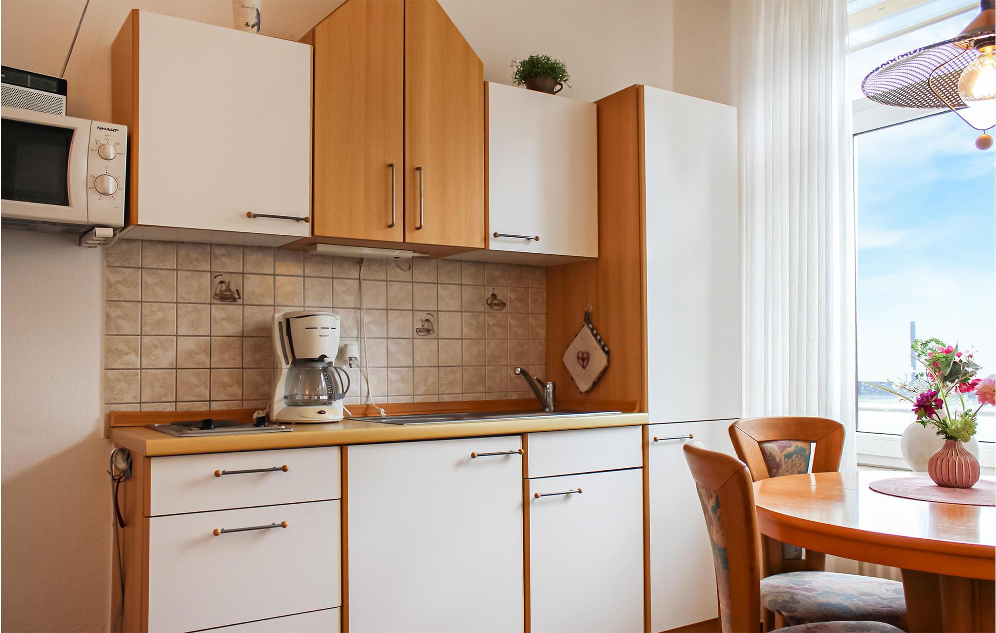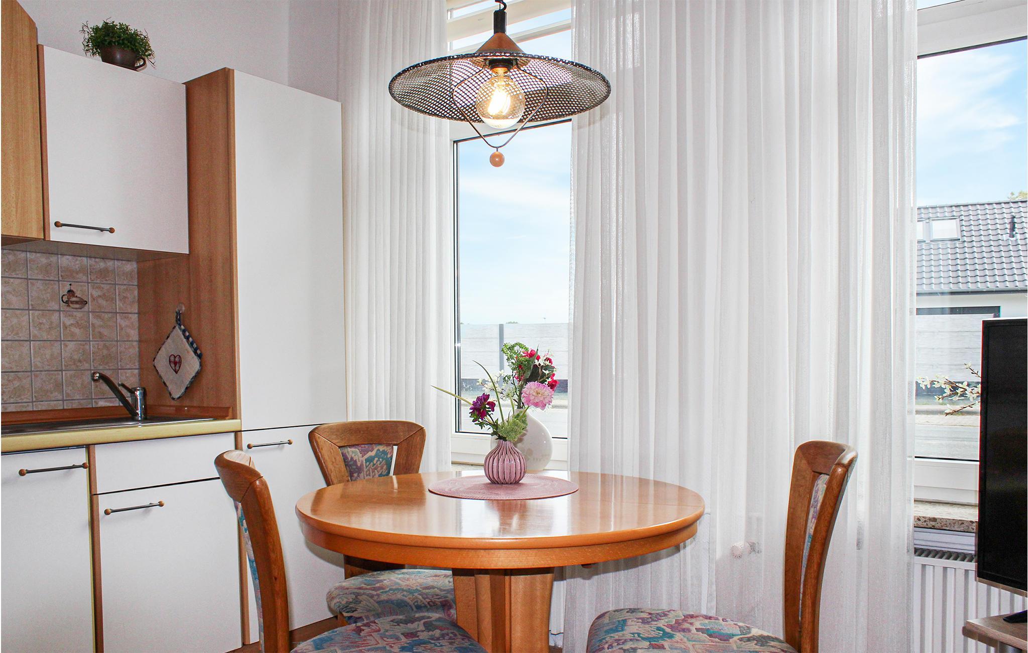Willkommen in dieser Ferienwohnung, die ideal für ein Paar ist, das einen entspannten Urlaub an der Nordsee verbringen möchte. Die Wohnfläche der einladenden Unterkunft verteilt sich auf einen Wohnraum mit Küche, ein Schlafzimmer mit Doppelbett und ein Badezimmer mit Dusche.
