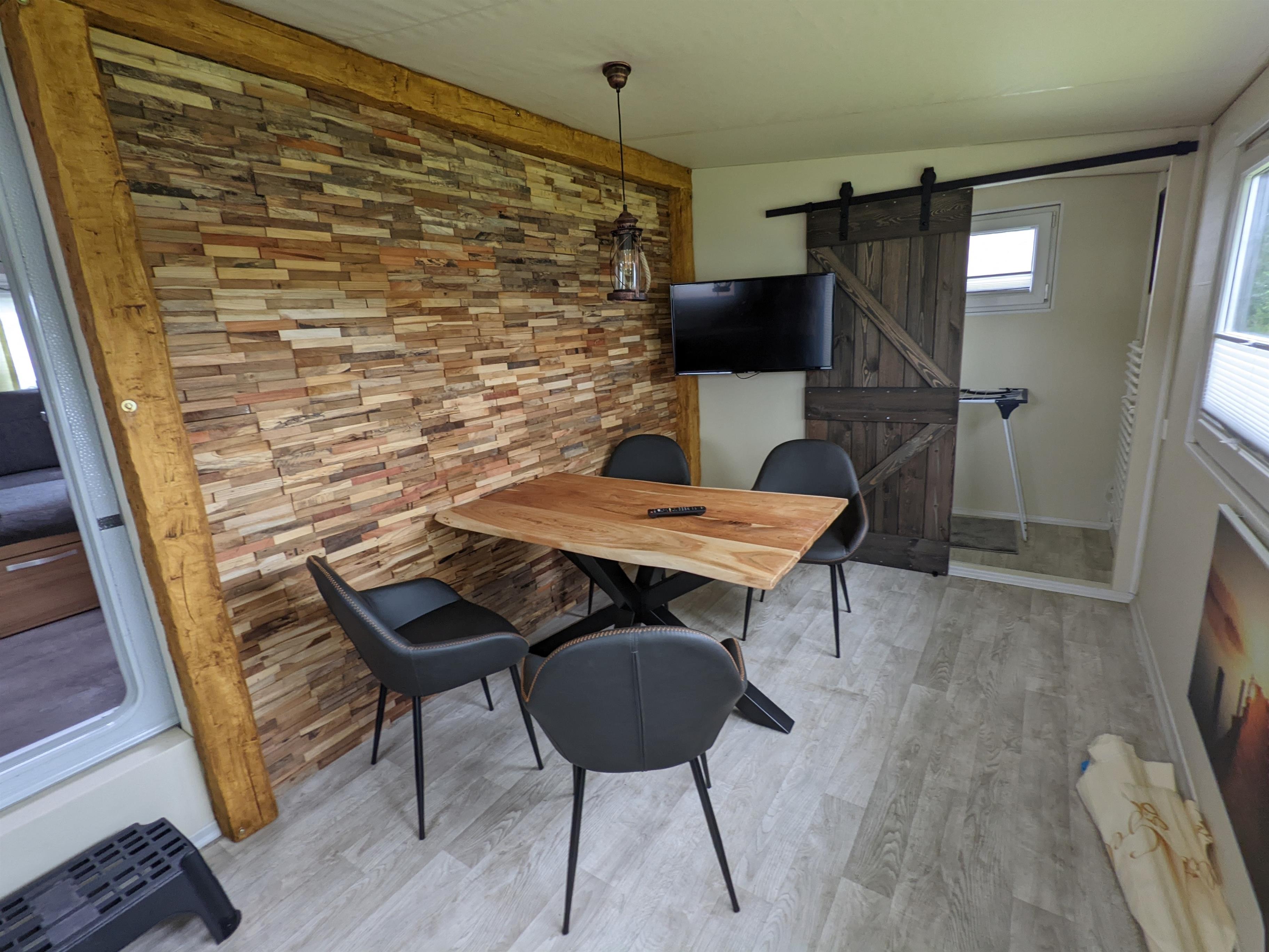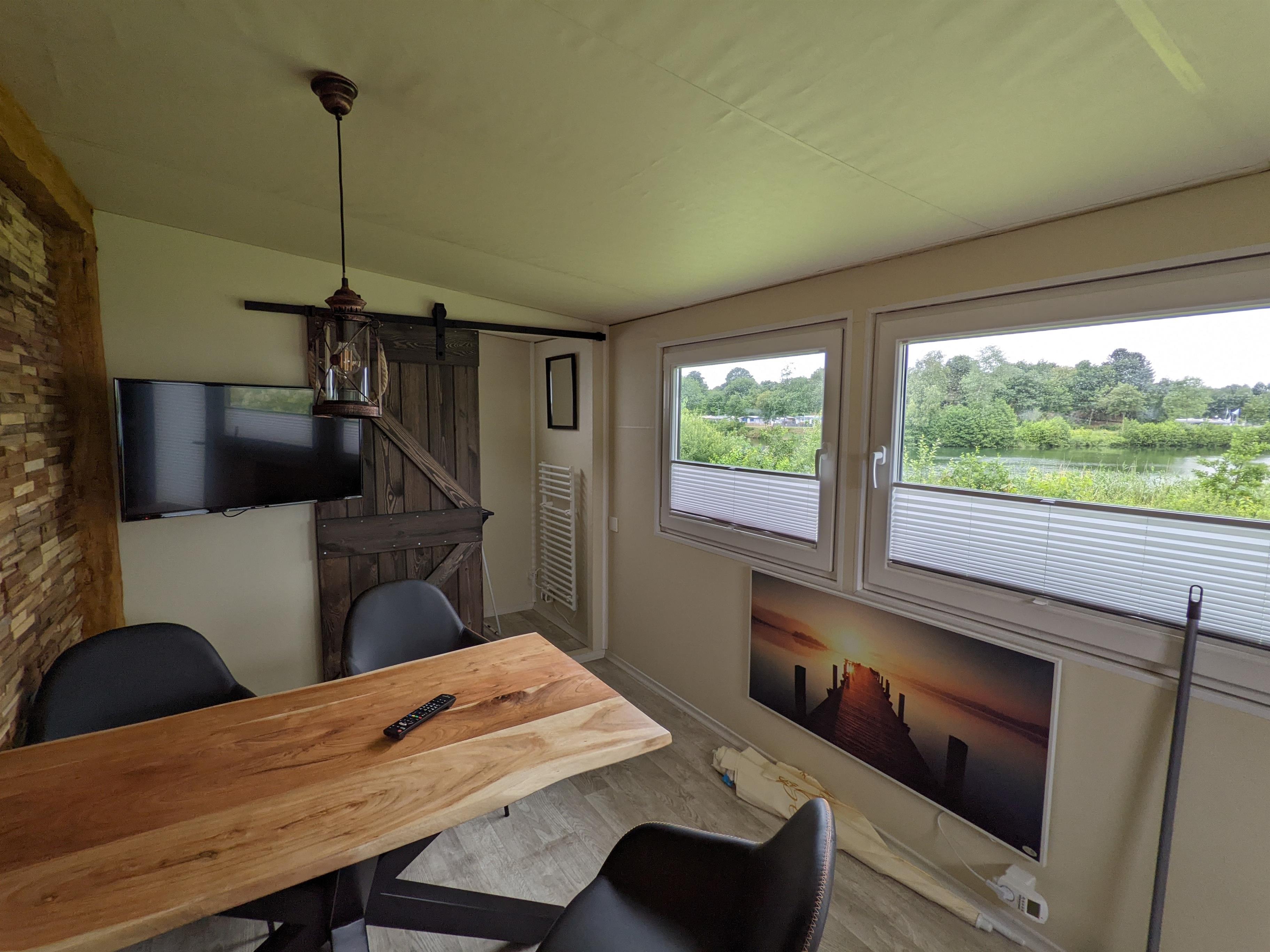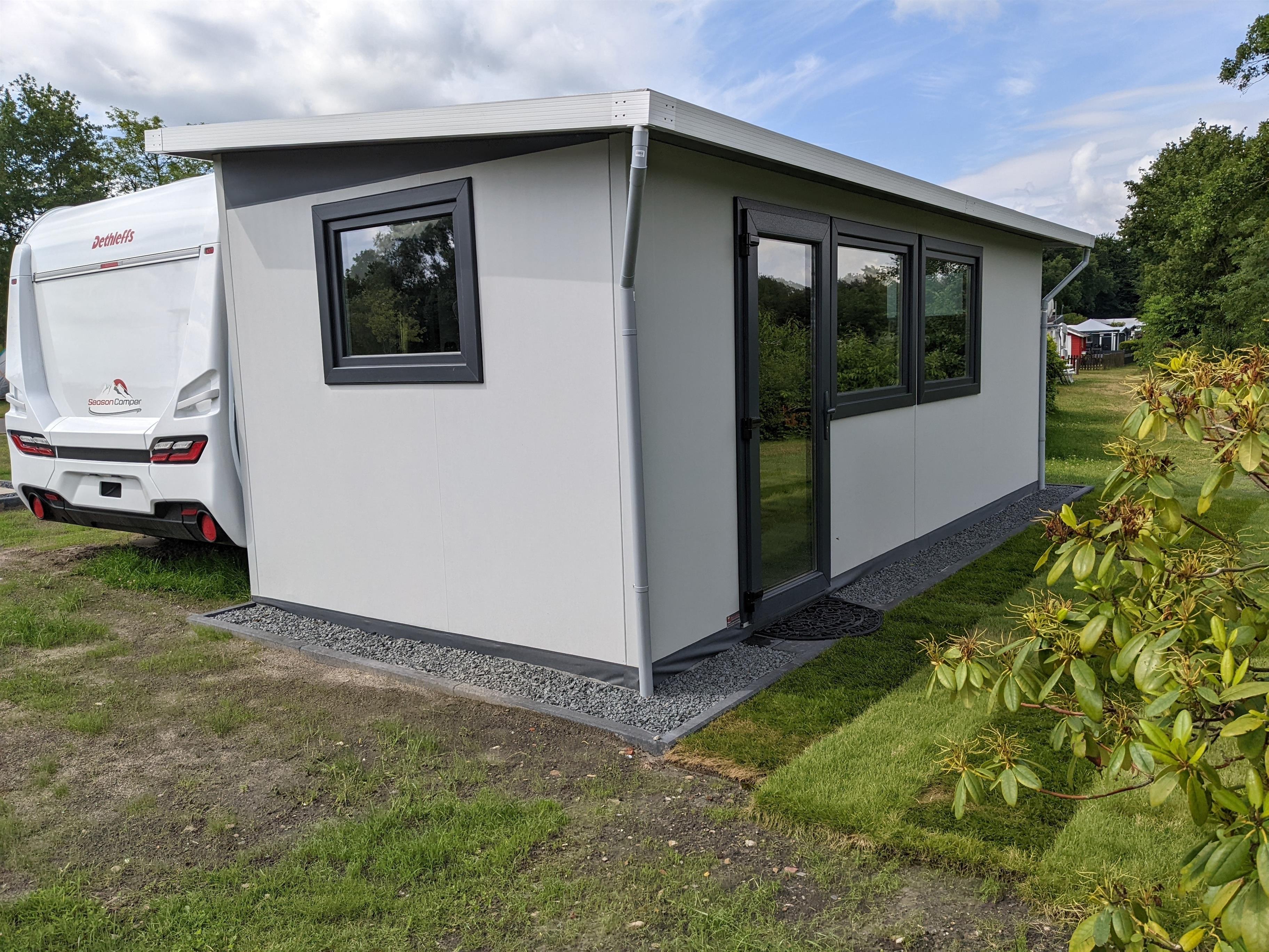 Unsere Premiumwohnwagen sind mit einer Dusche und einer festen Toilette ausgestattet - mit direktem Anschluss an die Kanalisation. Dadurch muss nichts entleert werden. Er befindet sich direkt am See.