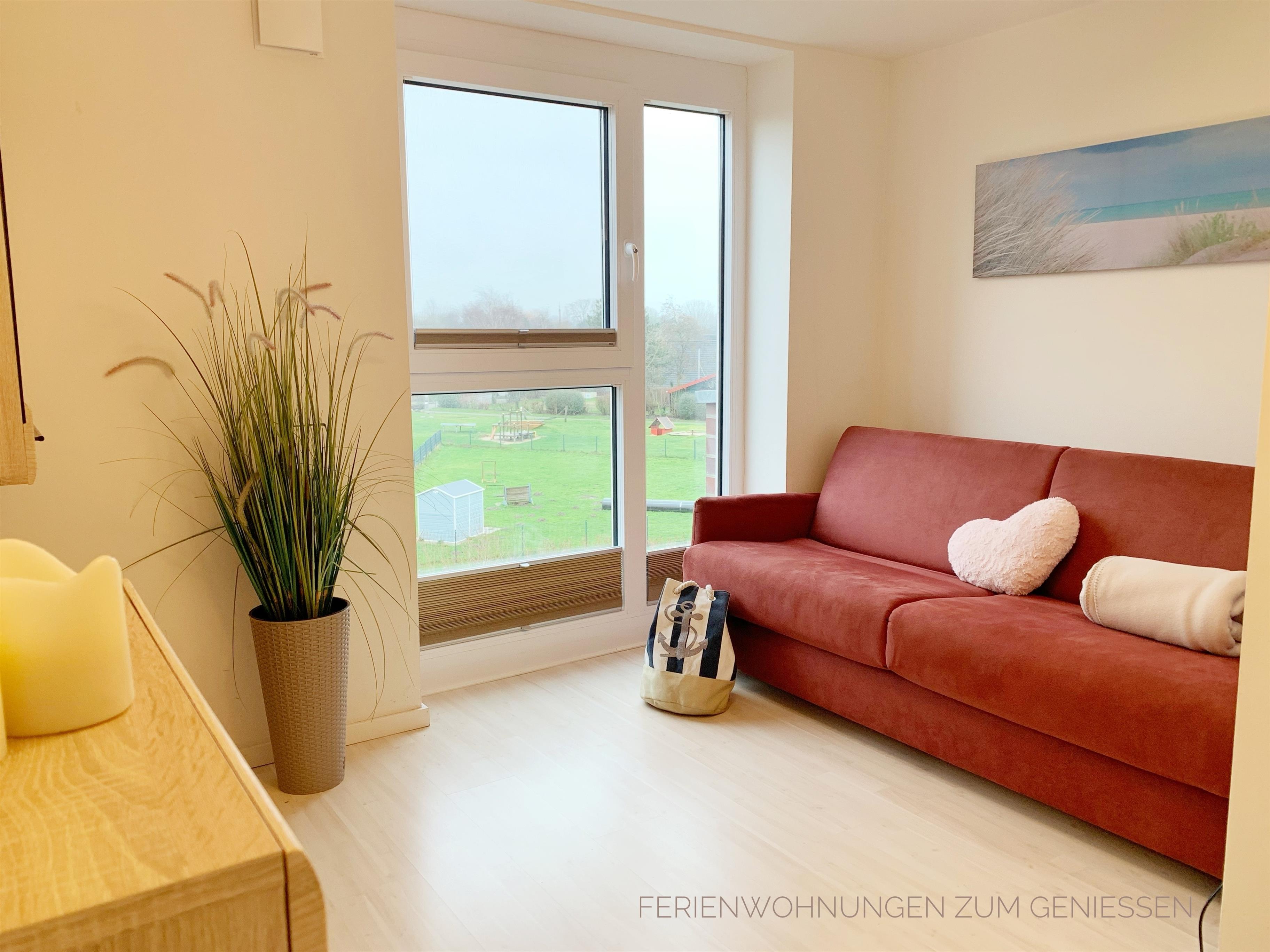 Exklusive Ferienwohnung DE LARK mit Meerblick, Dachstudio und eigenem Strandkorb an der Wurster Nordseeküste.