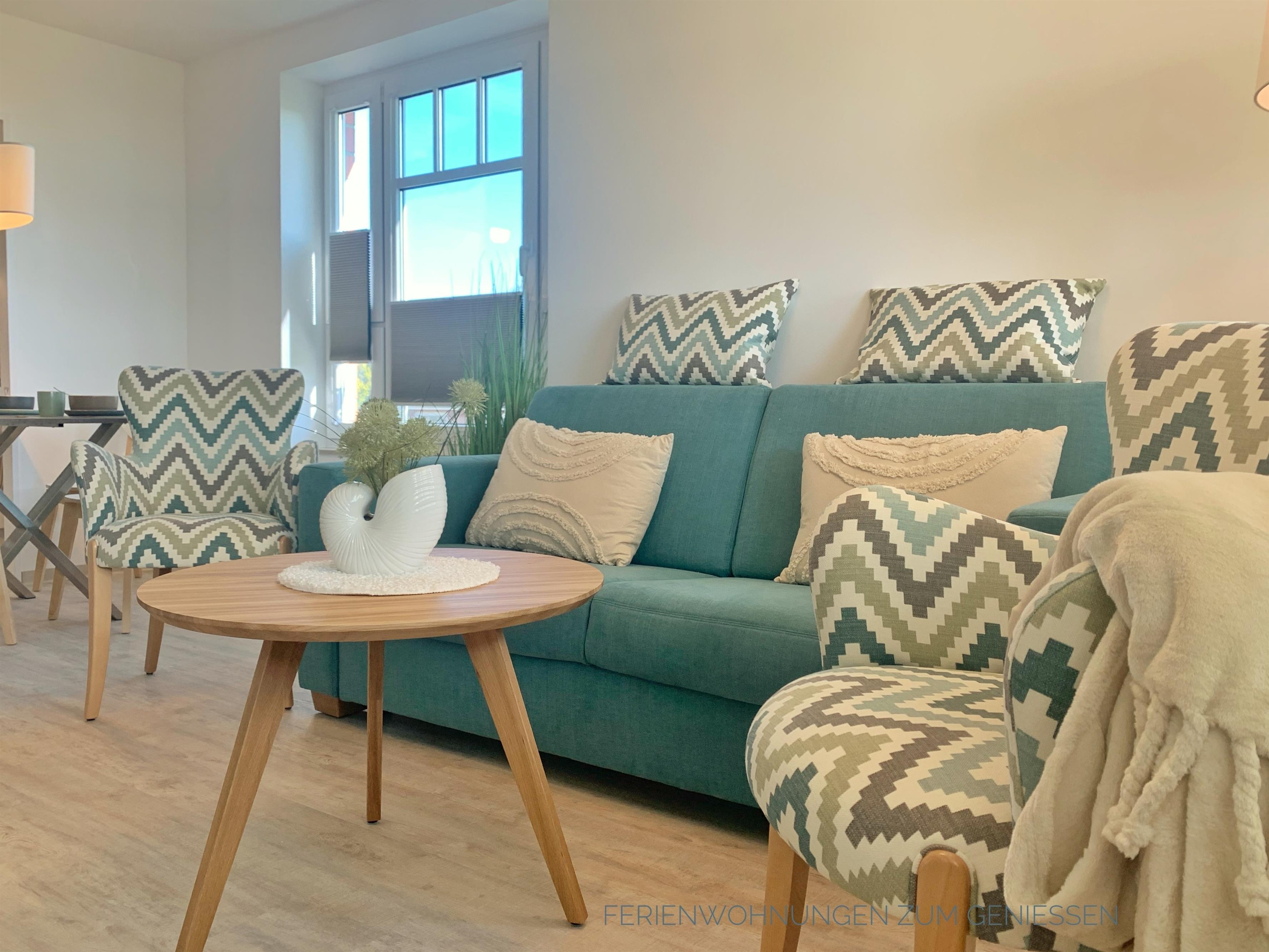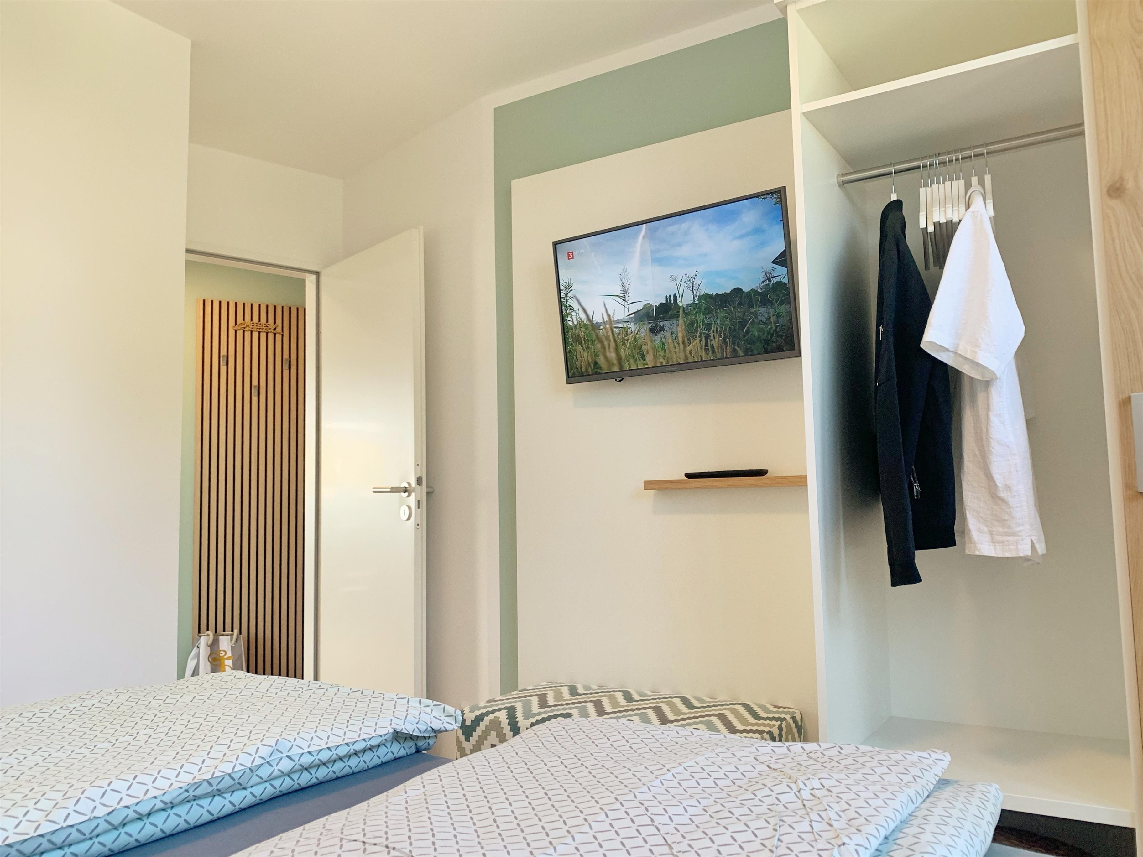 Die exklusive Einrichtung ist mit dem Hochwertigsten ausgestattet. Zum Schlafen steht ein Doppelbett 180 x 200 und im Nebenzimmer 90x200 zur Verfügung. Beide Schlafräume sind zusätzlich mit einem Fernseher (Streaming erlaubt) ausgestattet. Im Wohnbereich steht ein Funktionssofa