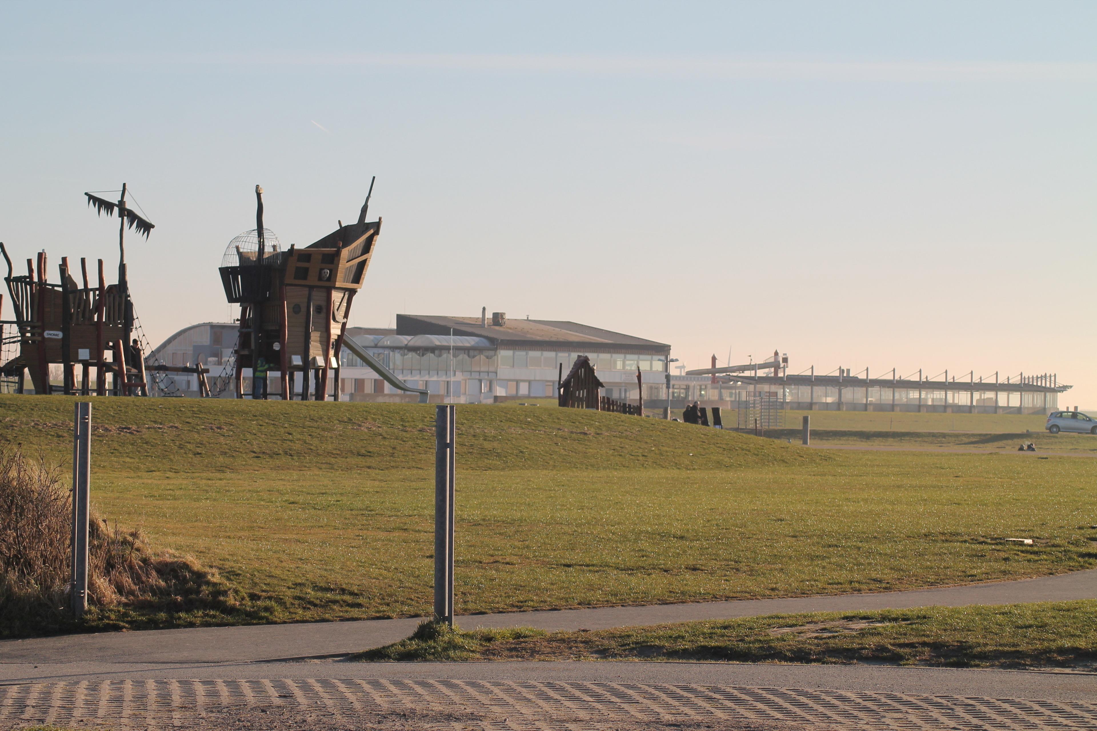 Im Schwefelsole-Wellenfreibad direkt am Grünstrand mit 2 Wasserrutschen und überdachtem Kleinkinderbecken und Wellness-Bad kann auch gebadet werden, wenn die Nordsee Ebbe hat.