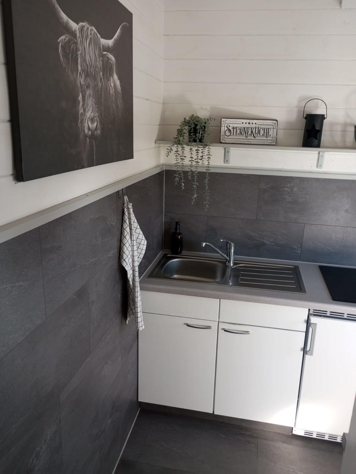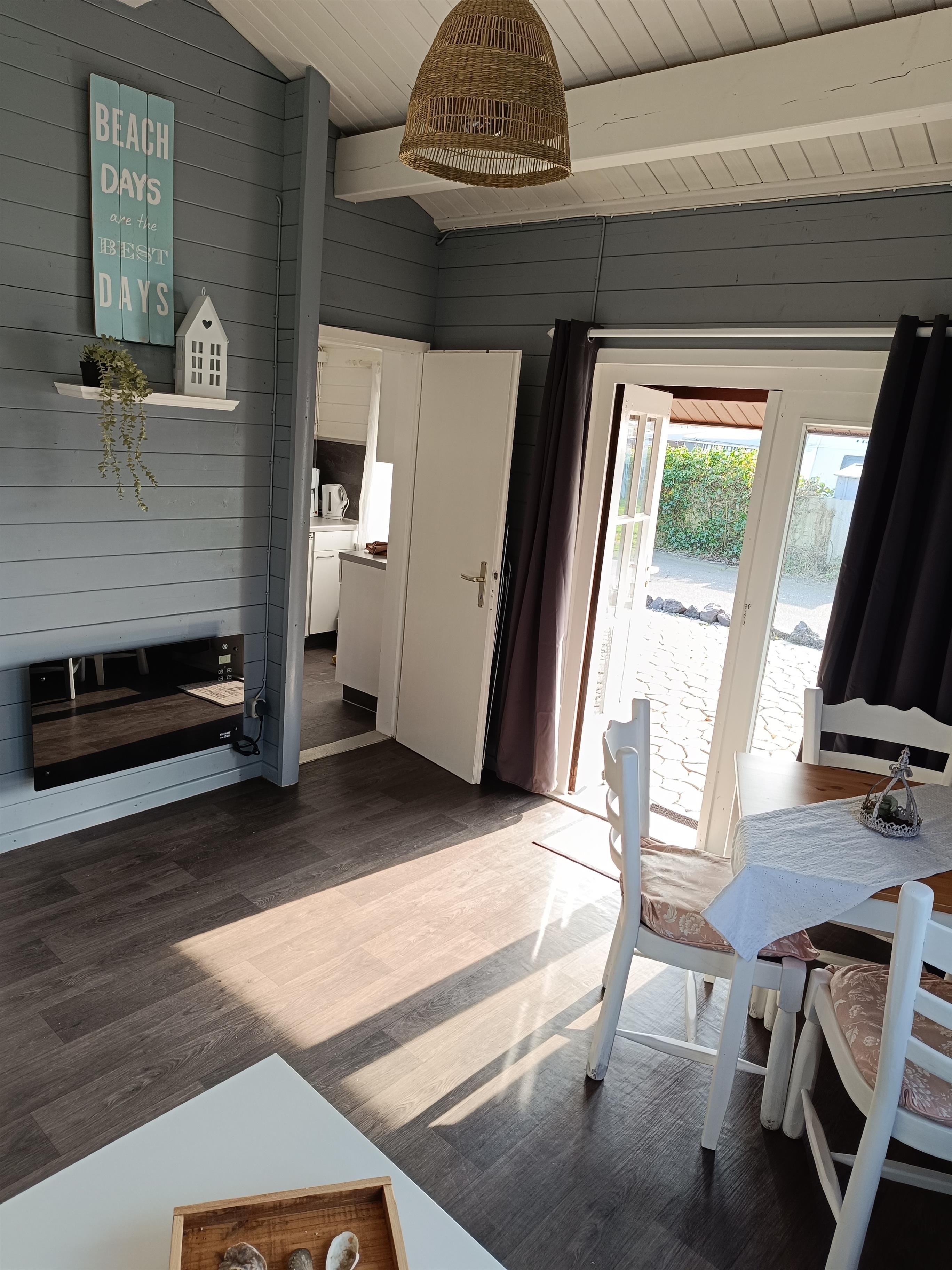 Das Haus ist ausgestattet mit einem gemütlichen Wohn-/Schlafzimmer, Etagenbett, Farb-TV, eine voll ausgestattete Küche, ein modernes Bad mit eigener Dusche, thermostatgeregelte Elektroheizung.