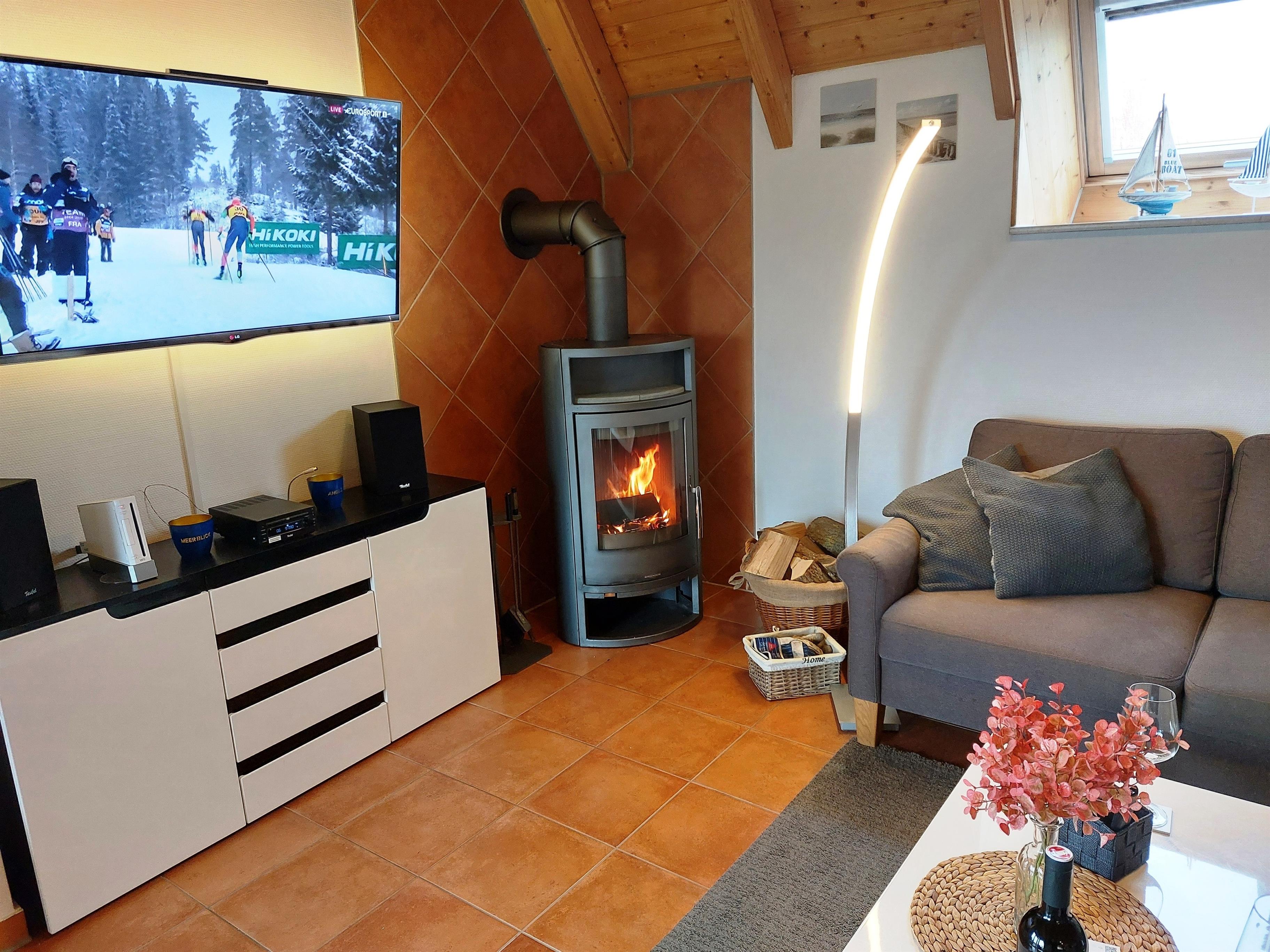 Im Wohnbereich befindet sich in Flachbild-Fernseher mit DVD-Player eine Spielekonsole sowie einer Musikanlage mit Bluetooth. Klassische Spiele stehen auch bereit.