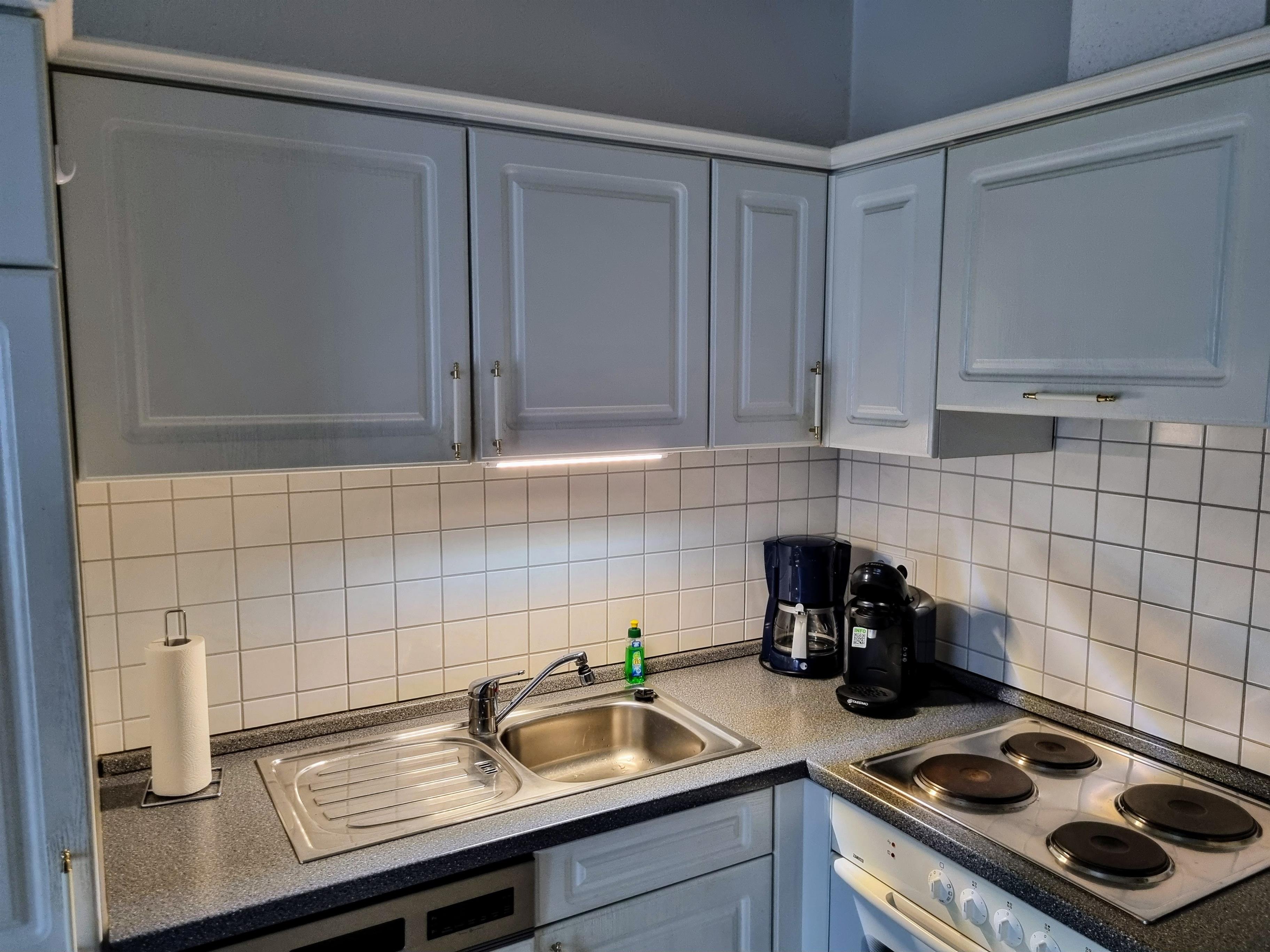 Die Küche ist mit allem ausgestattet, was für die Selbstversorgung benötigt wird (Kühlschrank, Herd, Backofen, Geschirrspüler, Mikrowelle, Kaffeemaschine, Toaster, Geschirr, Pfannen, Töpfe, Besteck, usw).